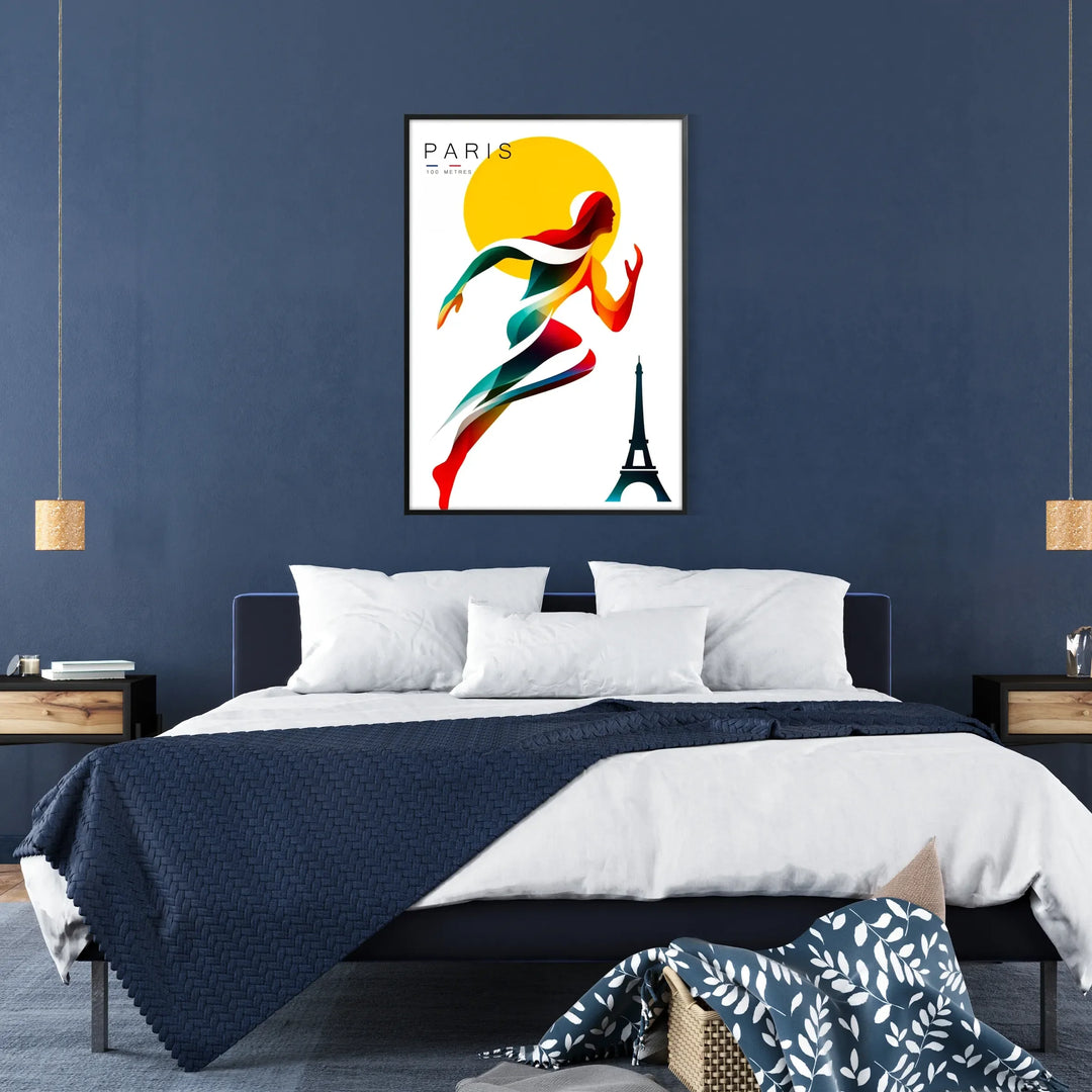 spirit Olympics life stunning Paris 2024 poster vibrant wall art perfect touch elegance space unique gift artwork available various print sizes A4 cm A0