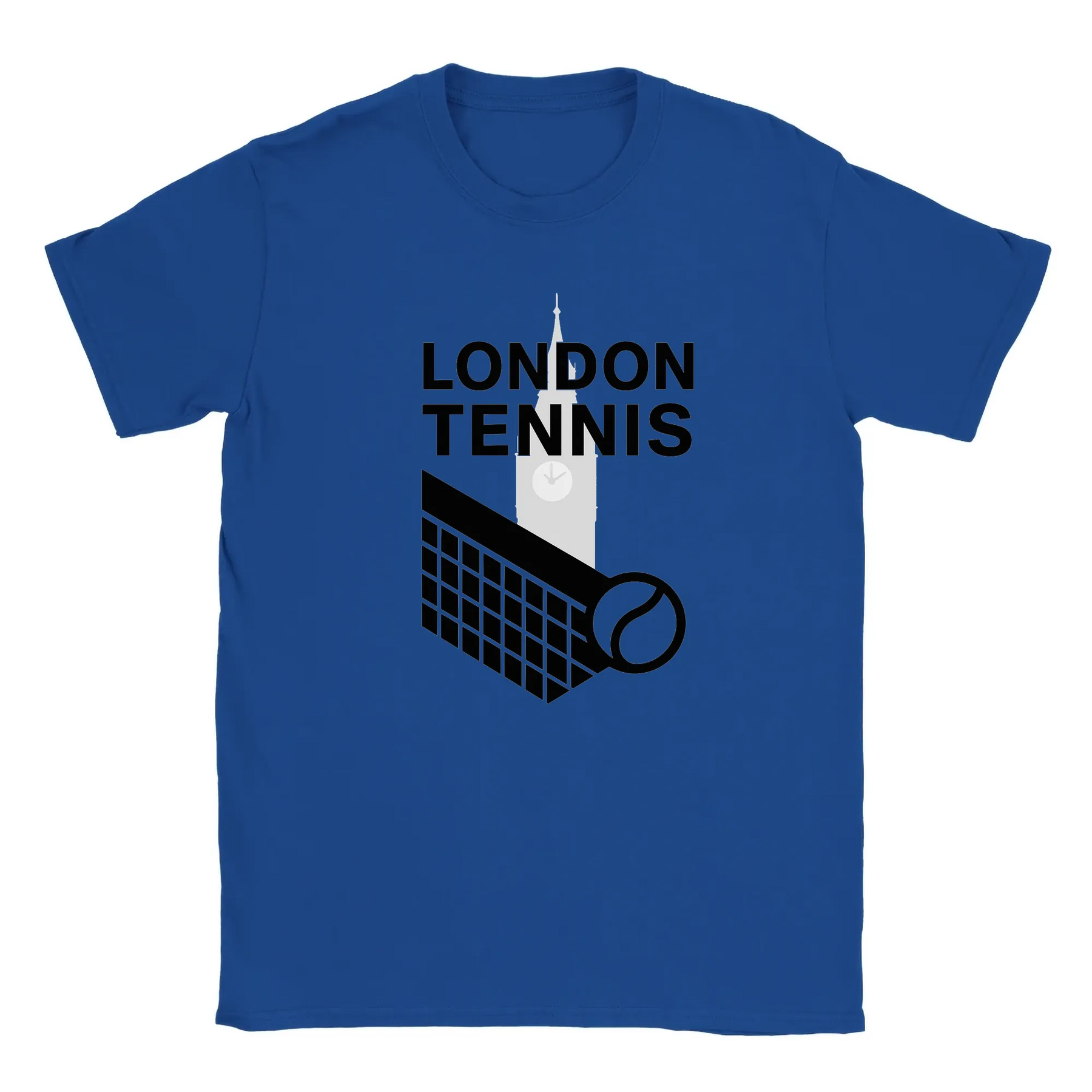 Shop our exclusive "London Tennis 9" t-shirt, celebrating iconic British style. This tee is perfect for tennis enthusiasts and fashion fans alike. Crafted with high-quality cotton, it's durable and stylish. Buy now and elevate your wardrobe. Feel the luxury of soft, lasting cotton.