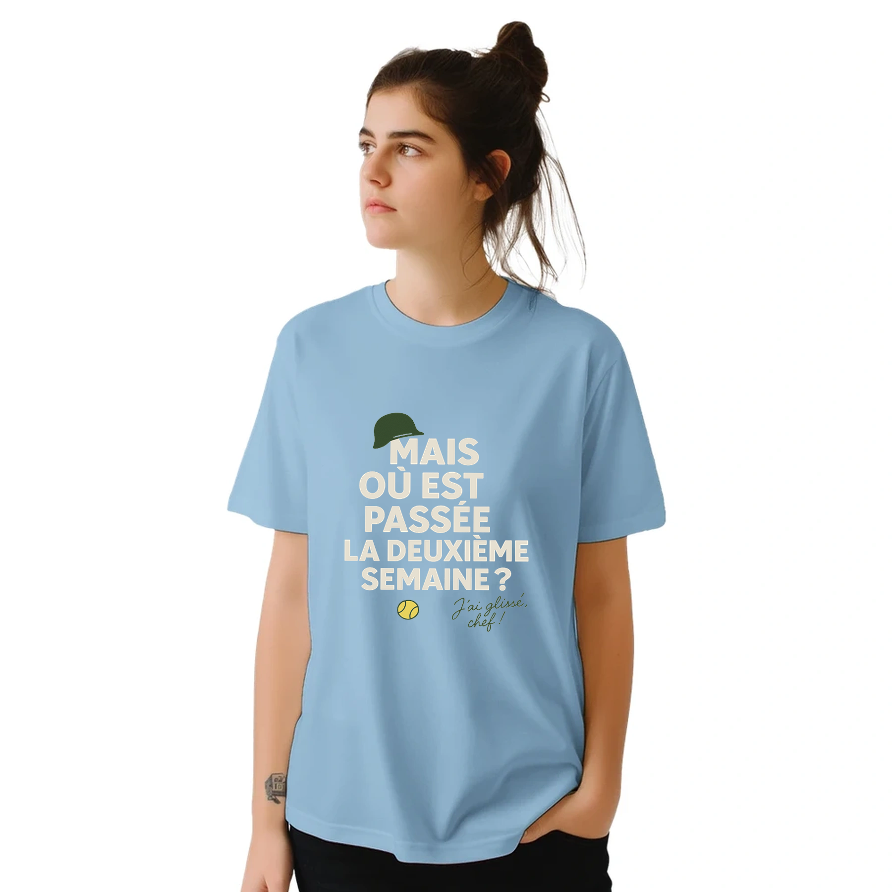 Image Light Blue de Où est passée la deuxième semaine Tennis Tshirt [color:light-blue] [view:front]