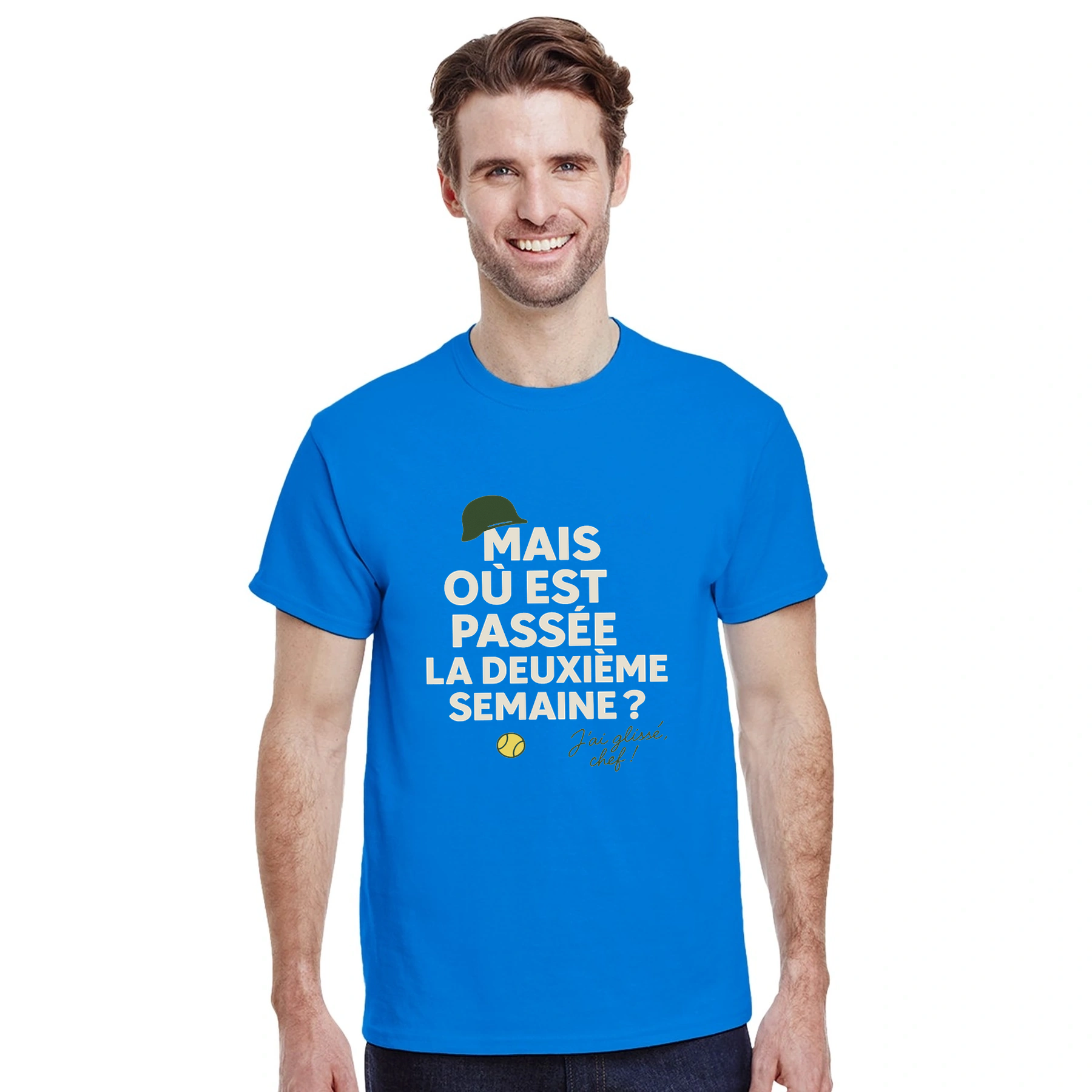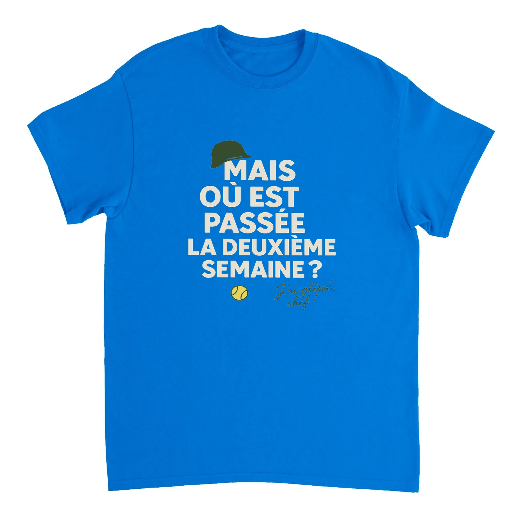 Image Blue de Où est passée la deuxième semaine Tennis Tshirt [color:blue] [view:front]
