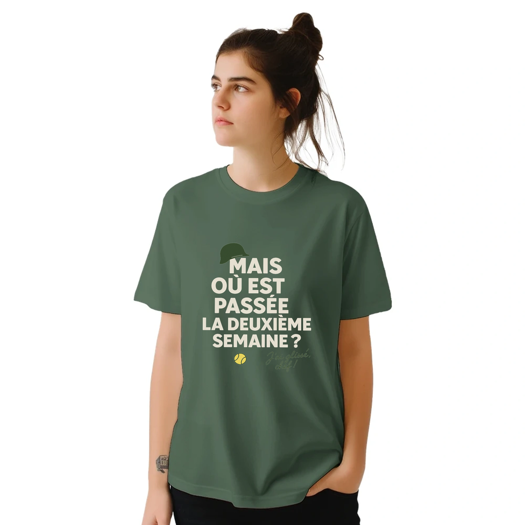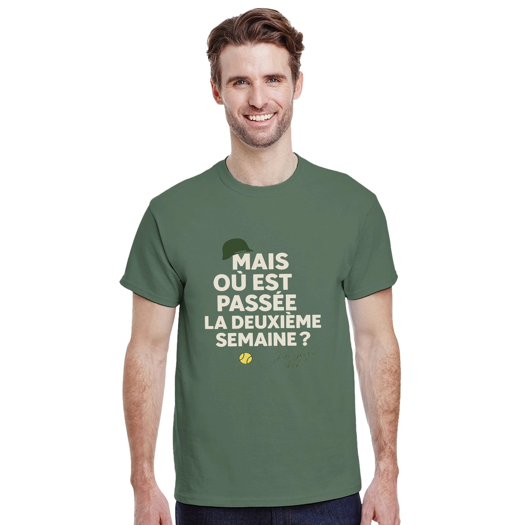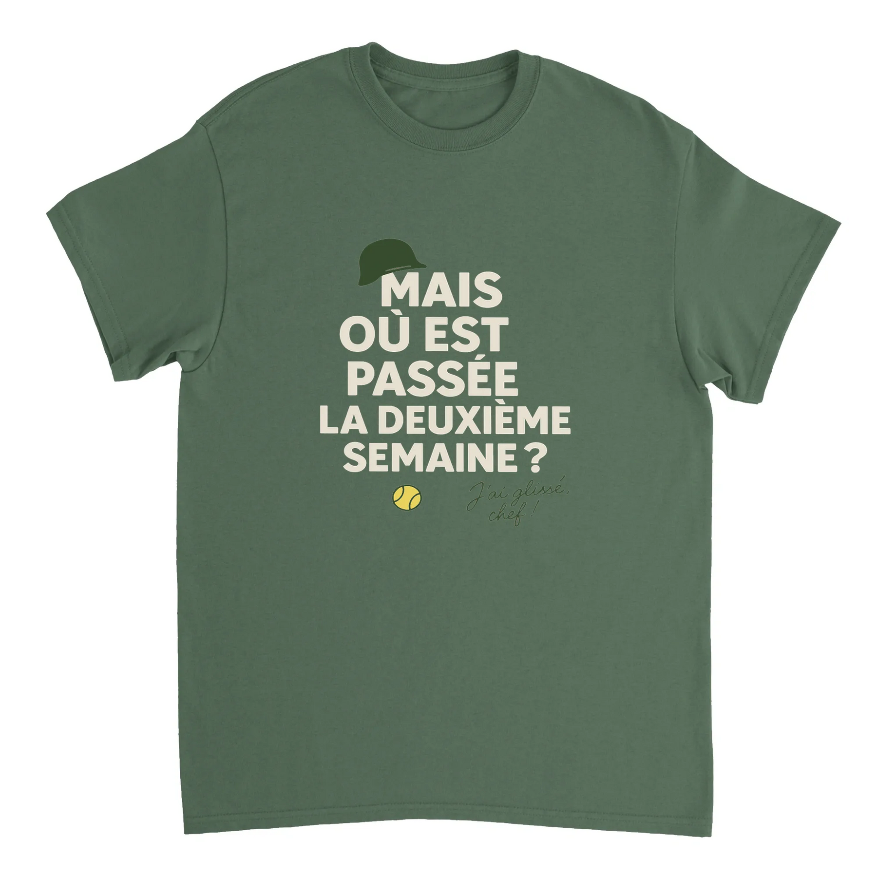 Image Military de Où est passée la deuxième semaine Tennis Tshirt [color:military] [view:front]