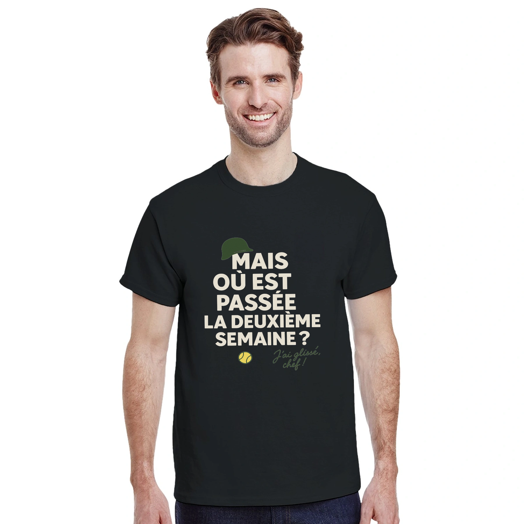 Image Black de Où est passée la deuxième semaine Tennis Tshirt [color:black] [view:front]