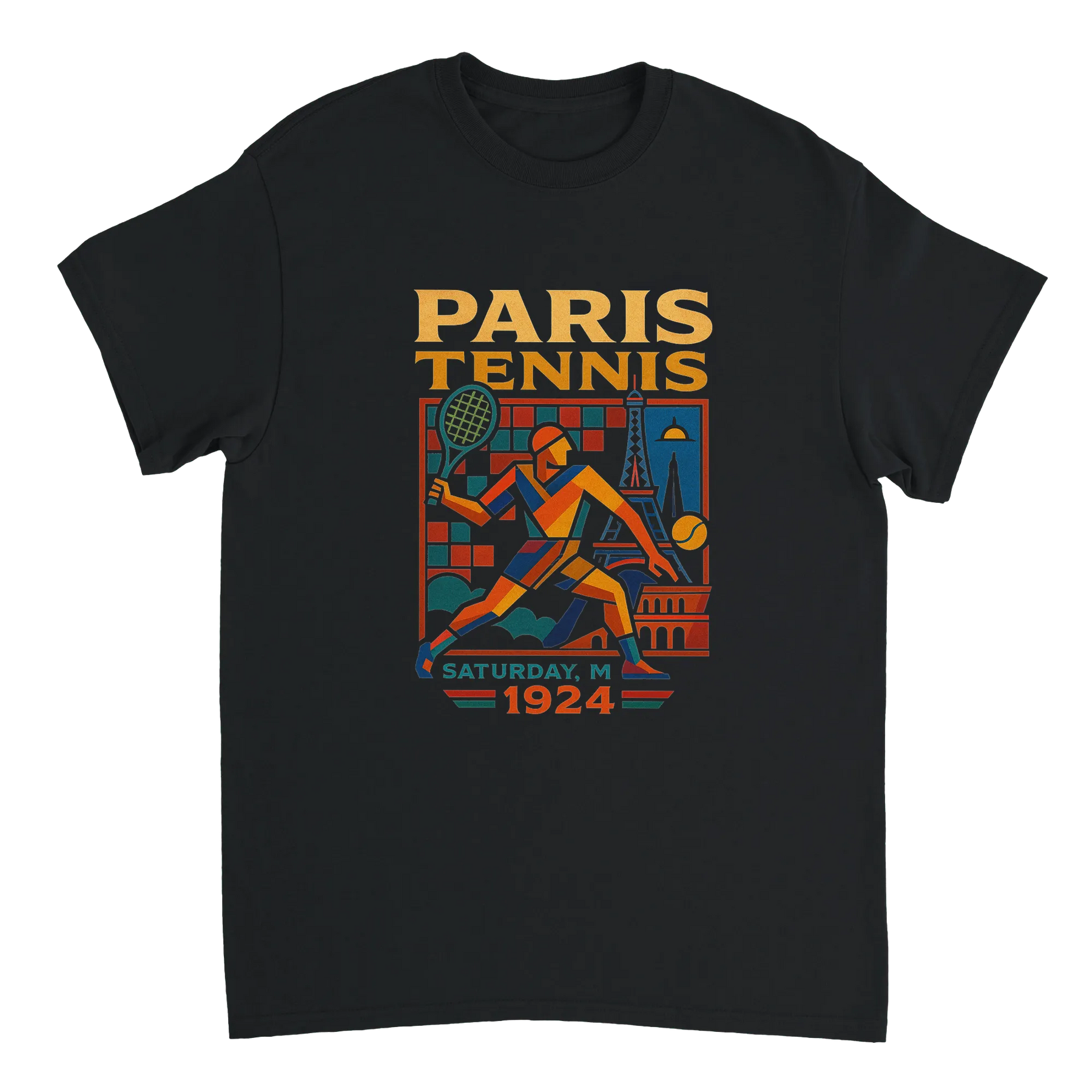 T-shirt time vintage 1924 Paris tennis t shirt unique tee whimsical cartoon design spirit classic sportsmanship lovers enthusiasts yours today effortless style comfort premium cotton durability