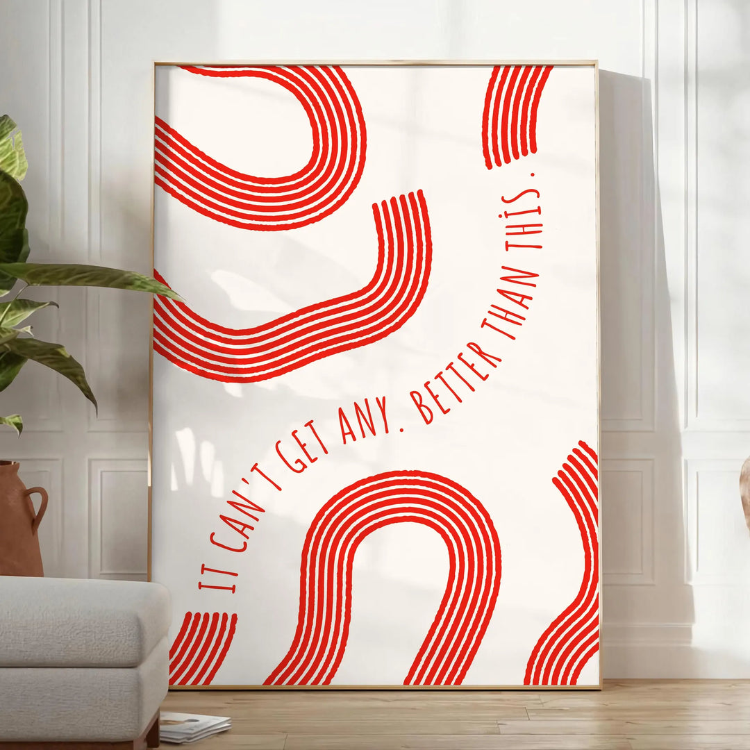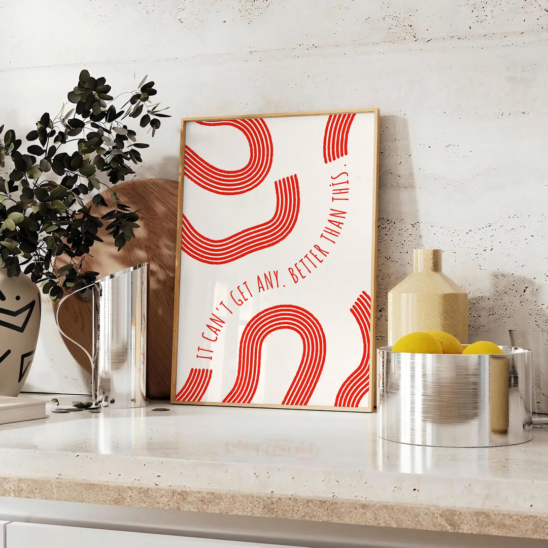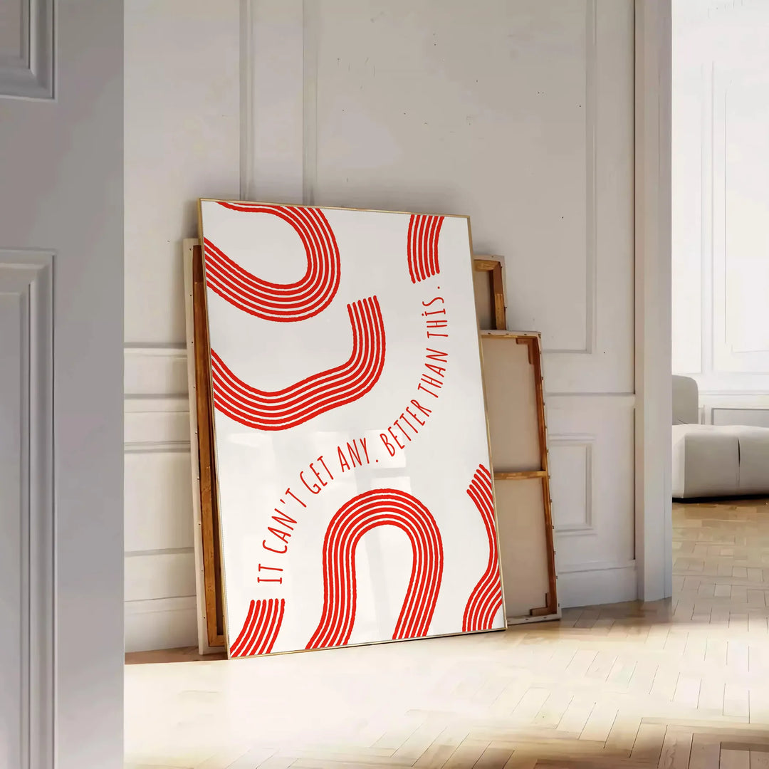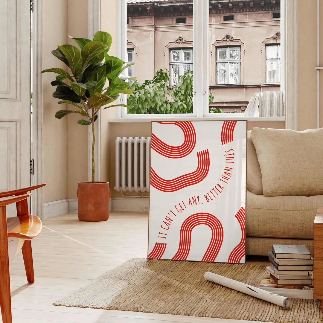 Werten Sie Ihren Raum mit unserem motivierenden rot-weißen Poster auf! Dieser beeindruckende Druck eignet sich perfekt als Wandbild und inspiriert und belebt jeden Raum. Ideal als Geschenk für geliebte Menschen, die Ehrgeiz und Positivität schätzen. Wählen Sie zwischen einer gerahmten oder ungerahmten Version dieses auffälligen Kunstwerks.