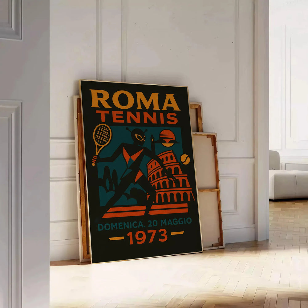 Entdecken Sie unser Rome Jungle Tennis Poster, eine lebendige Mischung aus Gelb- und Grautönen, erhältlich in den Größen 50 x 70 cm oder 30 x 40 cm. Perfekt für Sportbegeisterte und Kunstliebhaber. Kaufen Sie noch heute und verleihen Sie Ihrem Zuhause einen Hauch von Abenteuer. Erhältlich mit oder ohne Rahmen.