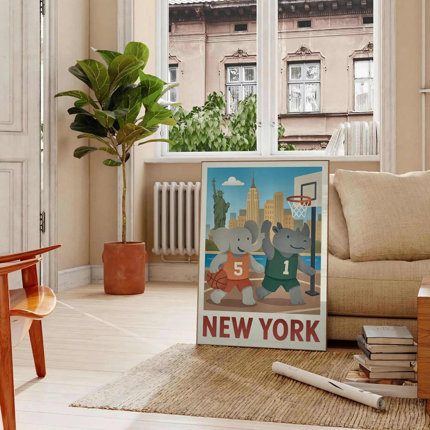 Πόστερ Παιδιού Ελέφαντα Ρινόκερος Μπάσκετ Νέα Υόρκη