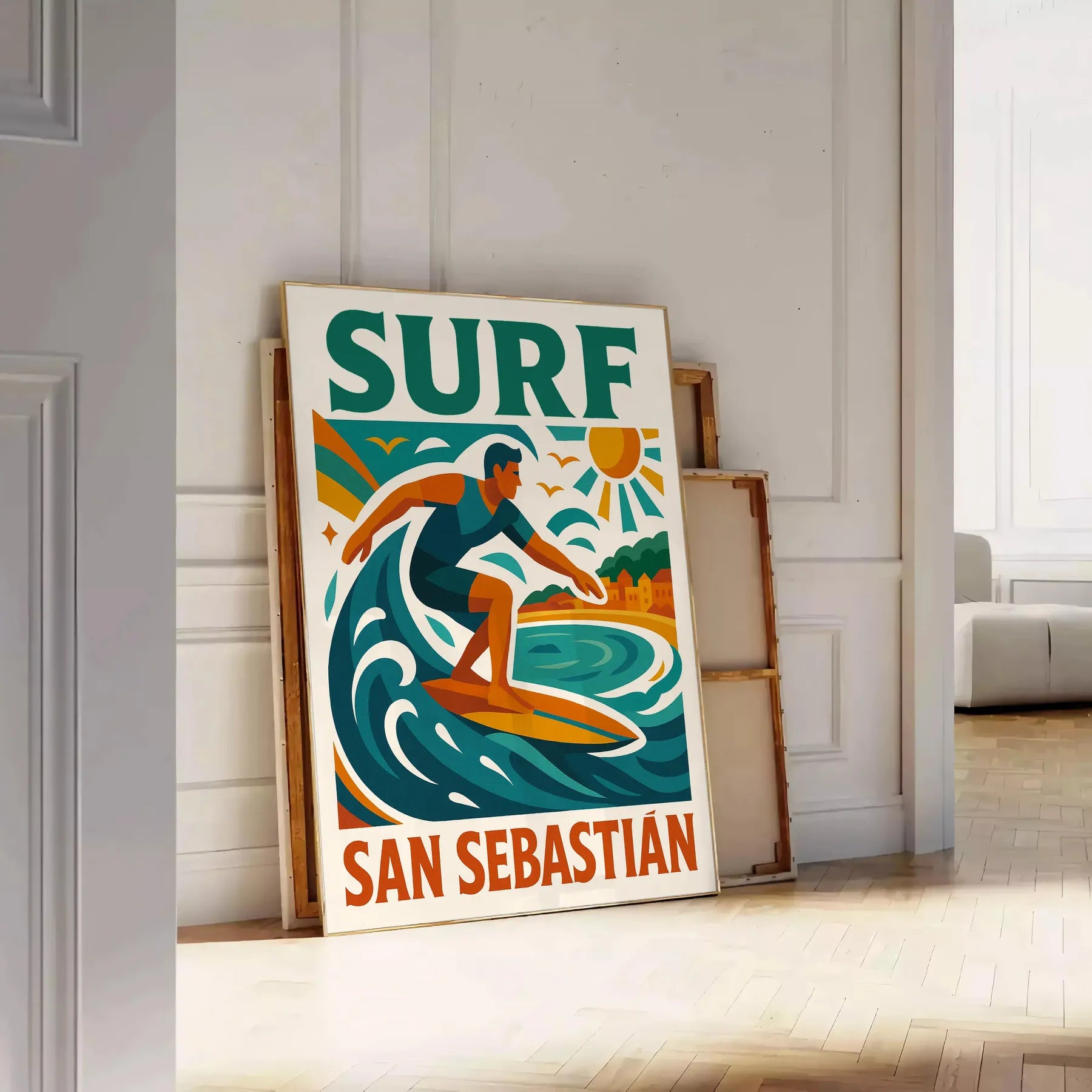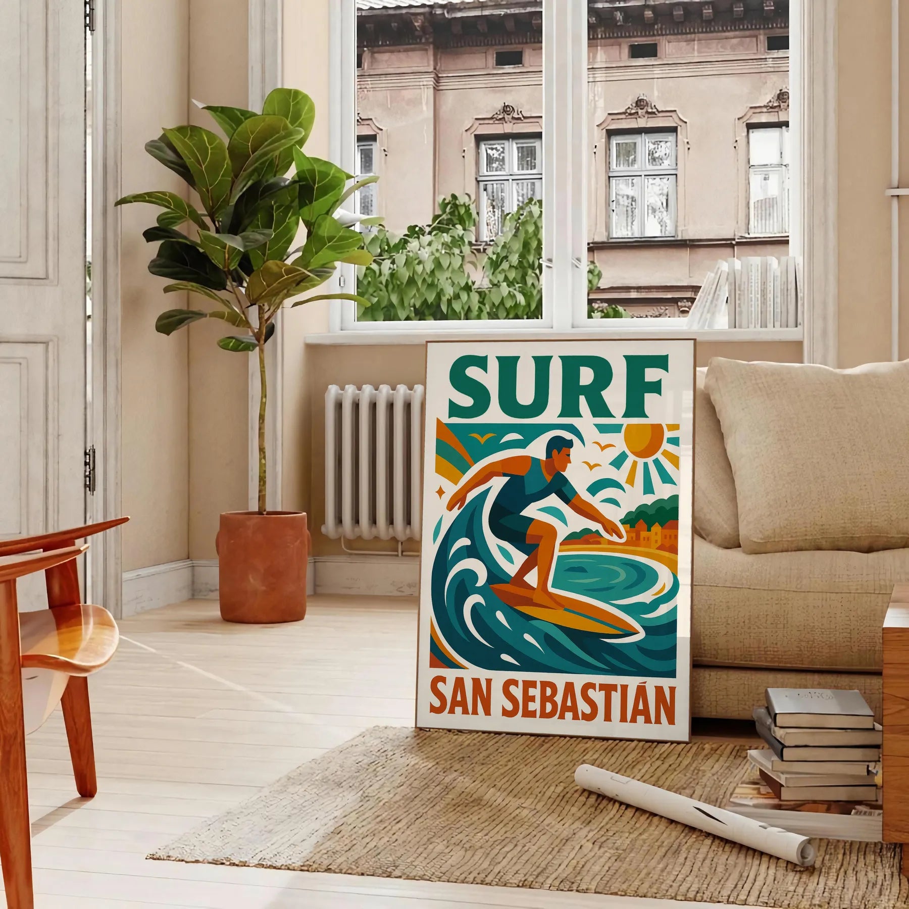 Ανακαλύψτε την ζωντανή ουσία του surfing στο Σαν Σεμπαστιάν με την εκπληκτική αφίσα μας. Ιδανική για να προσθέσετε μια πινελιά θαλάσσιας γοητείας σε κάθε χώρο.