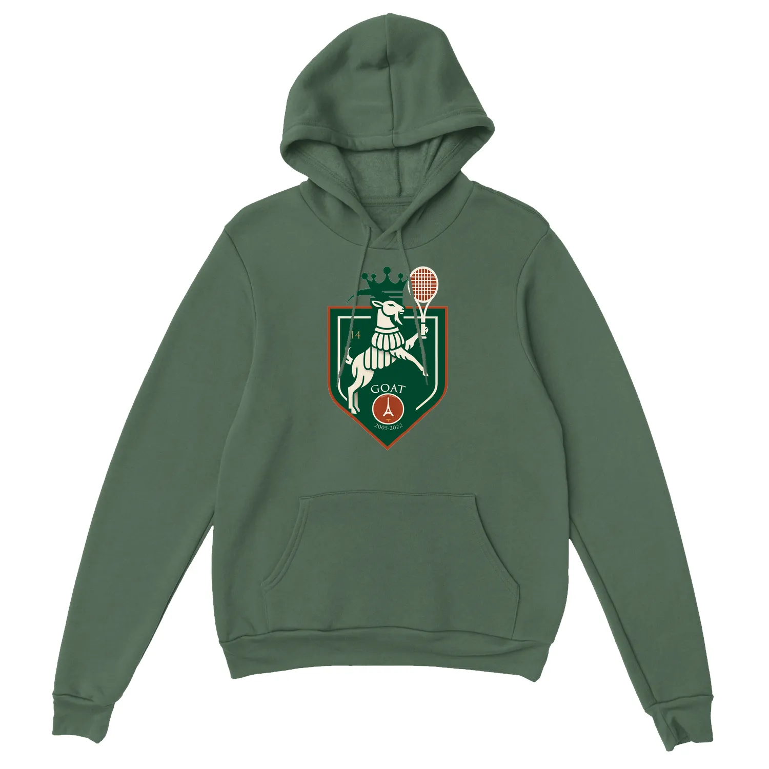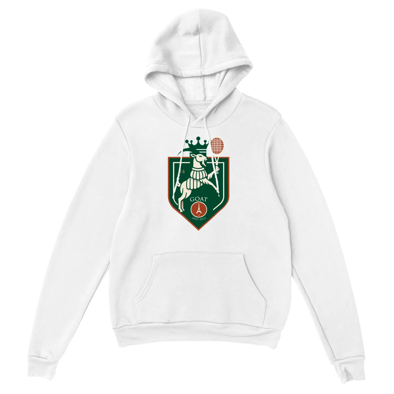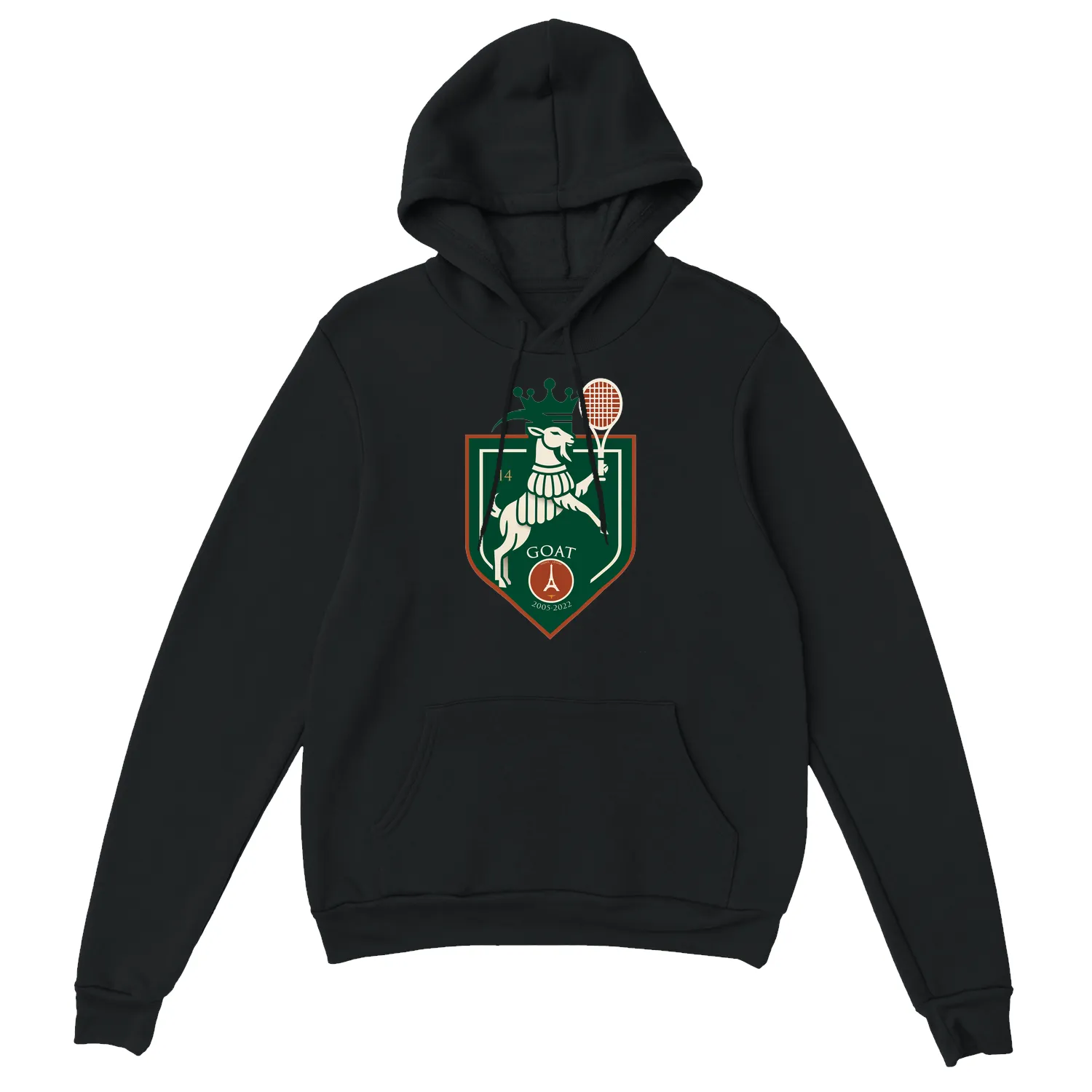 Buy the Hoodie Tennis GOAT Rafa Paris now and enjoy ultimate comfort! This thick, unisex pullover blends 50% cotton with 50% polyester, featuring a lined hood, matching drawstring, front pocket, ribbed cuffs, and a spandex waistband. Air-jet spun fabric ensures softness and reduces pilling.