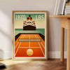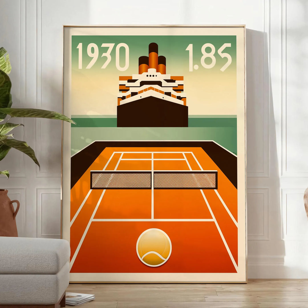 Póster de tenis Titanic que combina la sofisticación Art Deco con la historia del deporte, homenajeando a leyendas como Feder