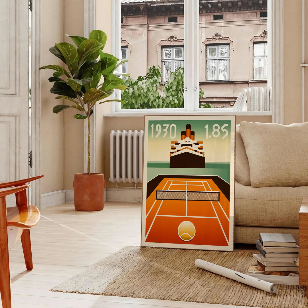 Transforma tu decoración con nuestro exclusivo arte mural de tenis, inspirado en la grandeza de torneos como Wimbledon, el US Open y Roland Garros. Este póster de tenis Titanic combina la sofisticación del Art Déco con la historia del deporte, celebrando a leyendas como Federer, Nadal y Djokovic. Perfecto para los amantes del Titanic. Disponible en varios tamaños: A4, 30×40 cm, 50×70 cm y 60×80 cm.