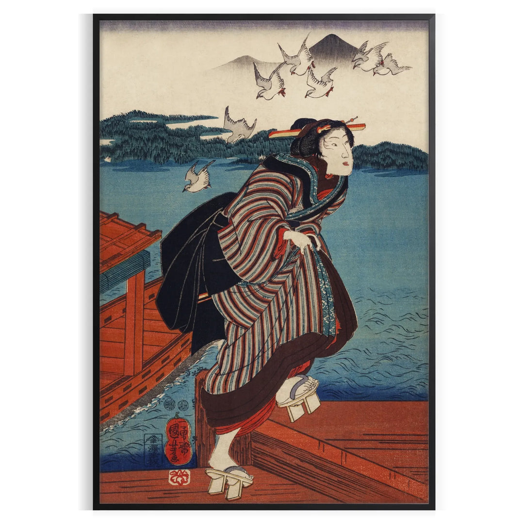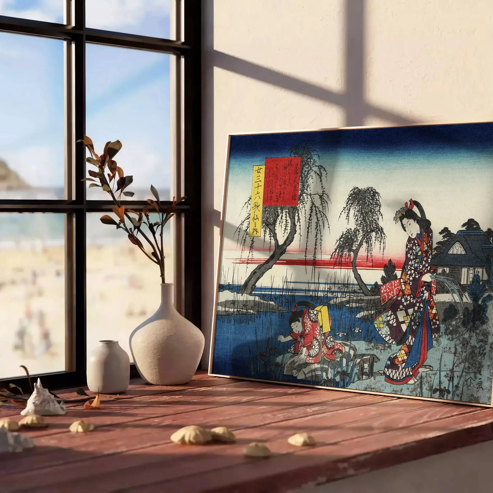 Impresión artística japonesa vintage que muestra la belleza serena y los detalles intrincados del arte japonés, disponible en
