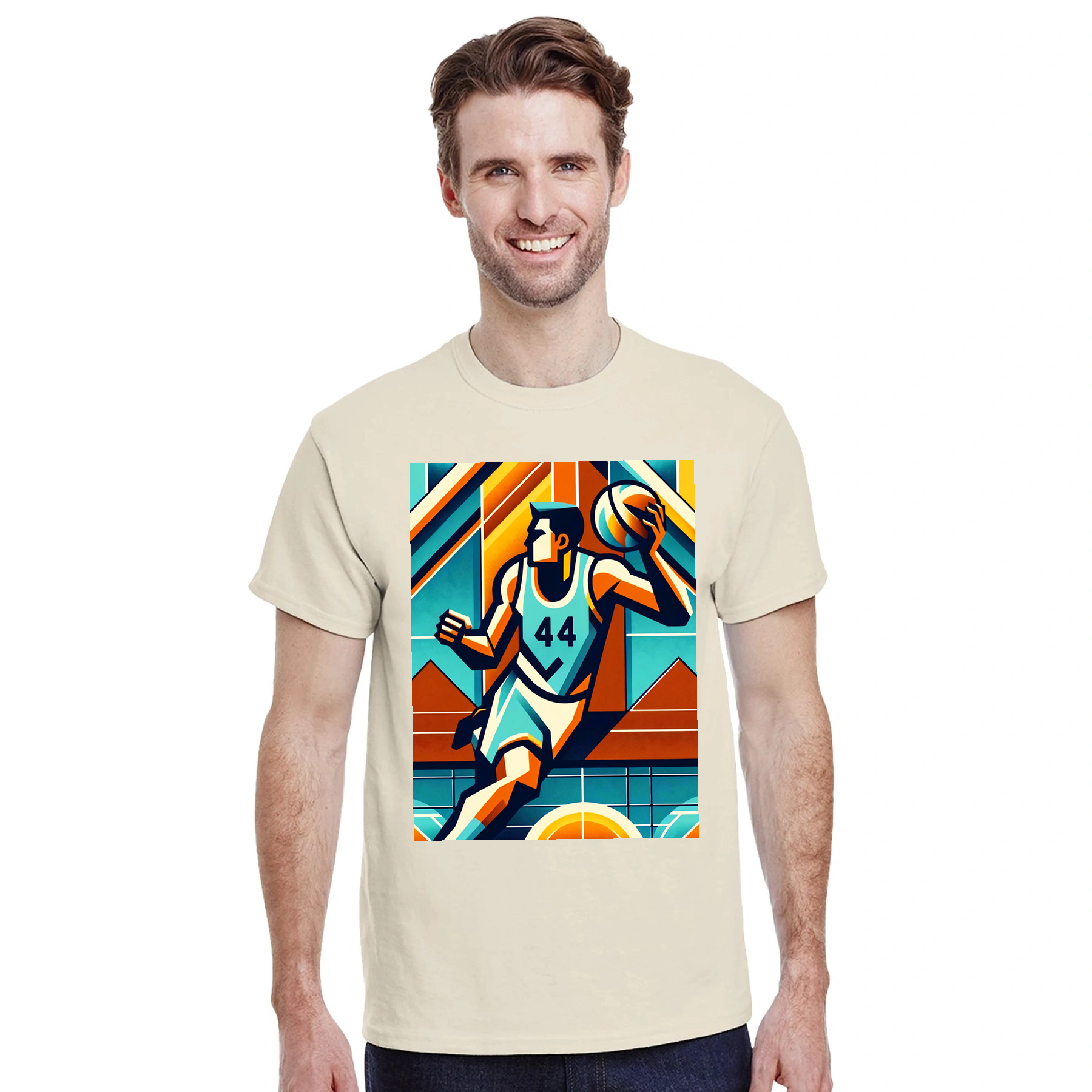 Élevez votre jeu avec notre t-shirt sur le thème du basketball ! Parfait pour les amoureux du basket, ce tee-shirt stylé affiche votre passion sur et en dehors du terrain.
