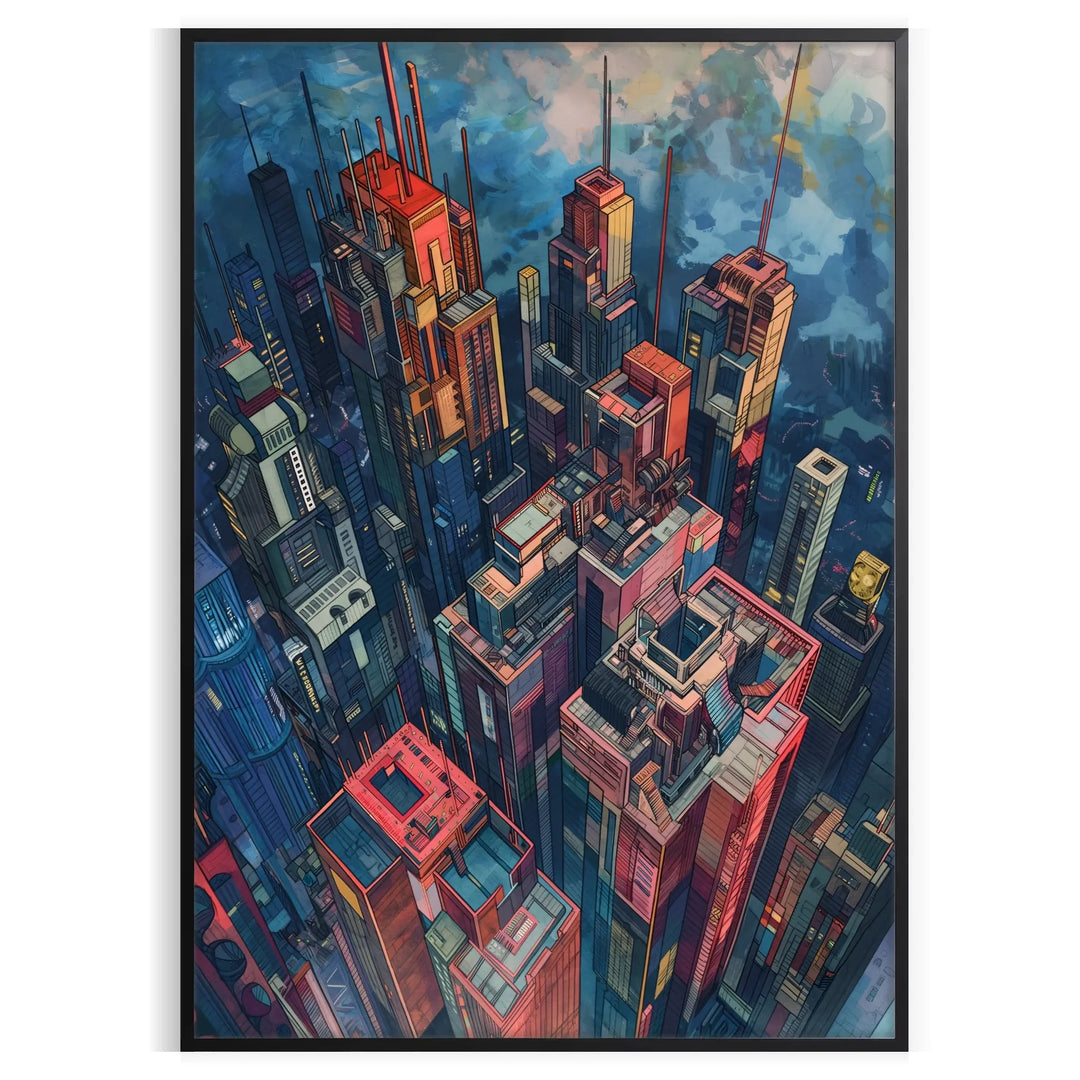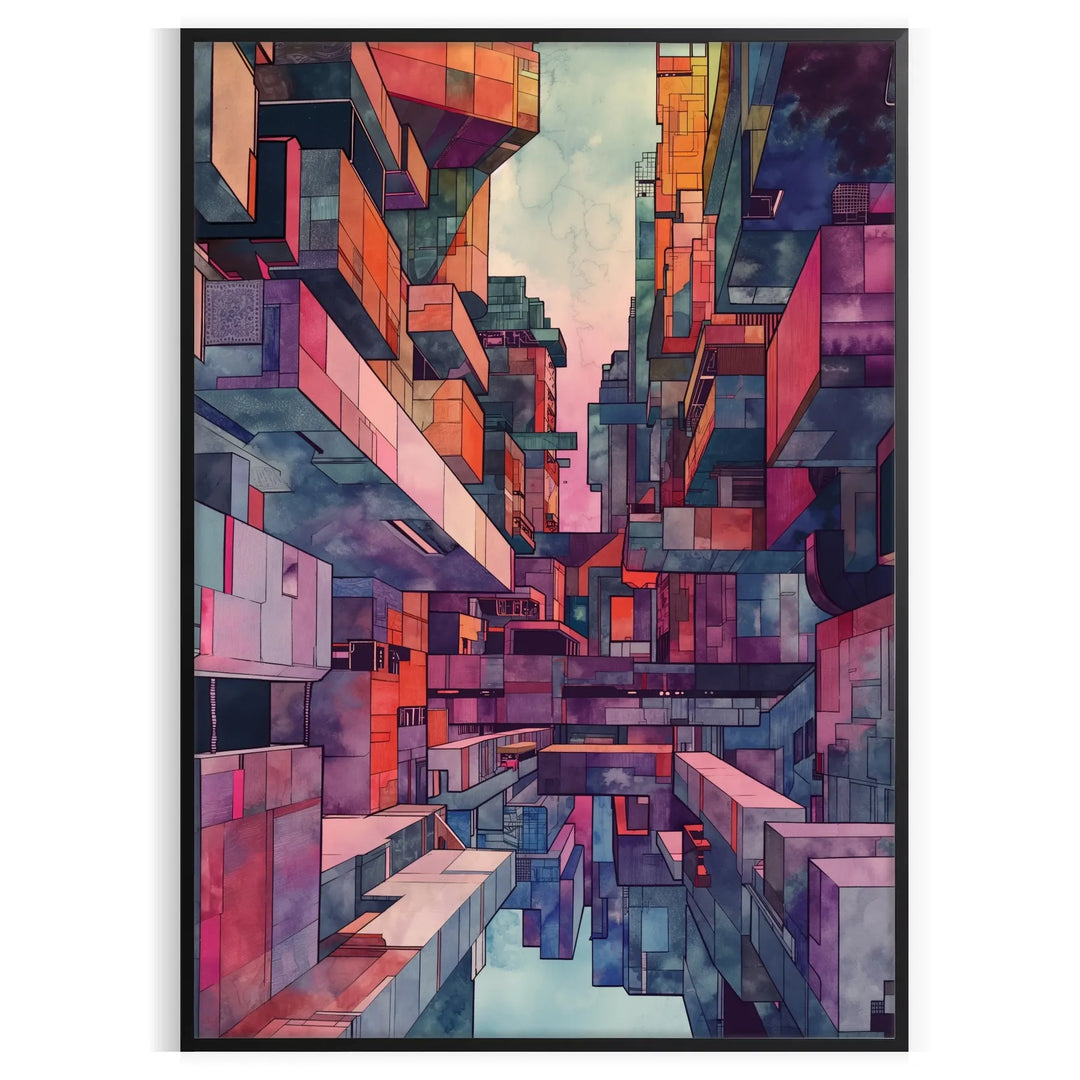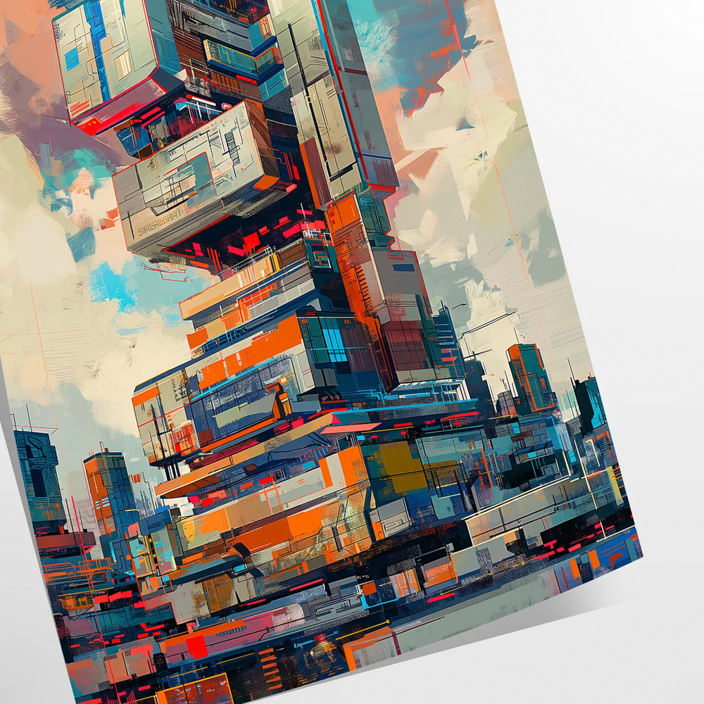 Découvrez notre affiche futuriste en aquarelle, où les tons vibrants d'orange et de bleu s'harmonisent pour sublimer votre espace. Parfaite comme idée cadeau unique pour les passionnés de design. Disponible en version encadrée ou sans cadre.