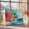 affiche futuriste aquarelle tons vibrants orange bleu espace idée cadeau unique passionnés design version cadre