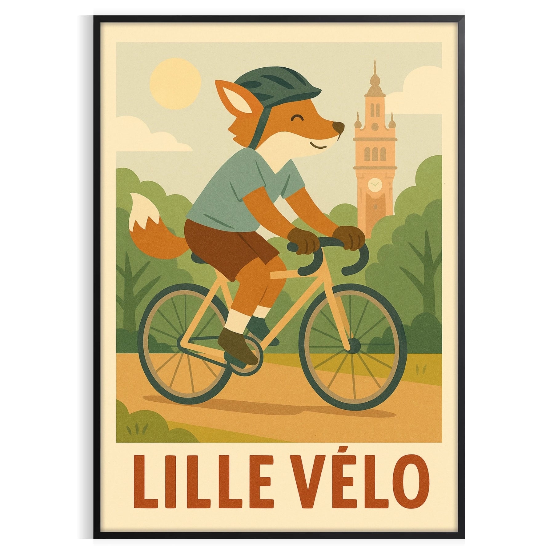 Discover the vibrant "Kid Fox Lille Cycling" poster, perfect for young adventurers! Featuring lively green and orange colors, this eye-catching 50x70 or 30x40 poster adds charm to any space. Buy it now to inspire outdoor fun and creativity in your child's room. Available in framed or unframed options.