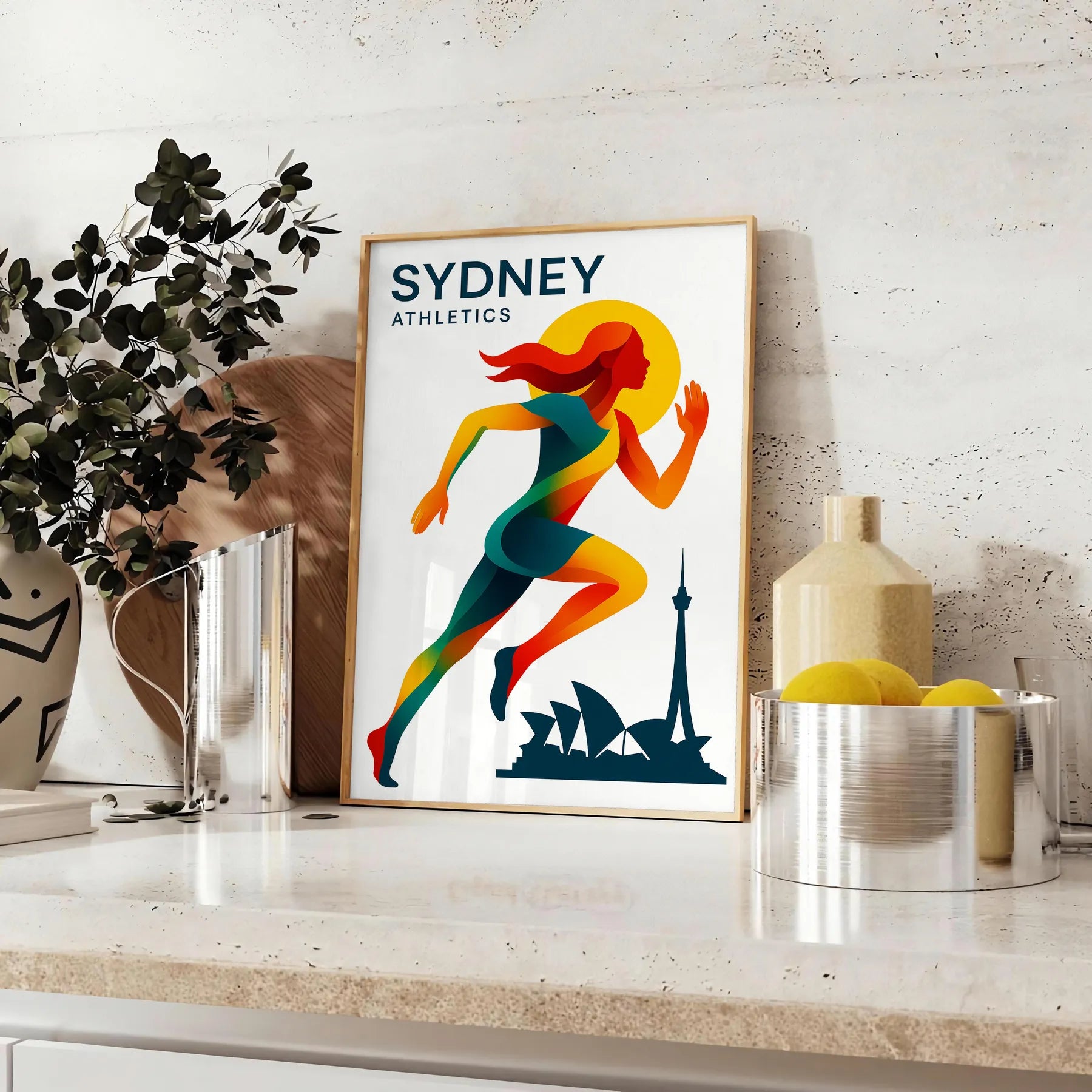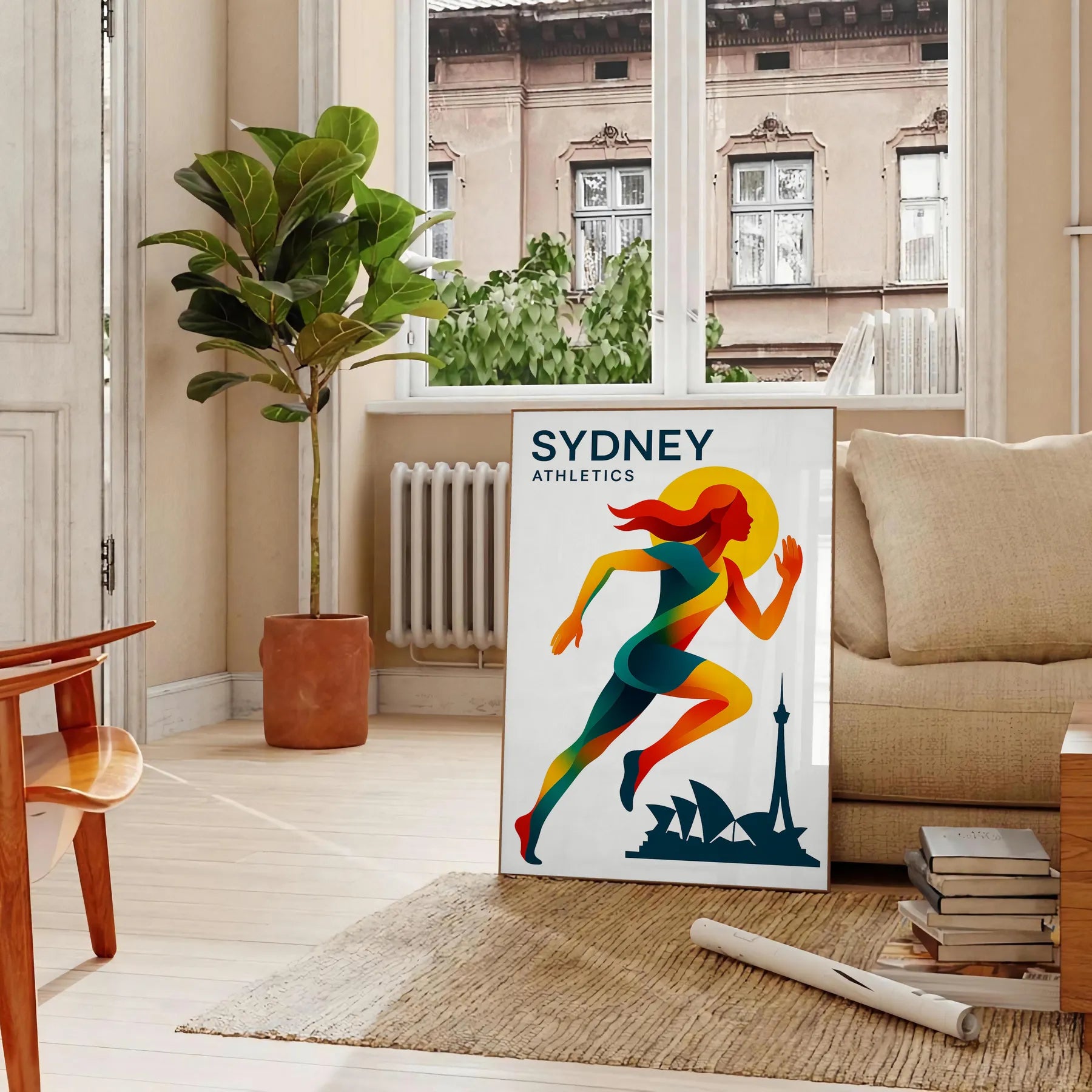 affiche dynamique athlétisme Sydney un incontournable passionnés sport couleurs vertes rouges une touche énergique décoration disponibles cm unique cadre