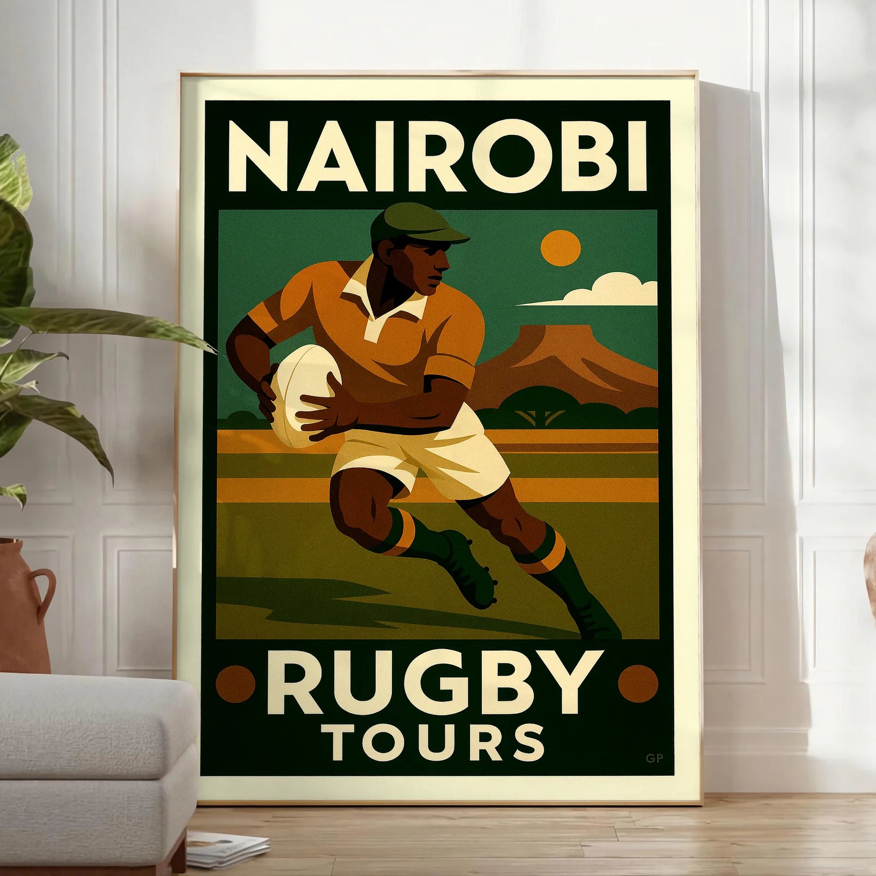 magnifique vintage matchs emblématiques Nairobi poster art déco captivant une touche unique décoration affiche rugby dimensions idéales 50x70 cm disponibles A4 A0