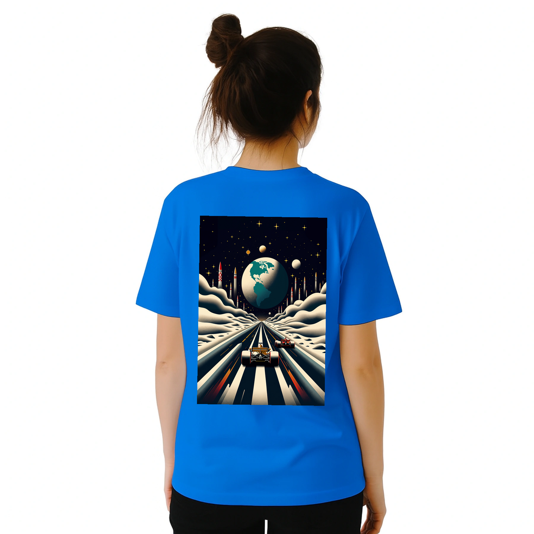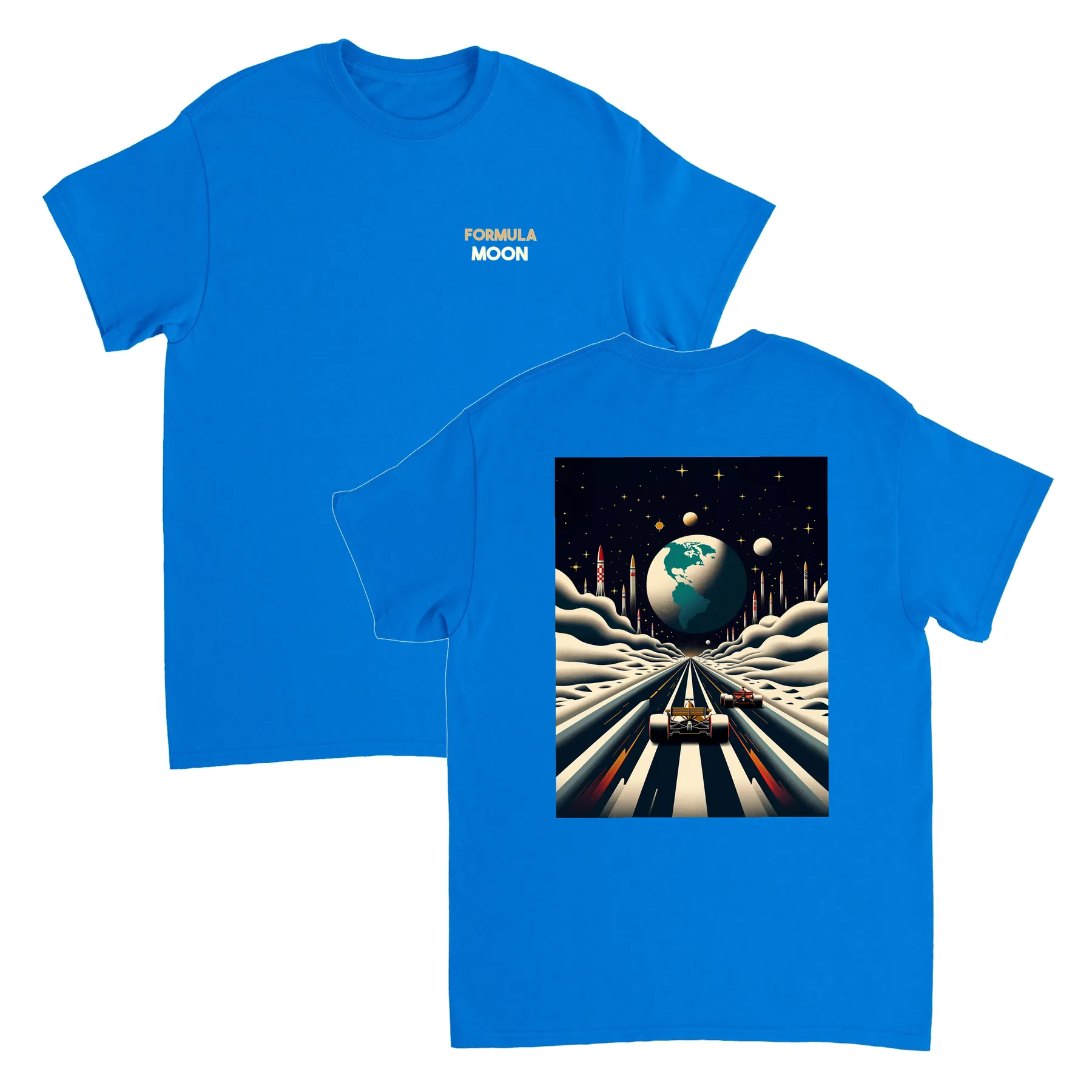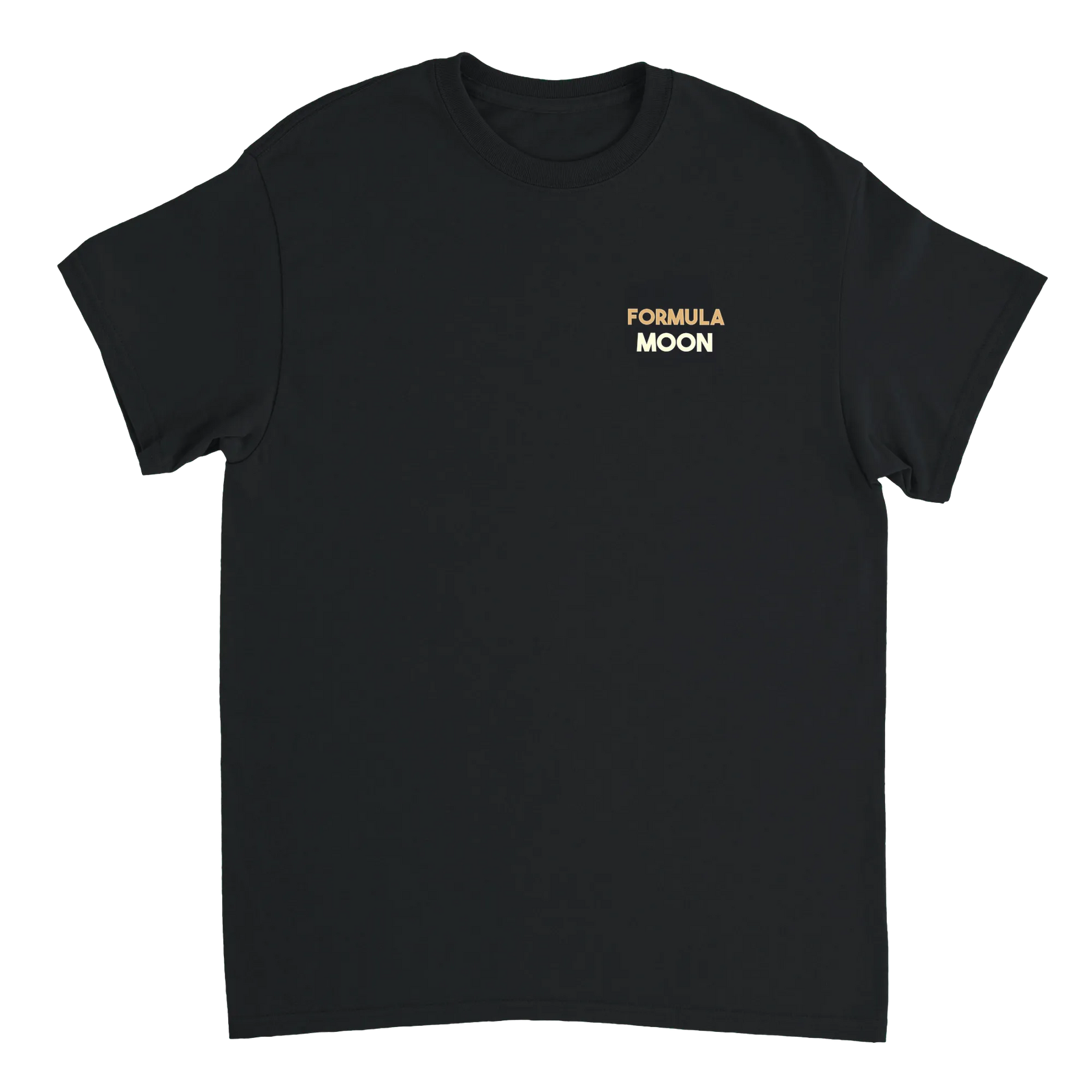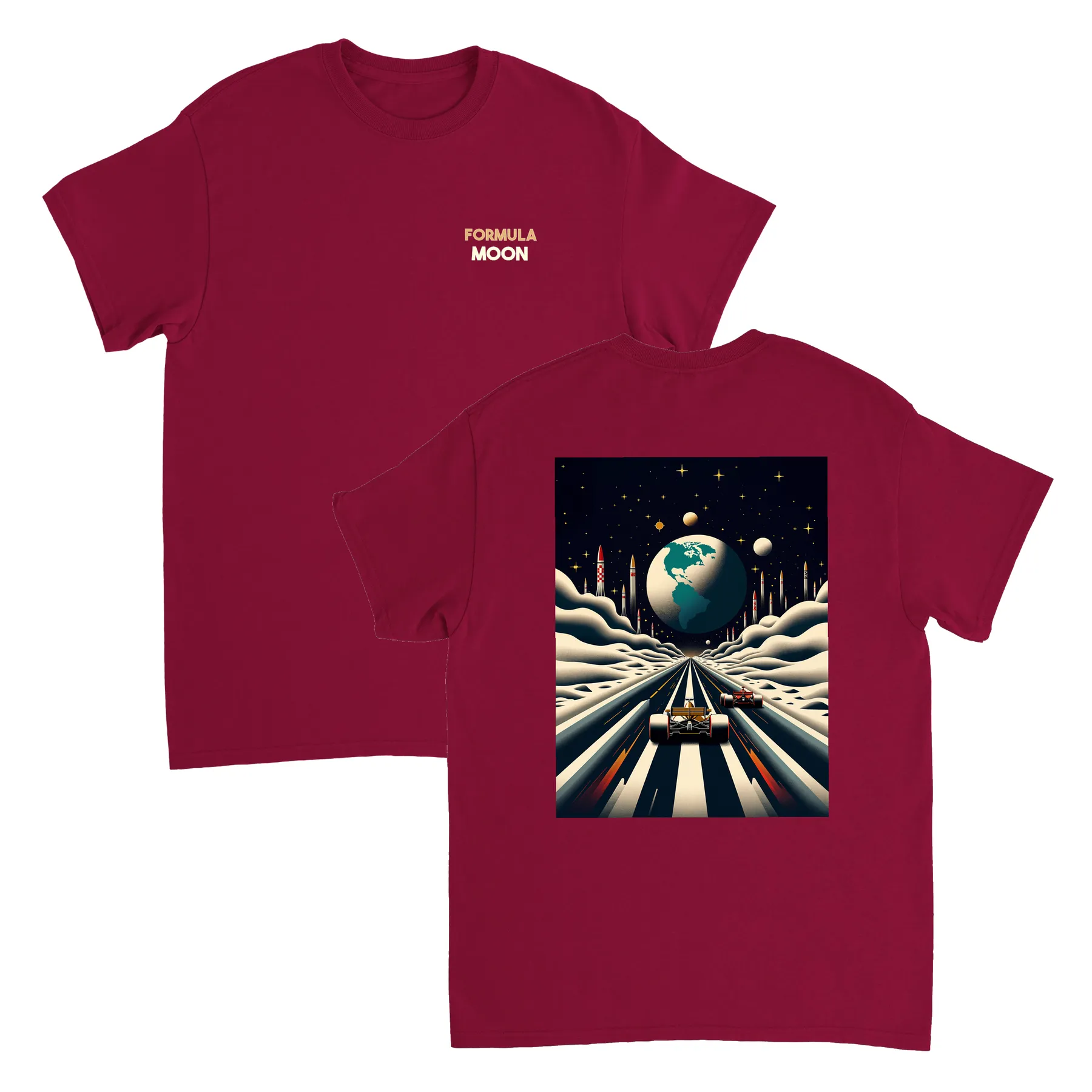 T-shirt Formula Moon con design lunare unico, ideale per appassionati di astronomia. Morbido cotone per un comfort duraturo