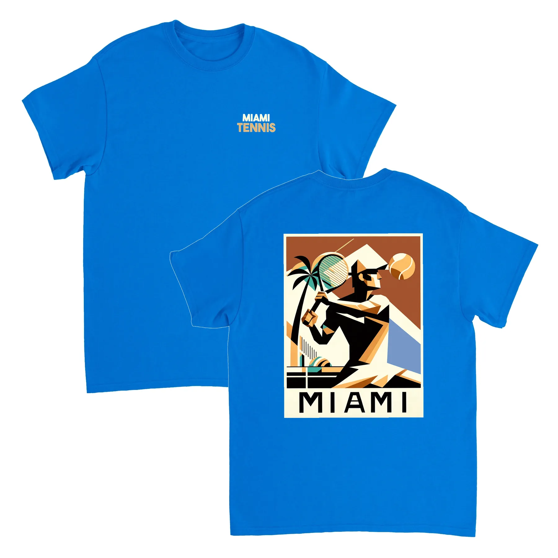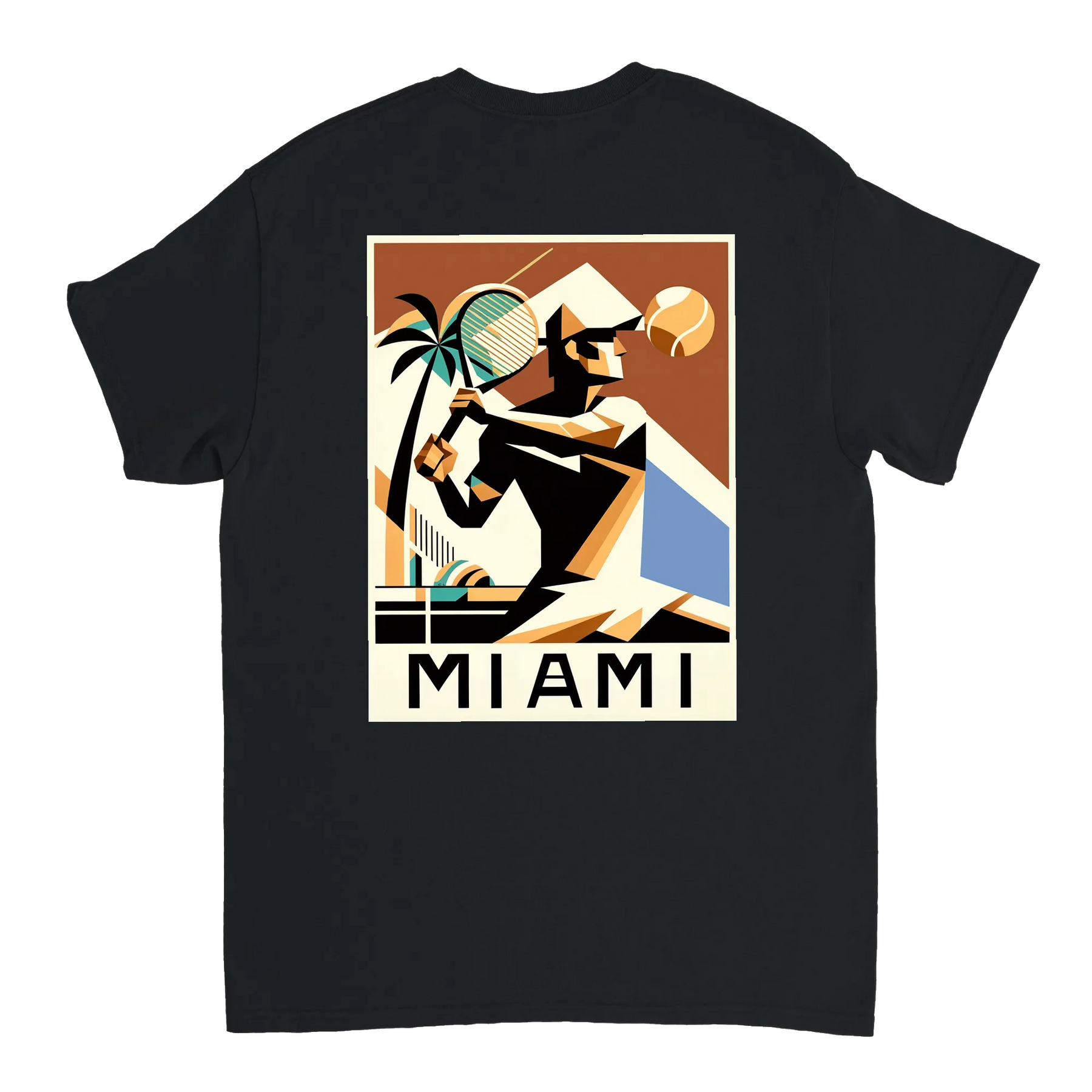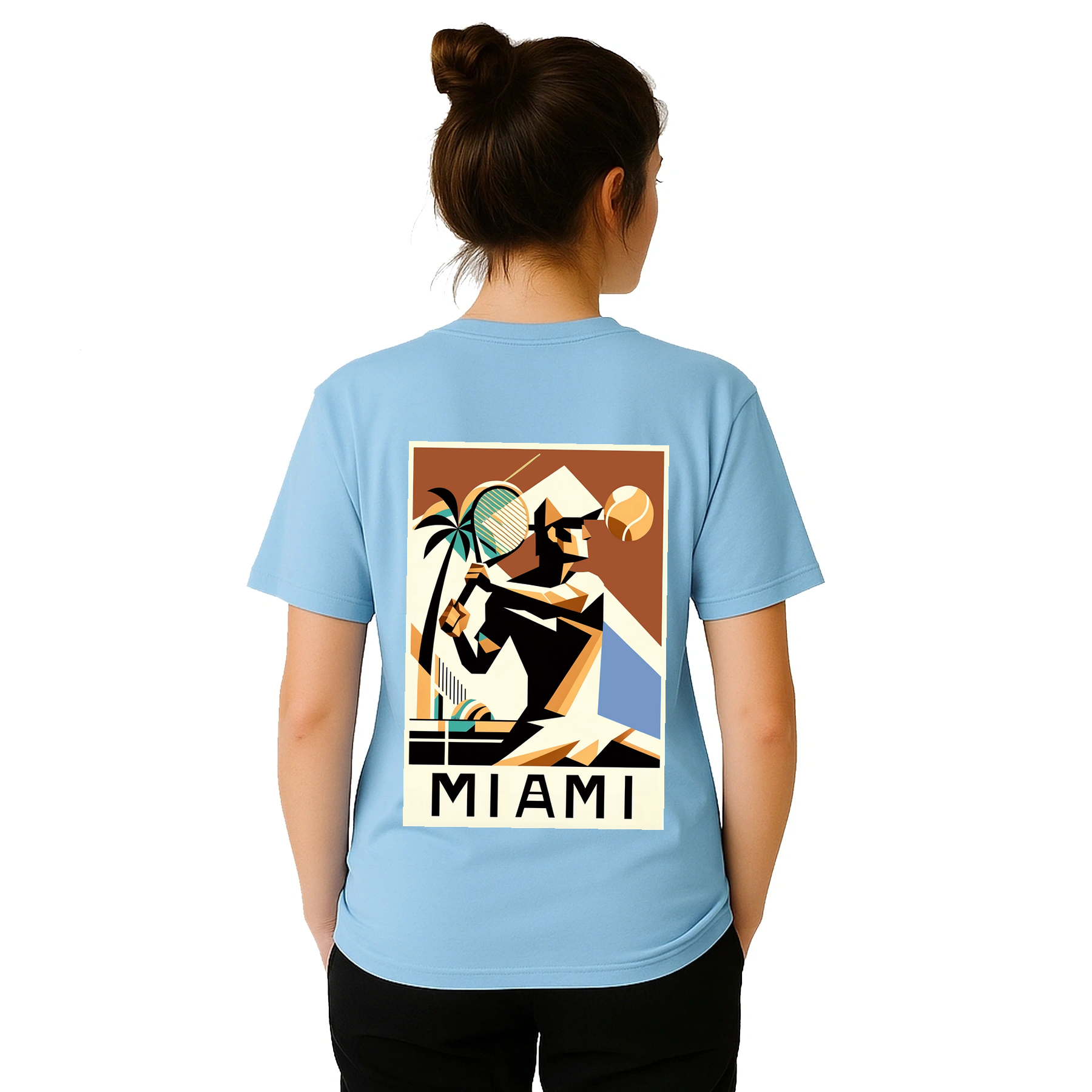 T-shirt Miami Tennis: design vibrante che cattura lo spirito energetico del tennis a Miami, in cotone morbido e traspirante p