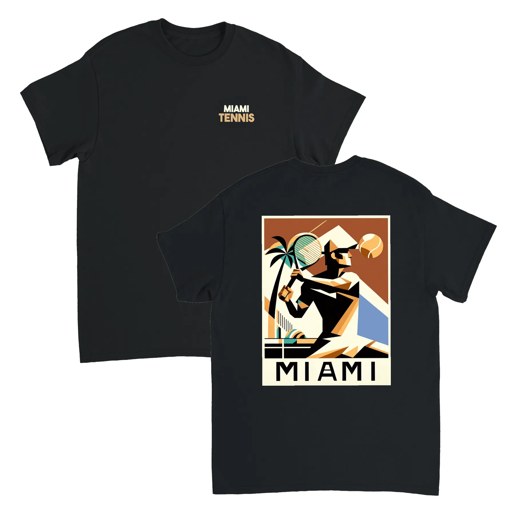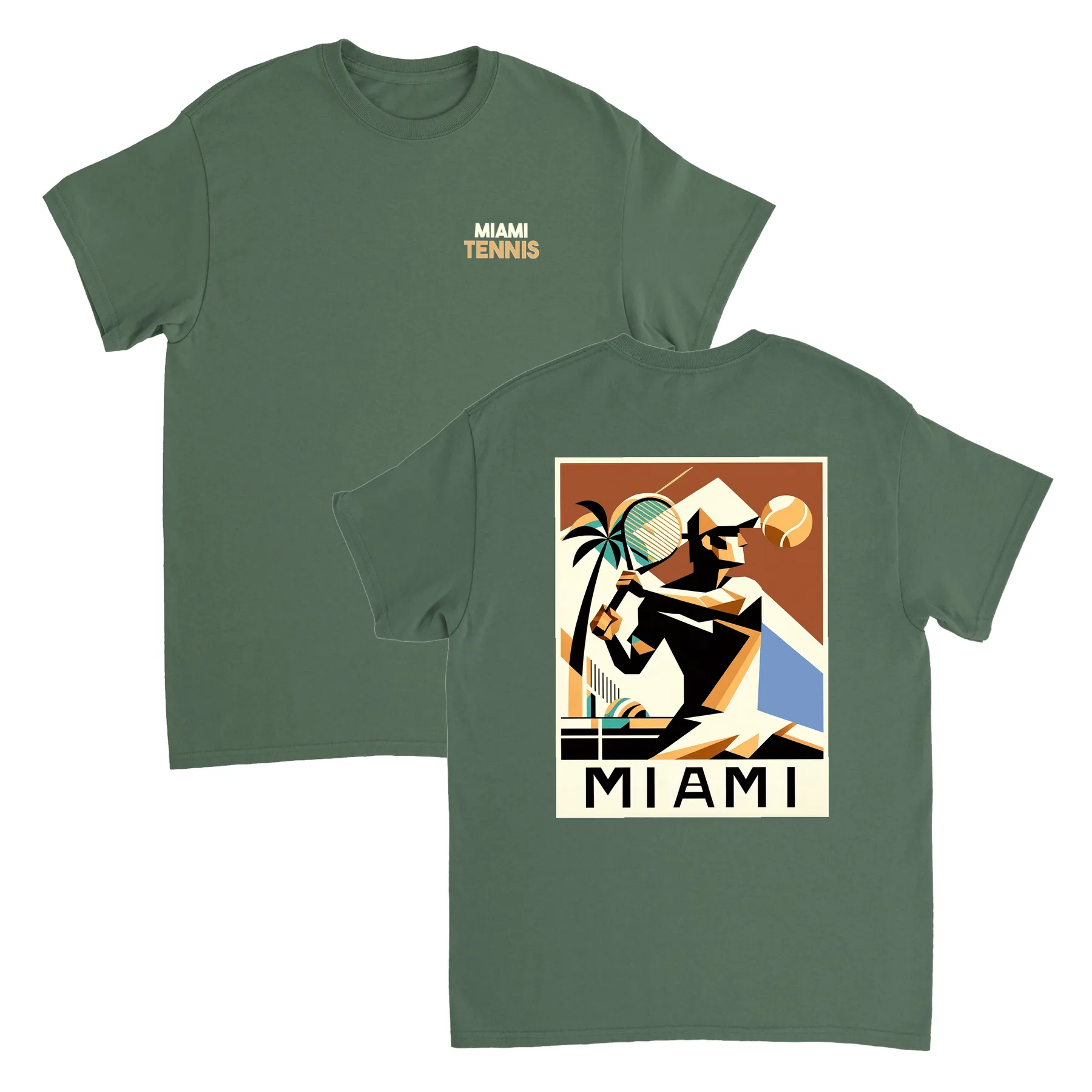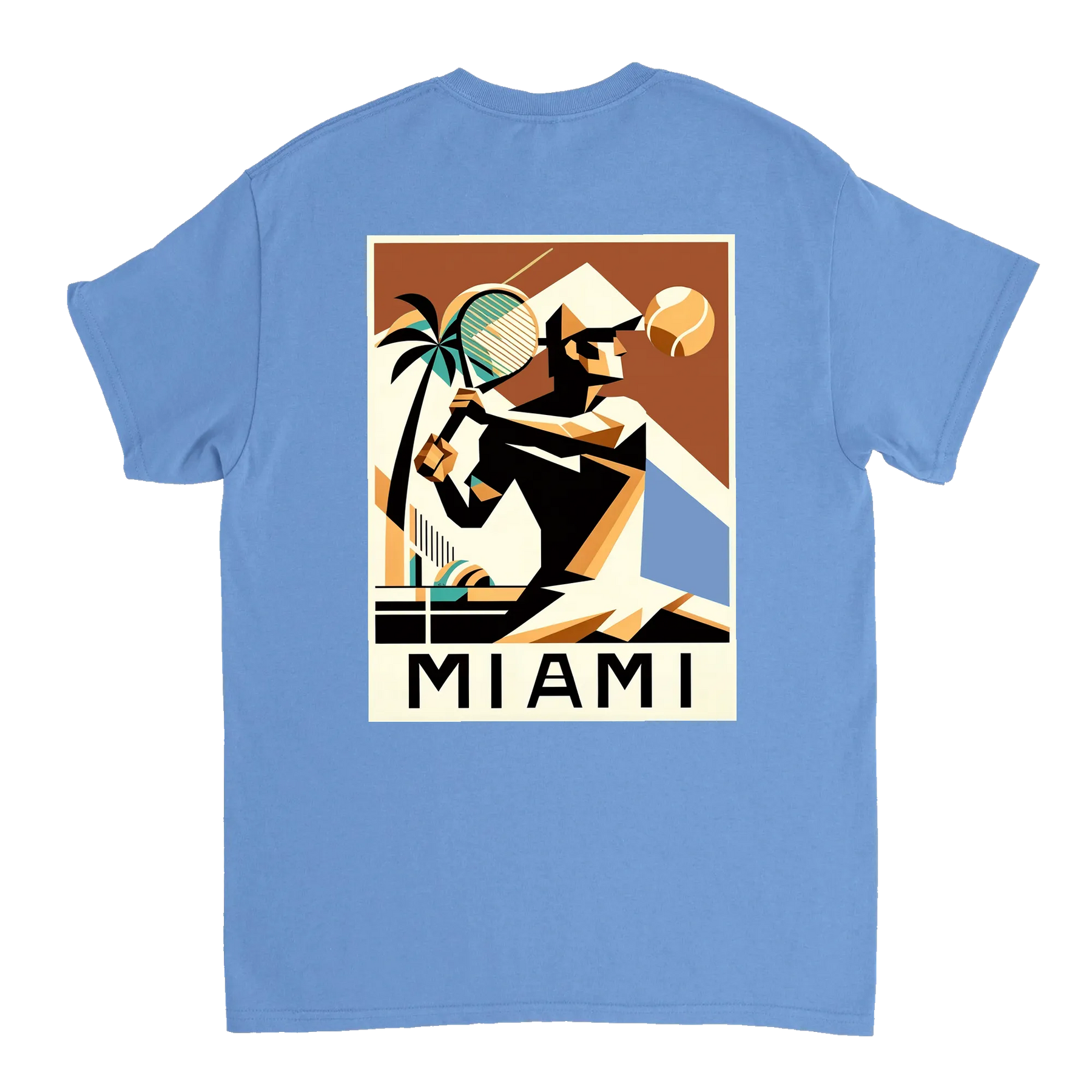 T-shirt Miami Tennis: design vibrante che cattura lo spirito energetico del tennis a Miami, in cotone morbido e traspirante p
