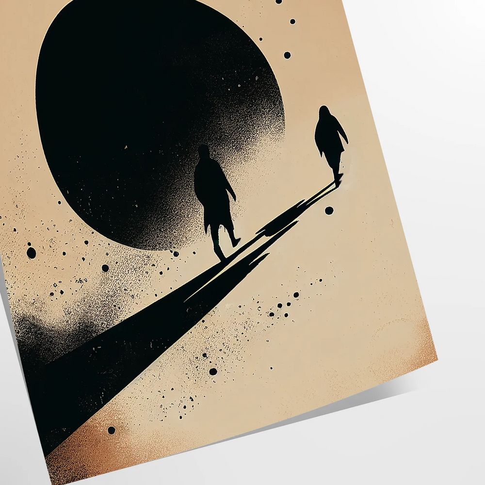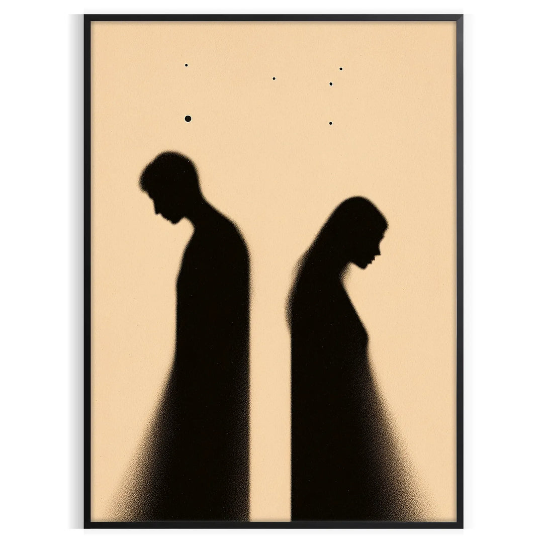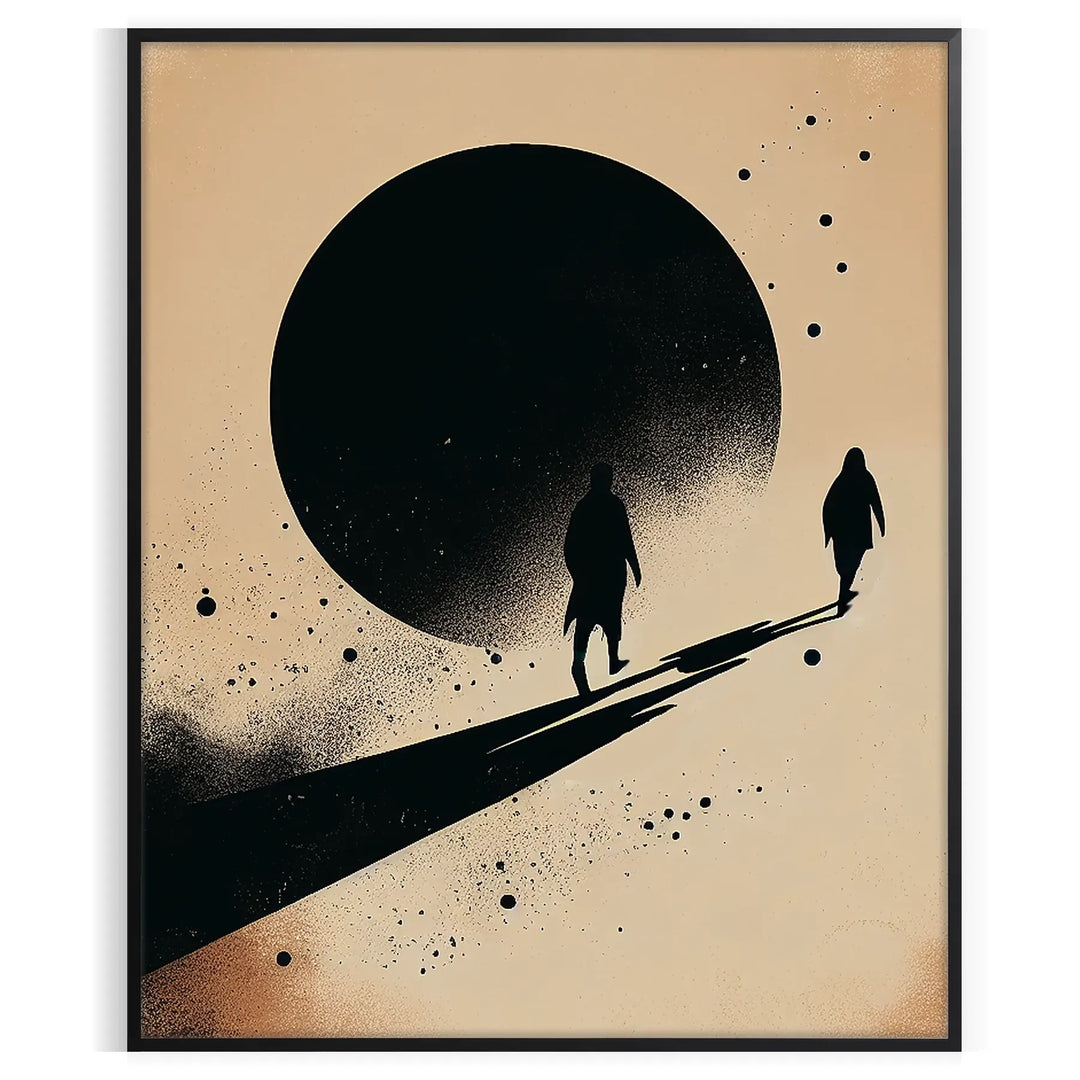 Poster minimalista umano mistico con toni neri e arancioni, ideale per decorare e regalare. Disponibile in diverse dimensioni
