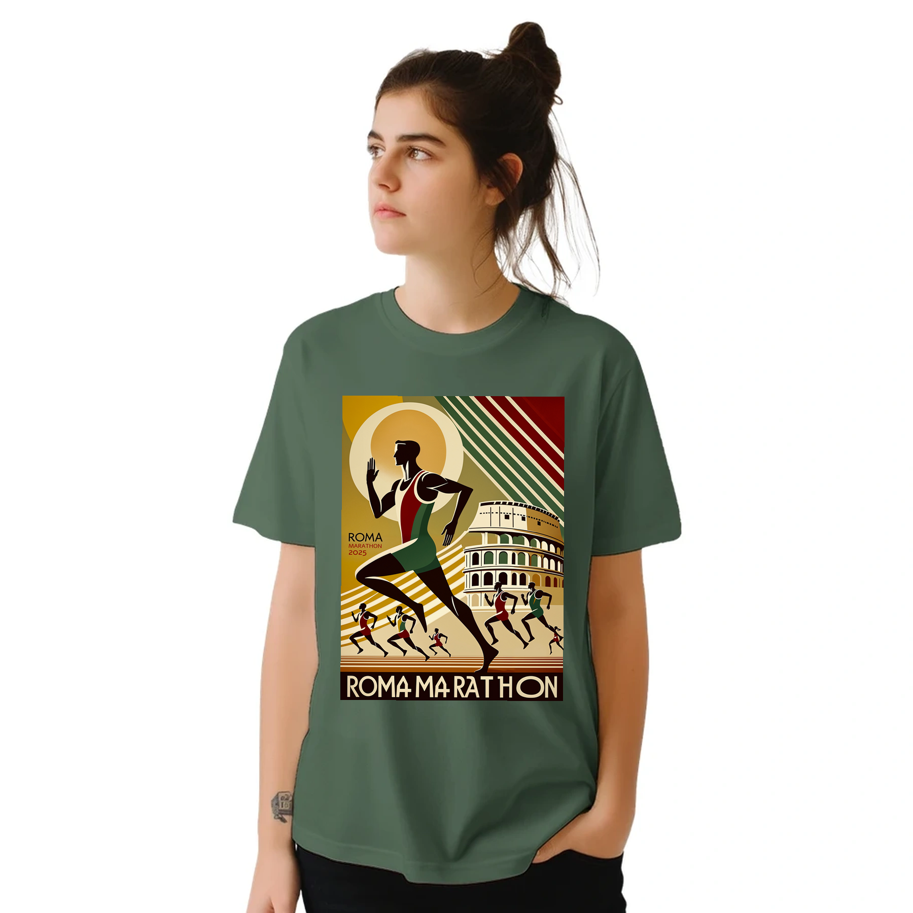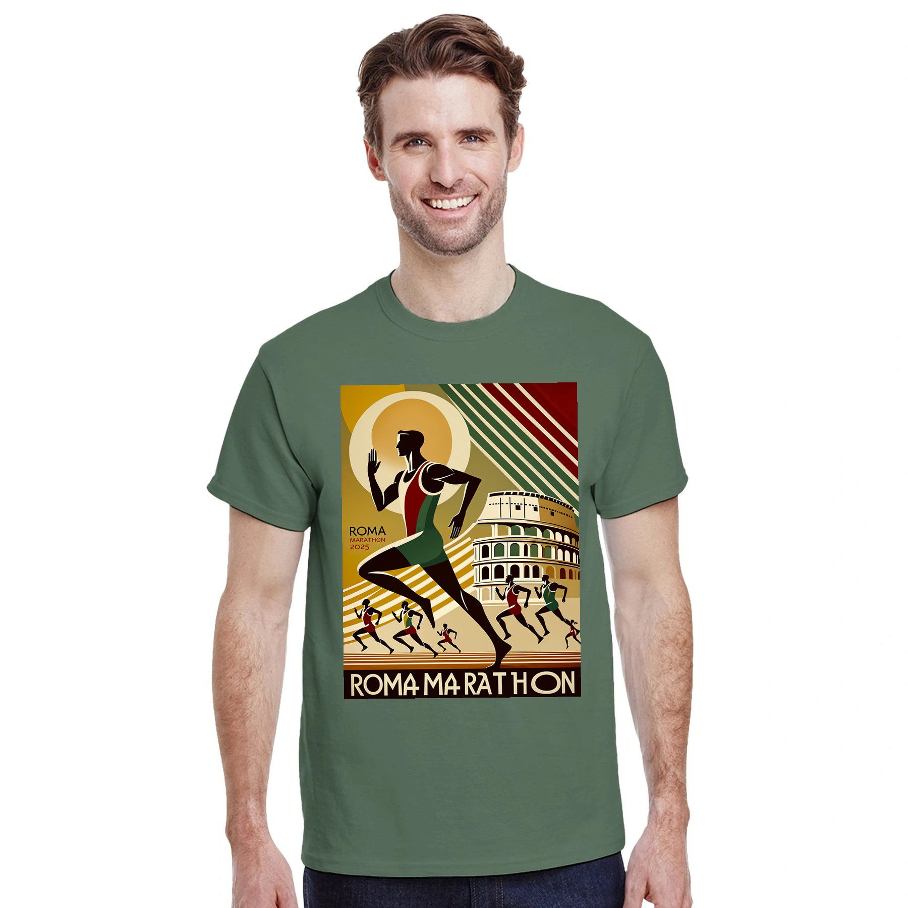 ランニングへの情熱を祝おう!ローママラソン5 Tシャツは、アイコニックなマラソンにインスパイアされたデザインが特徴です。アスリートやファンにぴったりのアイテムです。