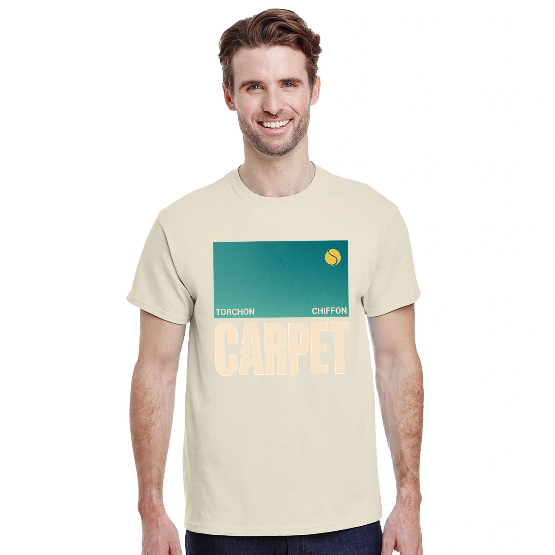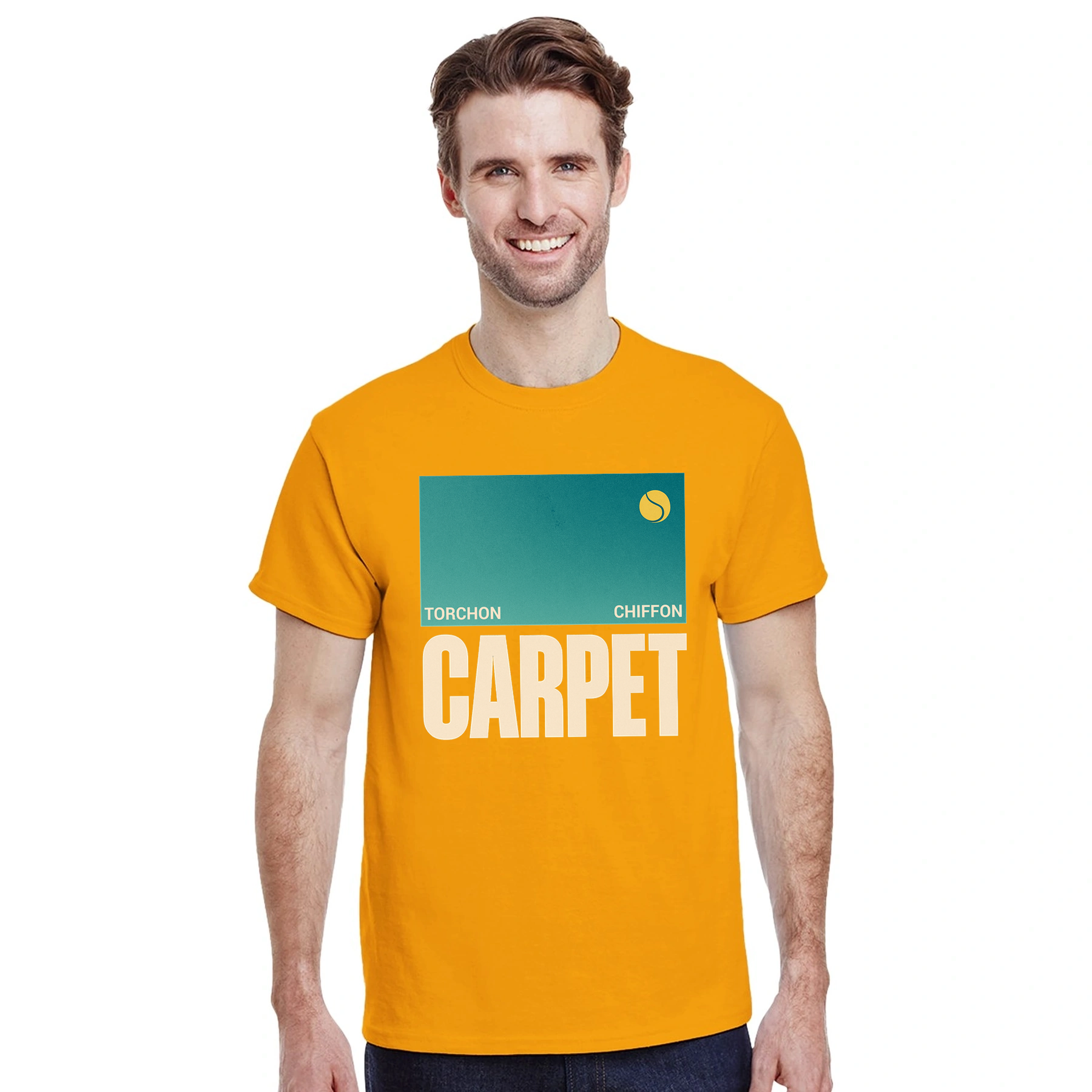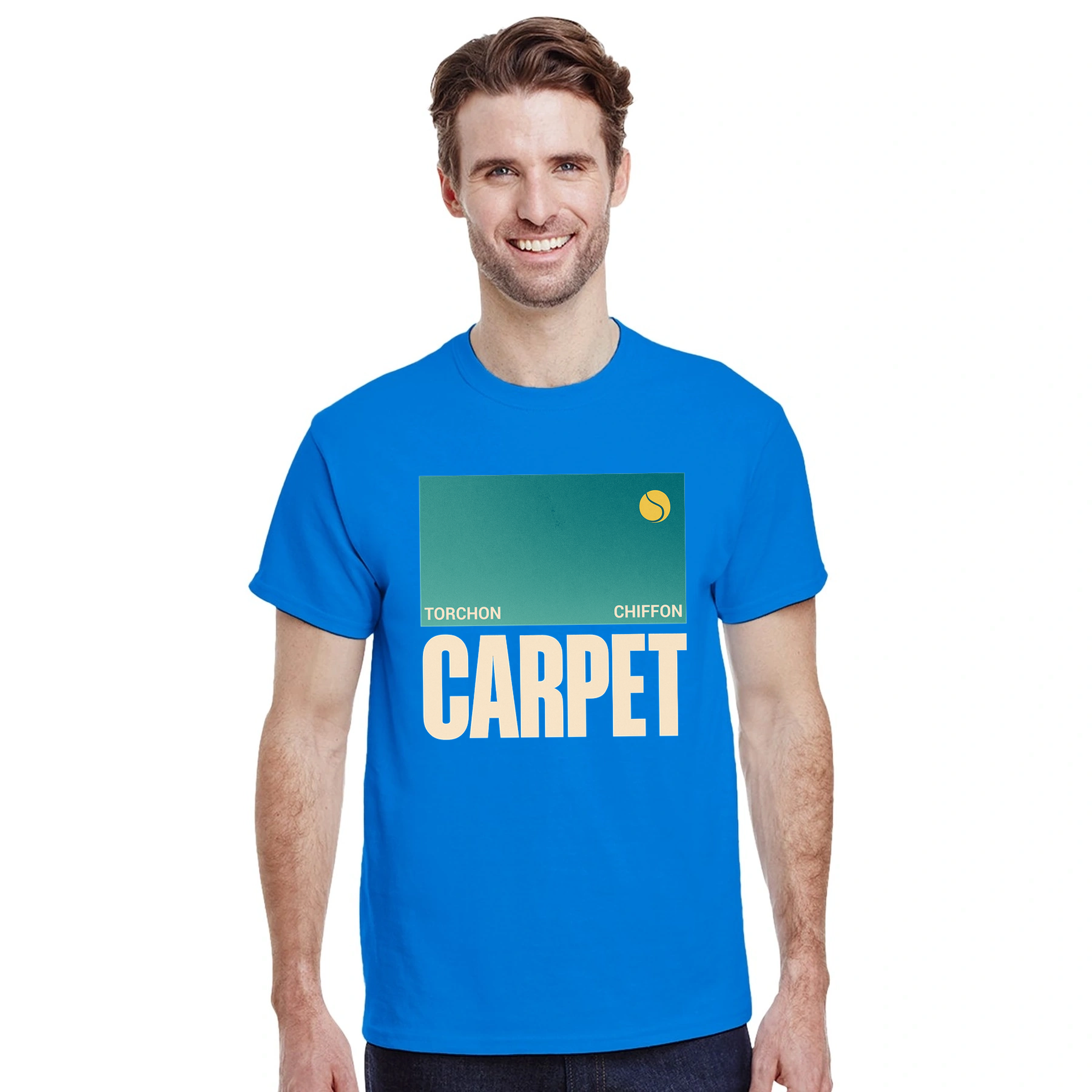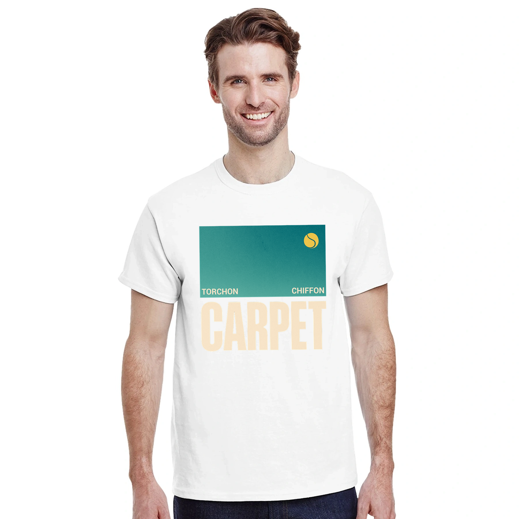 テニス愛好者にぴったりのトーチシフォンカーペットTシャツ。快適な着心地と鮮やかなデザインが魅力。サイズはSからXXLまで選べます。