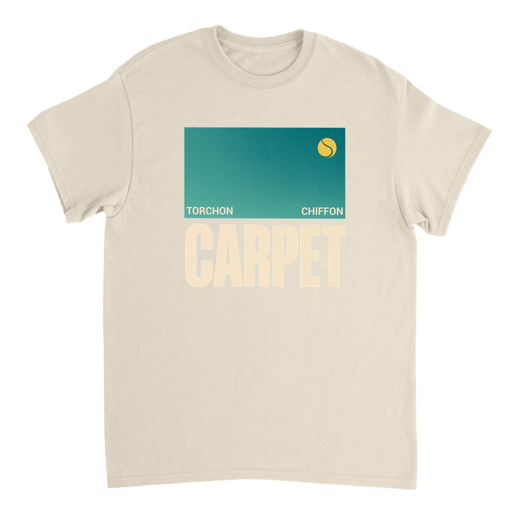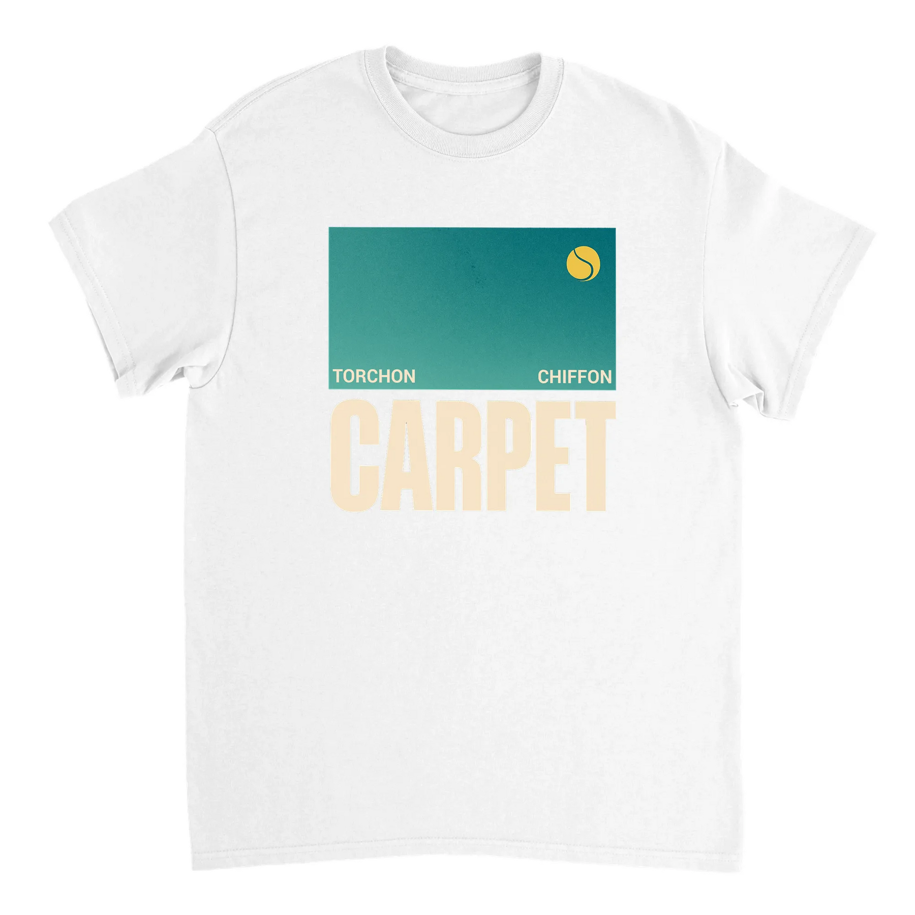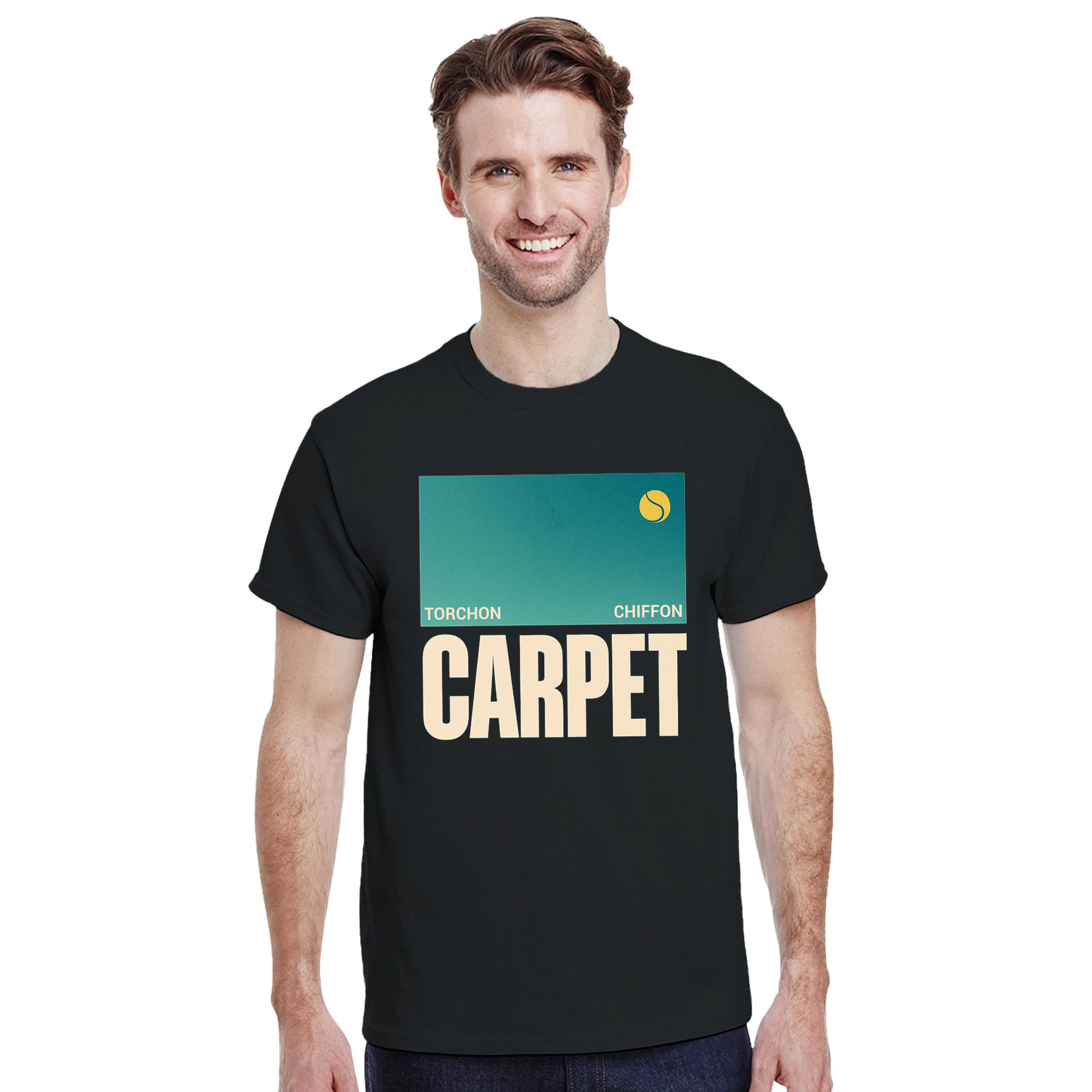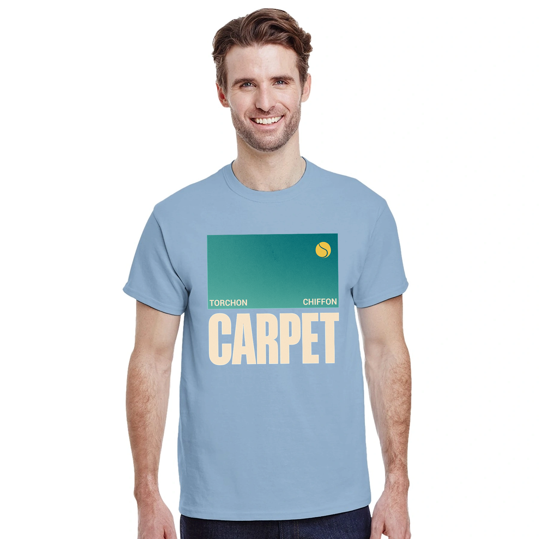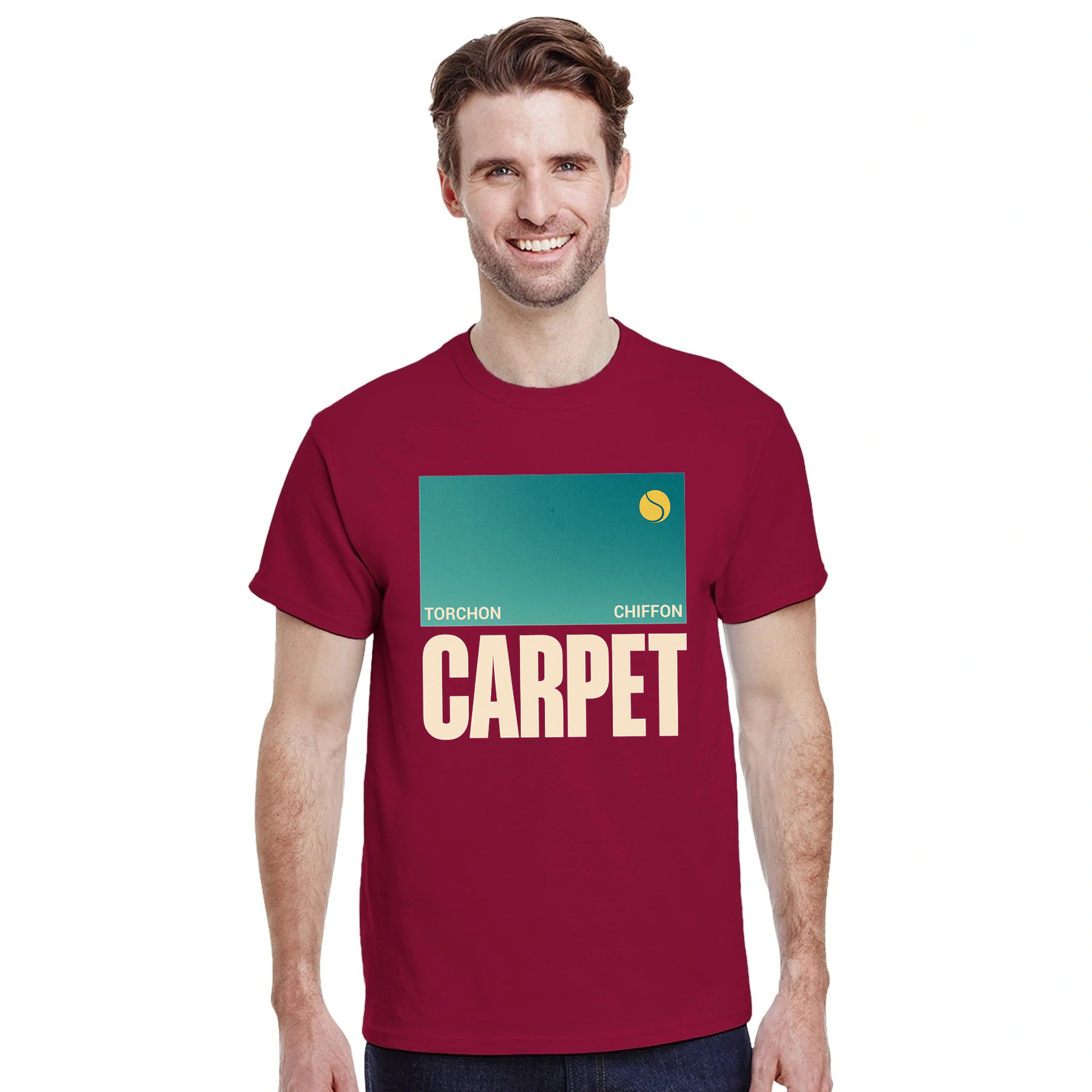 テニス愛好者にぴったりのトーチシフォンカーペットTシャツ。快適な着心地と鮮やかなデザインが魅力。サイズはSからXXLまで選べます。