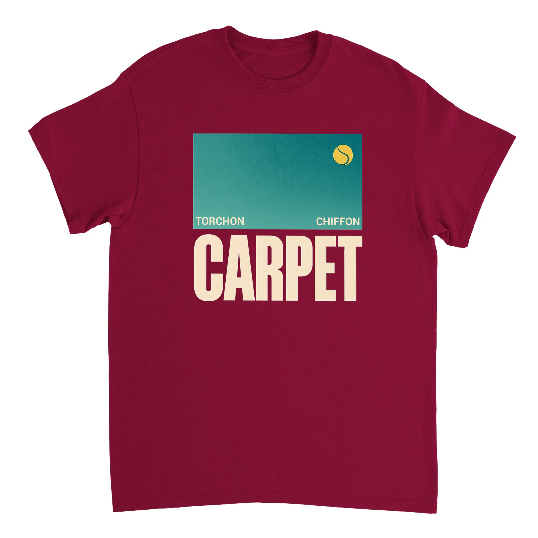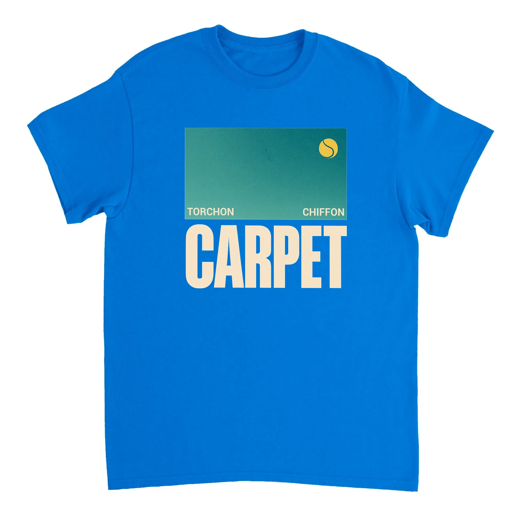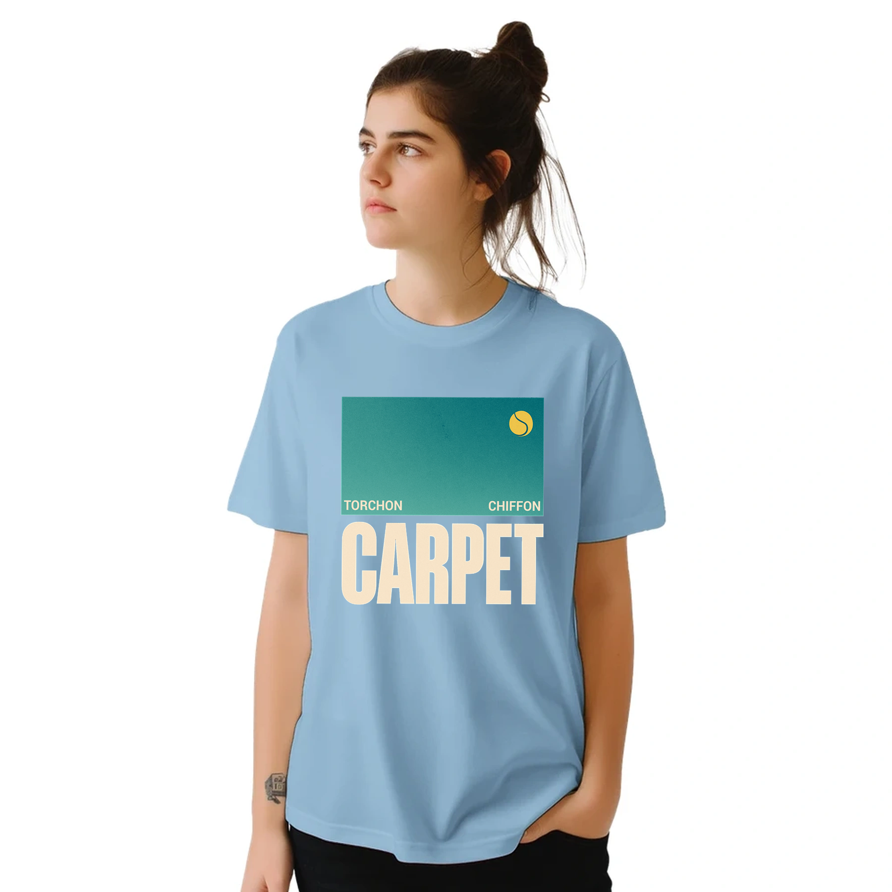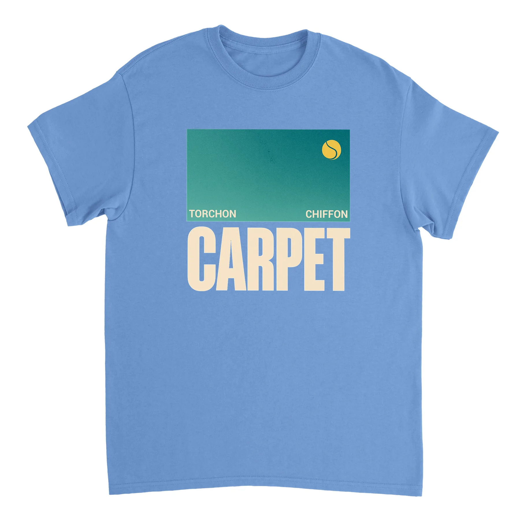 テニス愛好者にぴったりのトーチシフォンカーペットTシャツ。快適な着心地と鮮やかなデザインが魅力。サイズはSからXXLまで選べます。