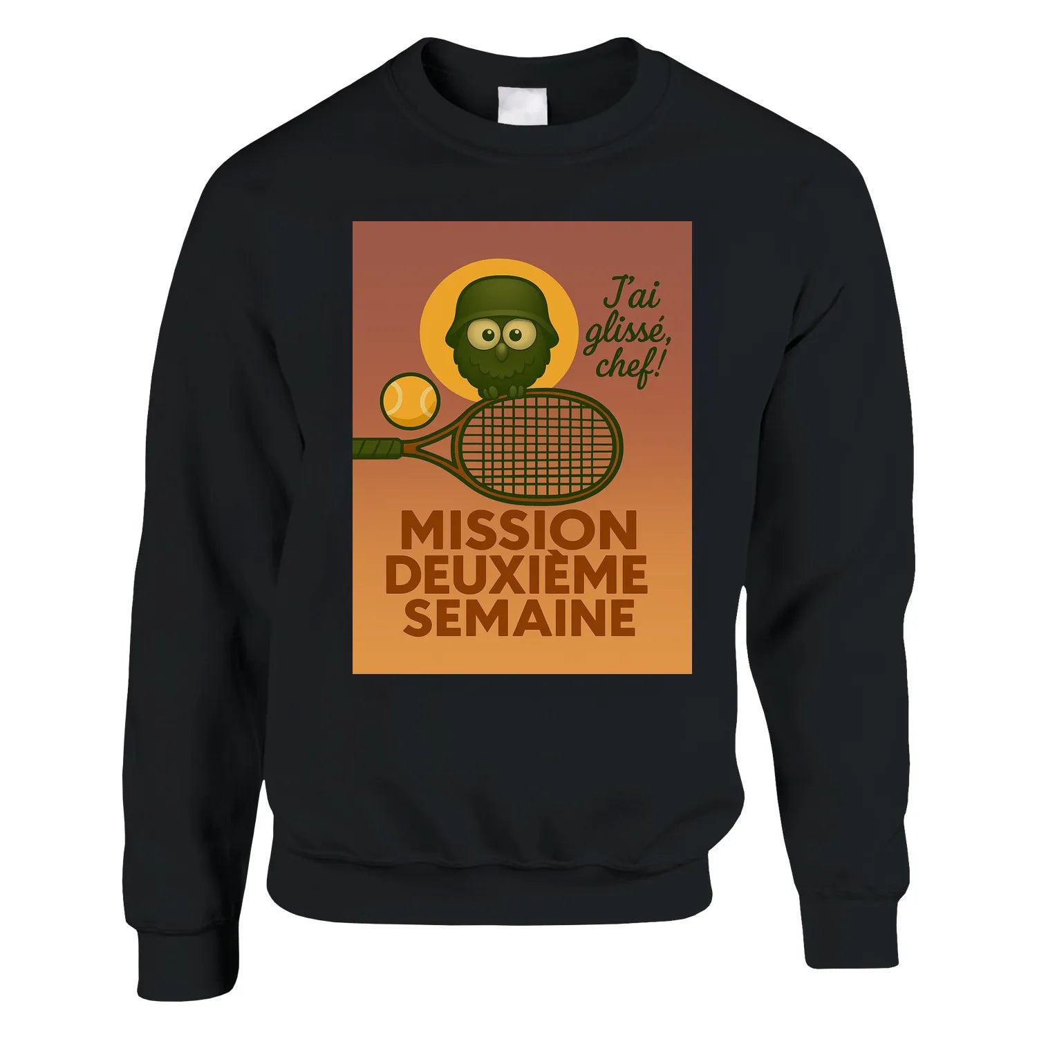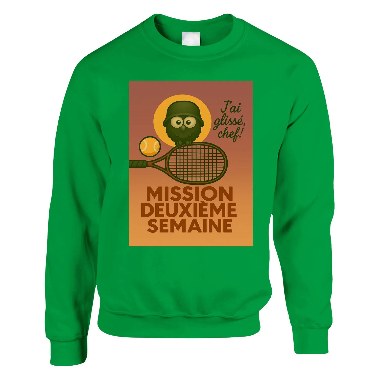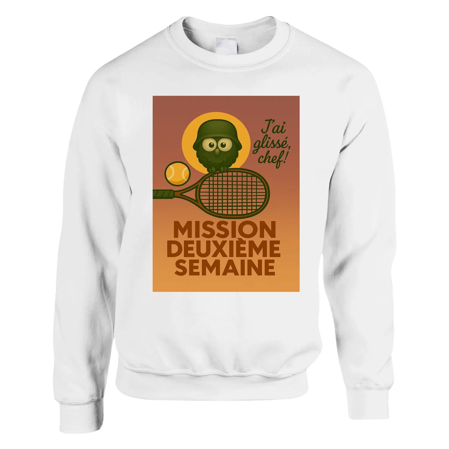 Buy the Mission 2eme Semaine Tennis Sweater for ultimate comfort and durability. Crafted from a 50% cotton and 50% polyester blend, this thick sweatshirt features air-jet spinning for a soft, no-pill feel. Enjoy a classic cut, double-needle stitching, and stretchable rib knit, perfect for both men and women.