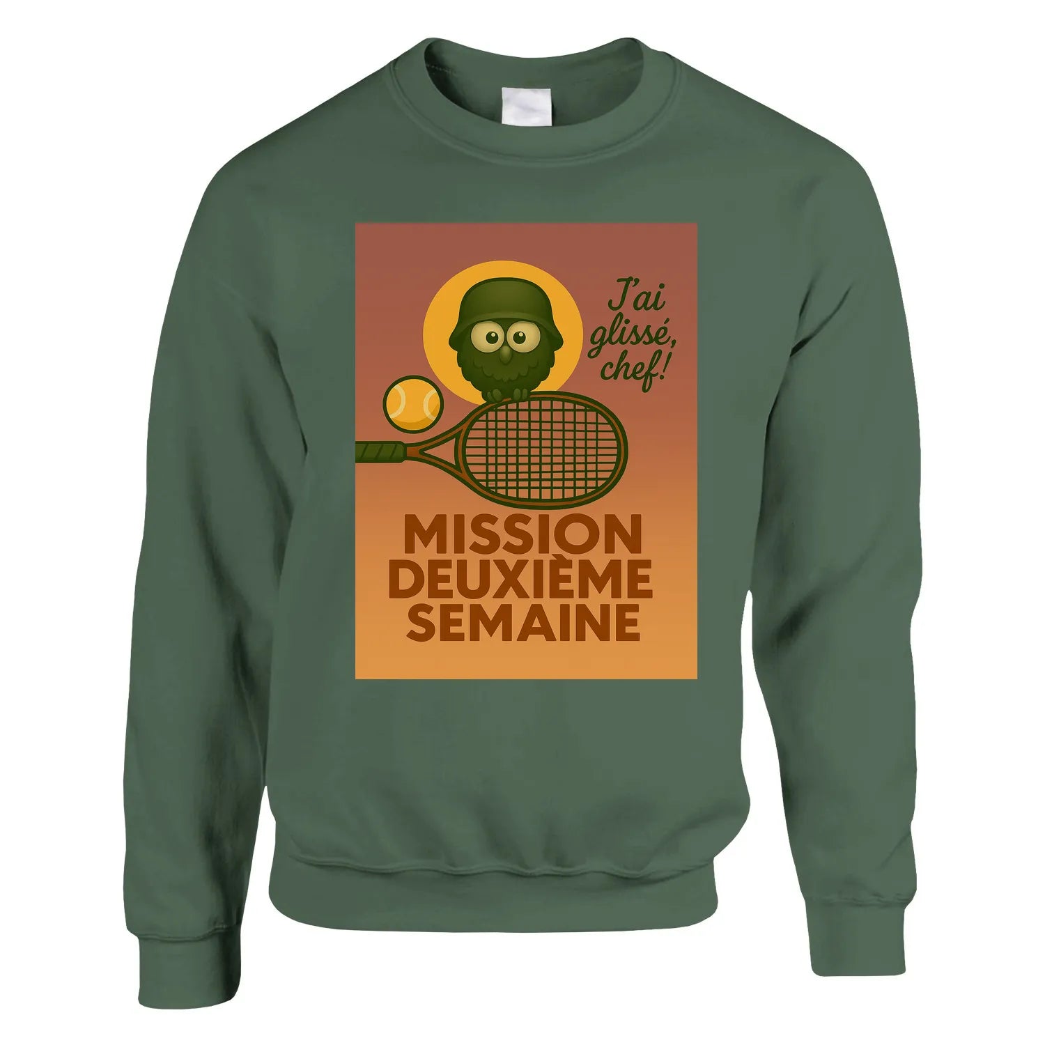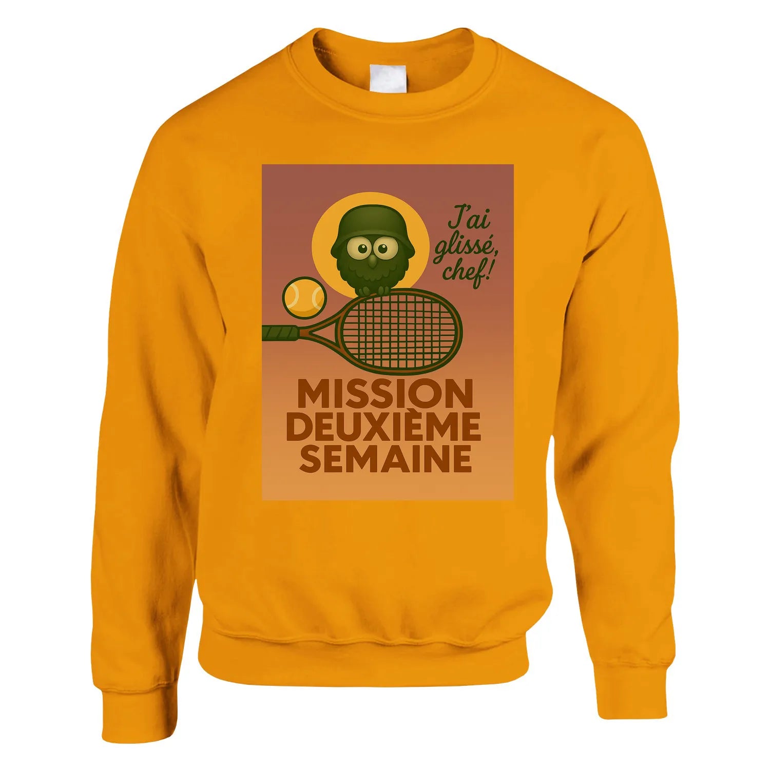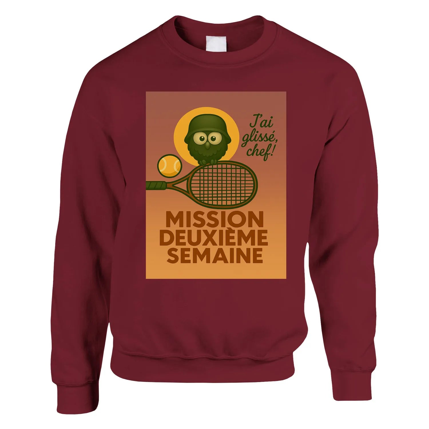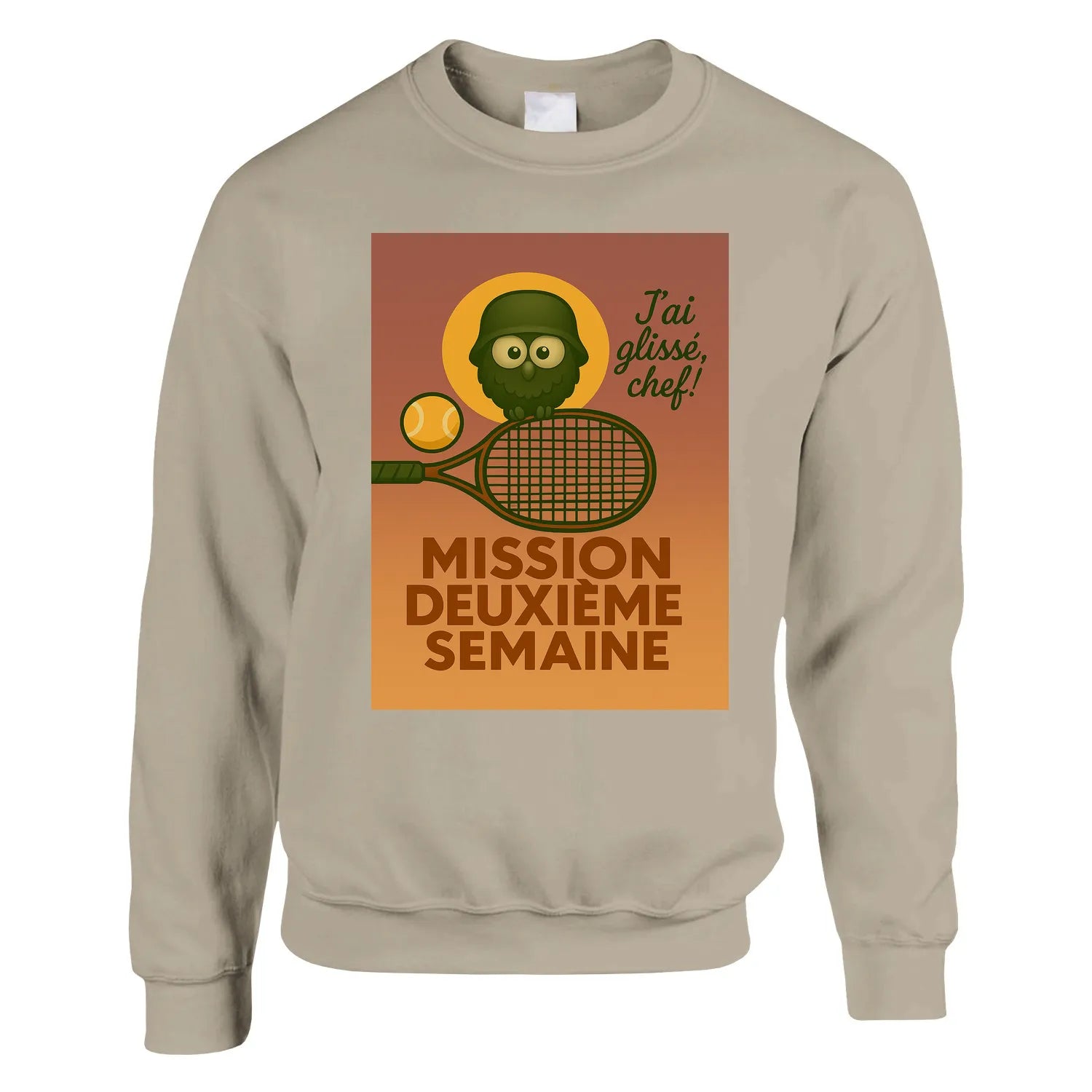 Buy the Mission 2eme Semaine Tennis Sweater for ultimate comfort and durability. Crafted from a 50% cotton and 50% polyester blend, this thick sweatshirt features air-jet spinning for a soft, no-pill feel. Enjoy a classic cut, double-needle stitching, and stretchable rib knit, perfect for both men and women.