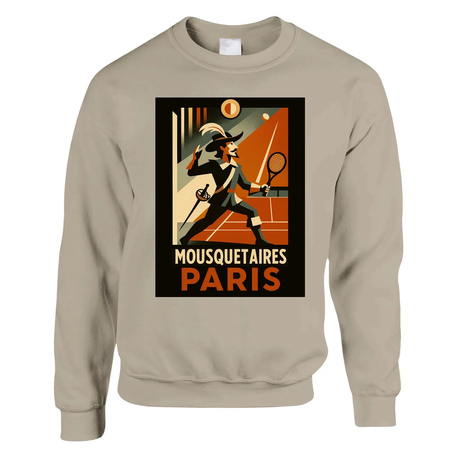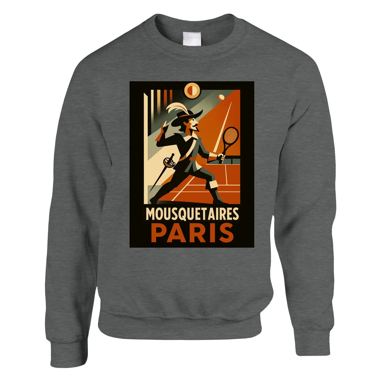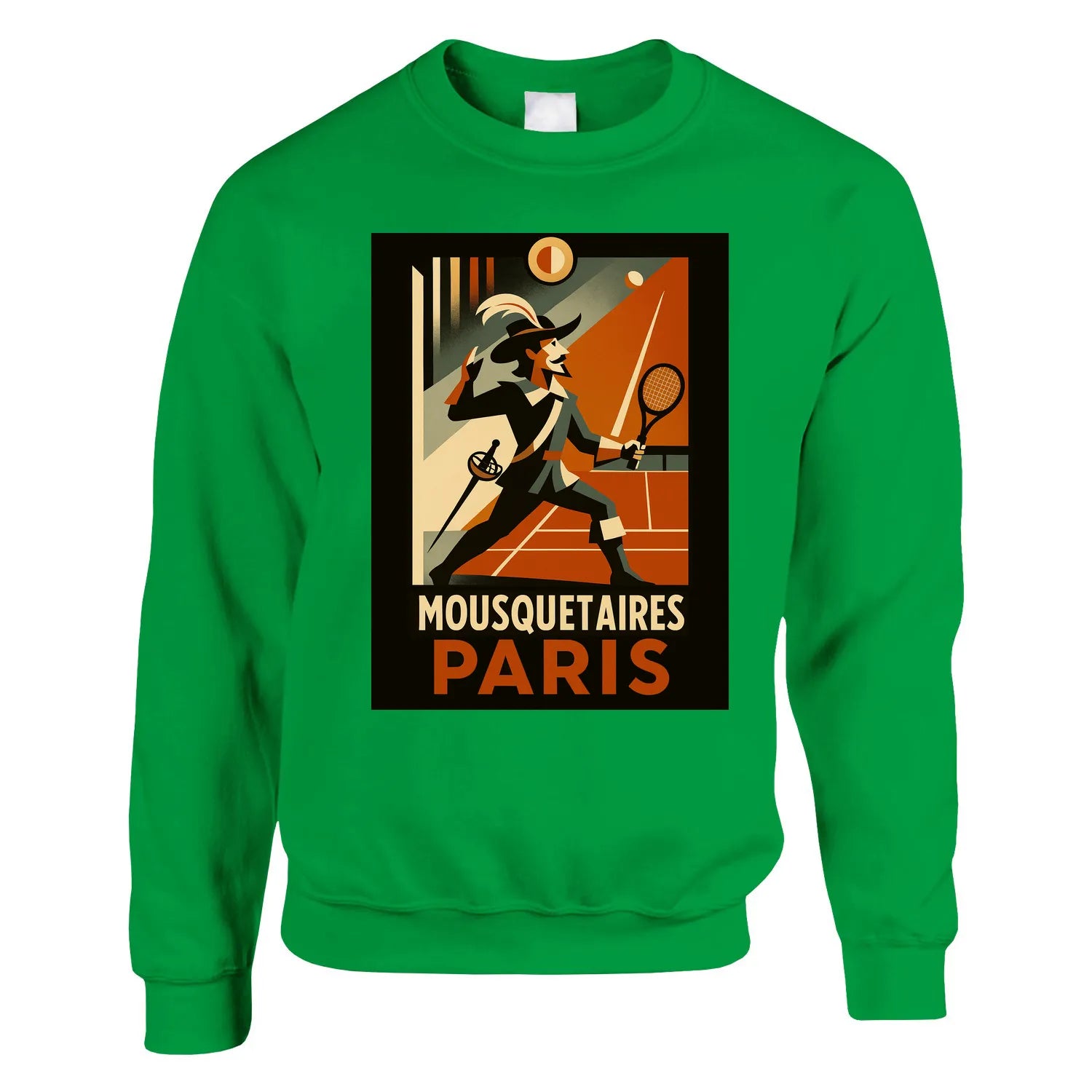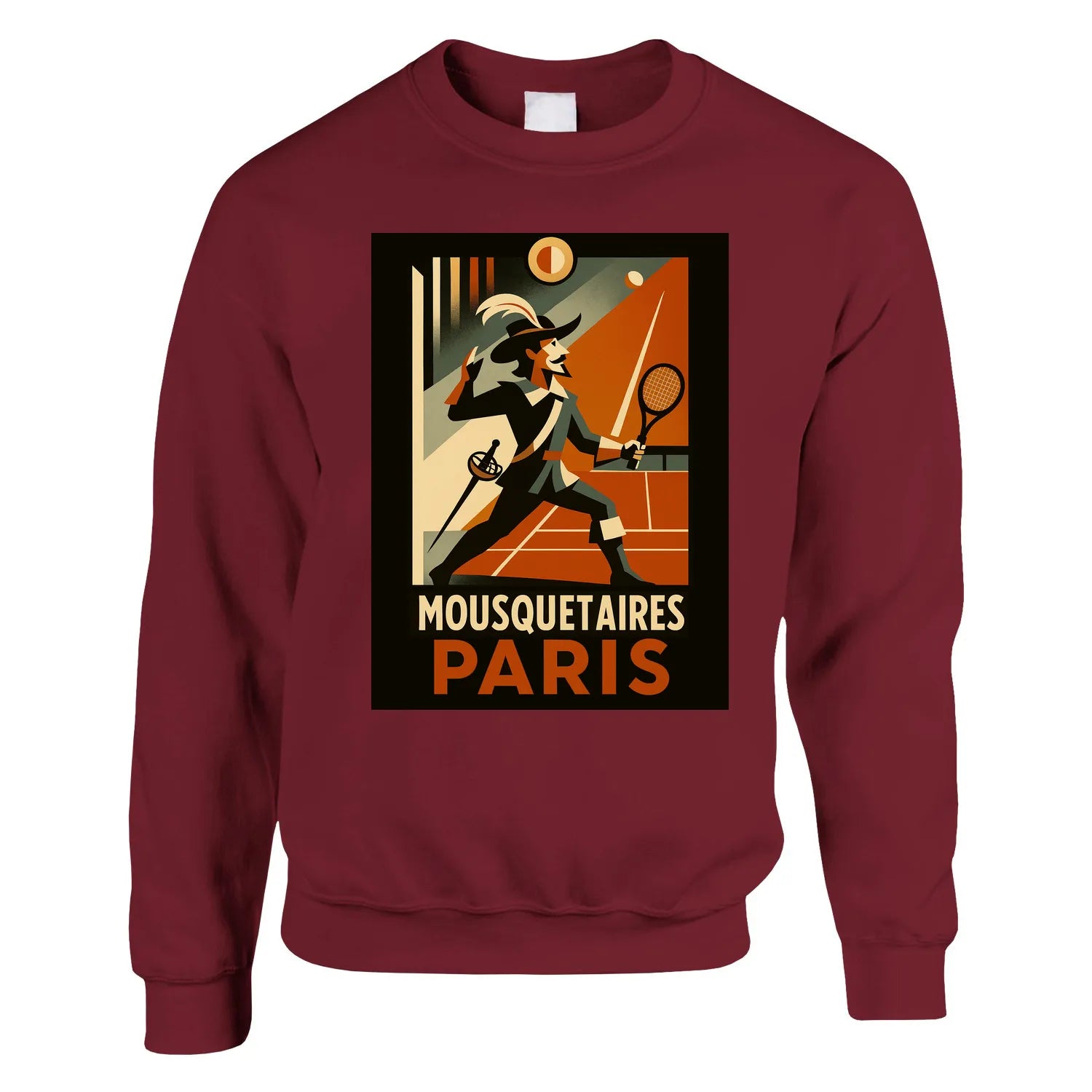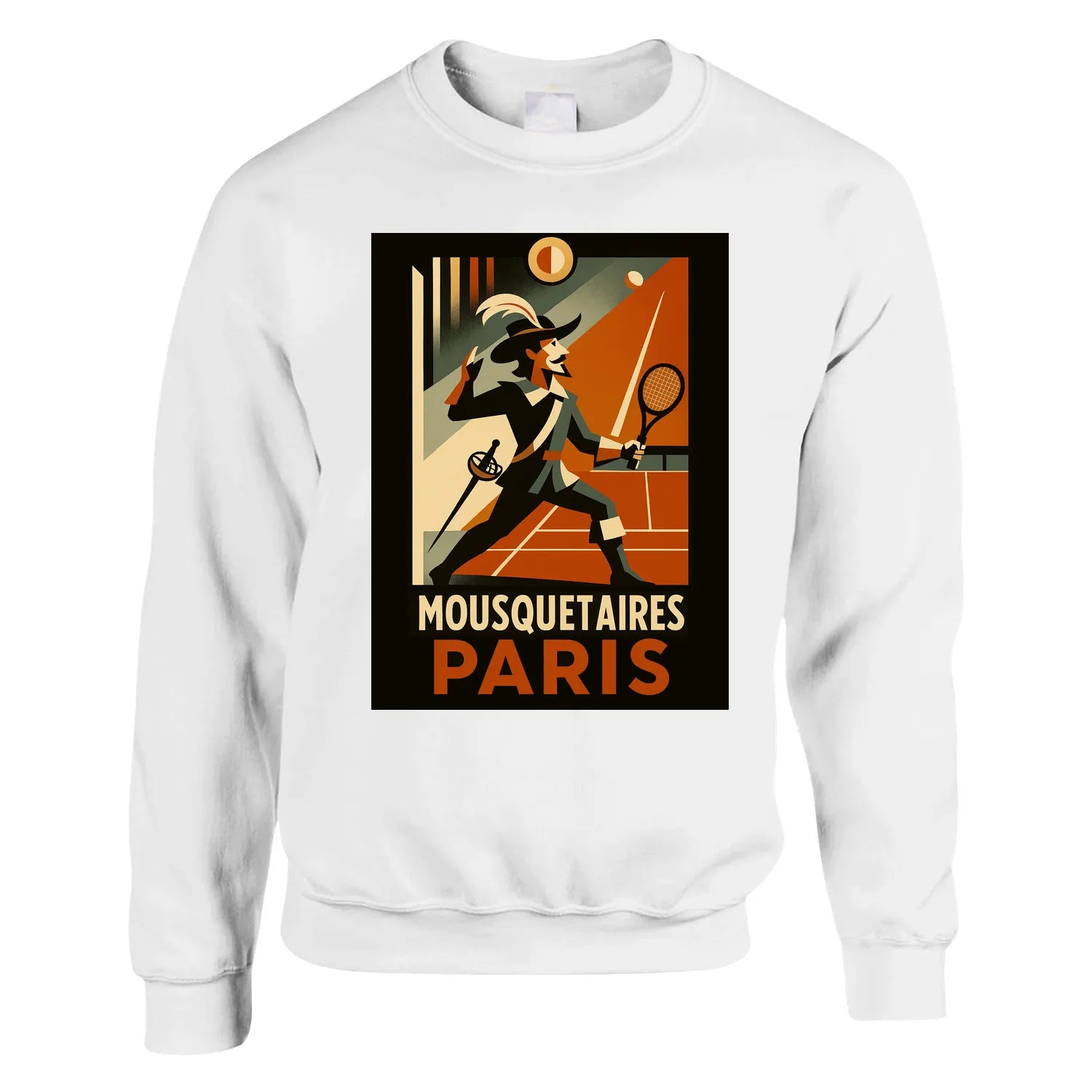Buy the Mousquetaires Paris Tennis Sweater for unmatched comfort and style. Crafted from a soft 50% cotton, 50% polyester blend using air-jet spinning to minimize pilling, this classic-cut sweatshirt offers durability with double-needle stitching and stretchable 1x1 rib knit. Ideal for both men and women.