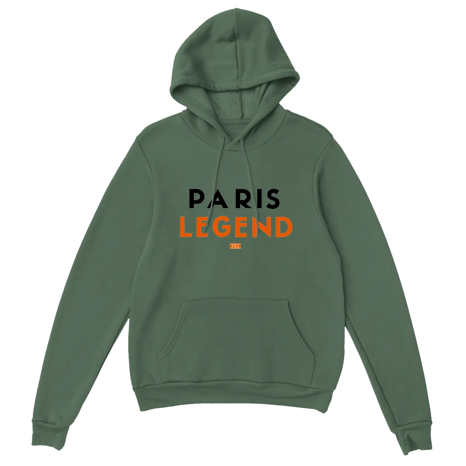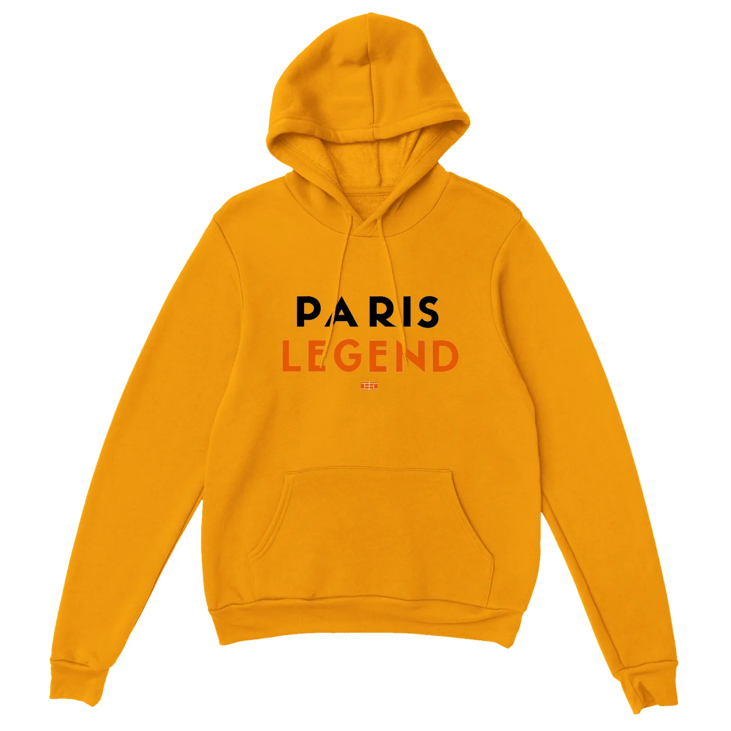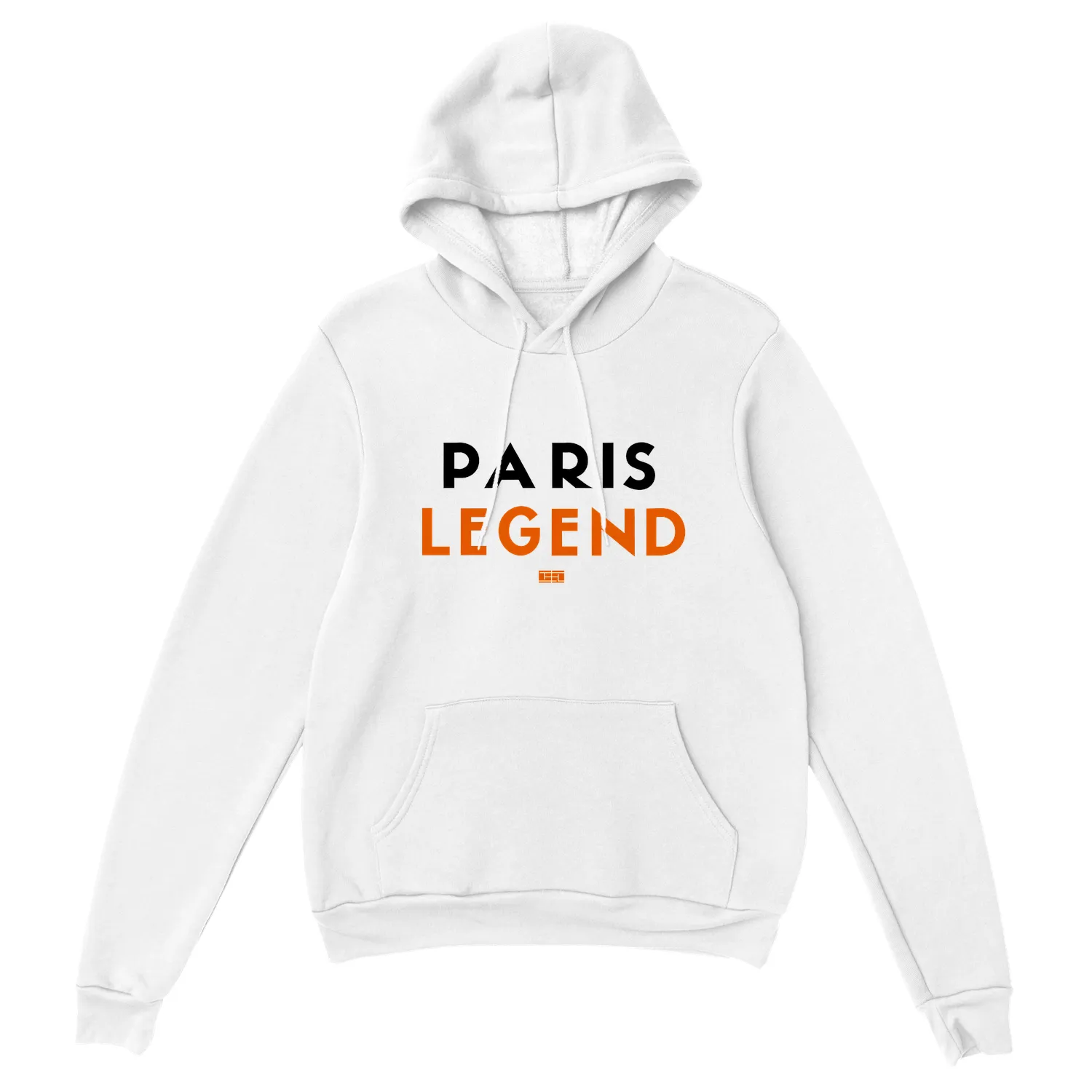Buy the Hoodie Tennis Paris Legend 3 for ultimate comfort and style! This thick, unisex pullover features a soft 50/50 cotton-poly blend, lined hood, air-jet fabric to reduce pilling, front pocket, ribbed cuffs, and spandex waistband. Perfect for both men and women.