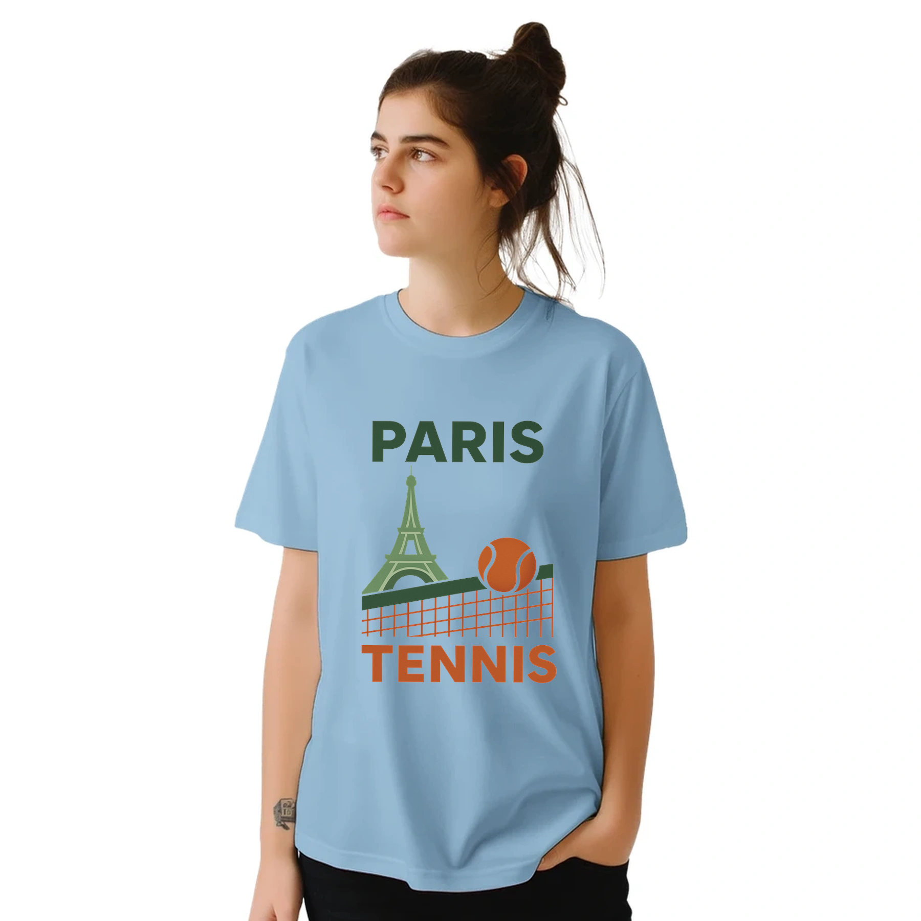 Stilīgs Parīzes tenisa T-krekls, kas apvieno komfortu un eleganci, ideāli piemērots tenisa entuziastiem un Parīzes mīļotājiem