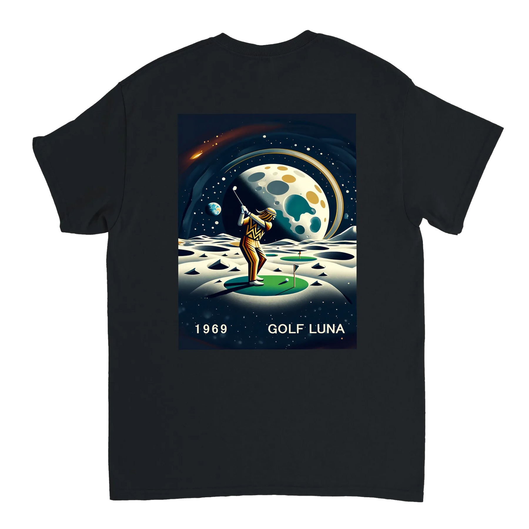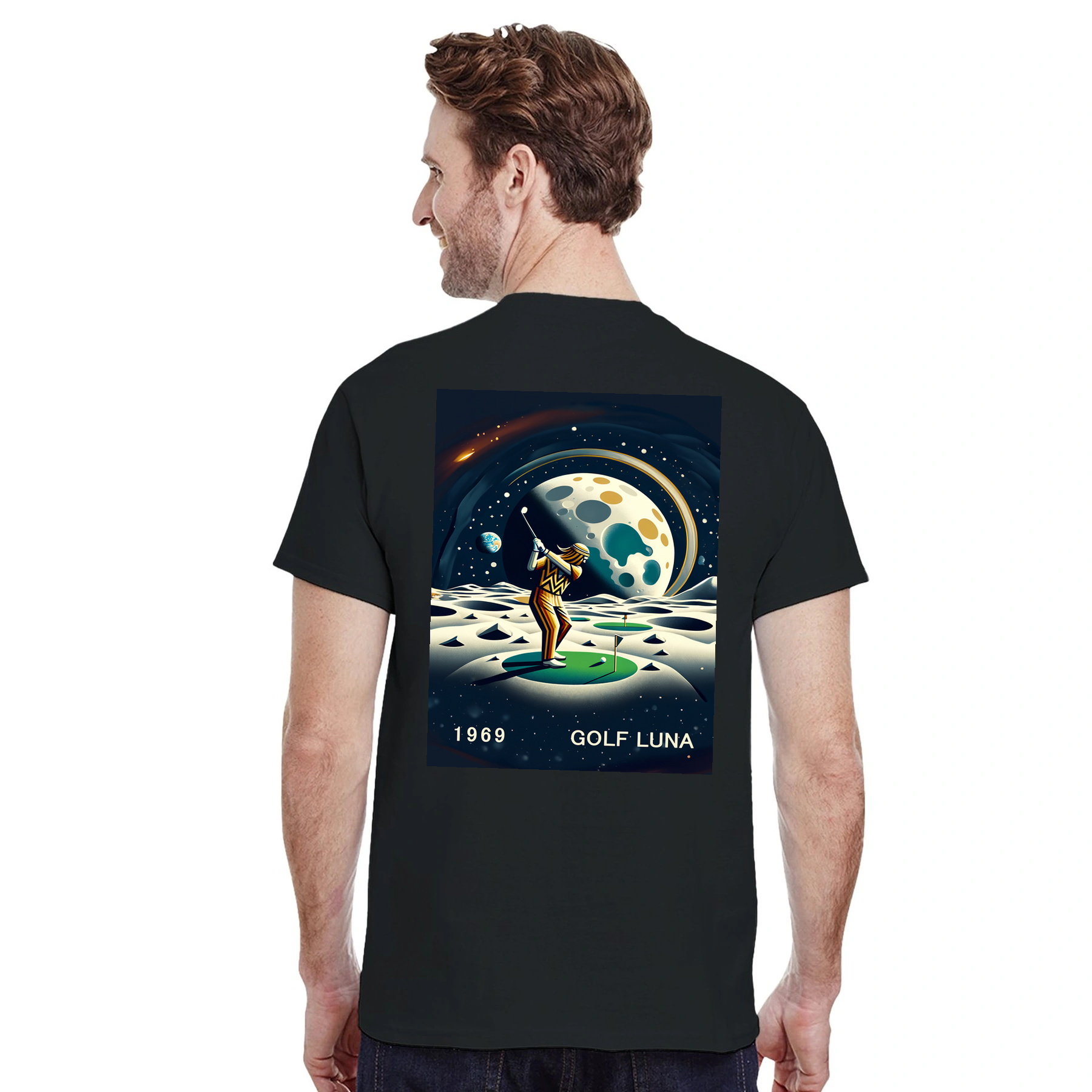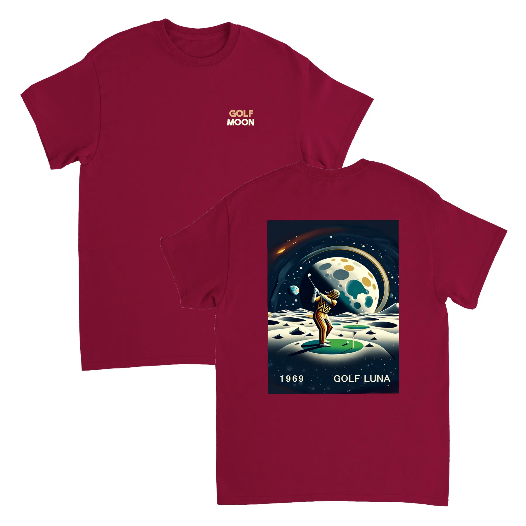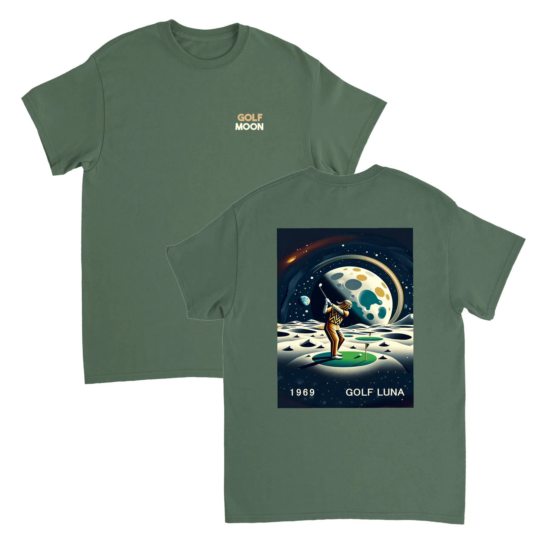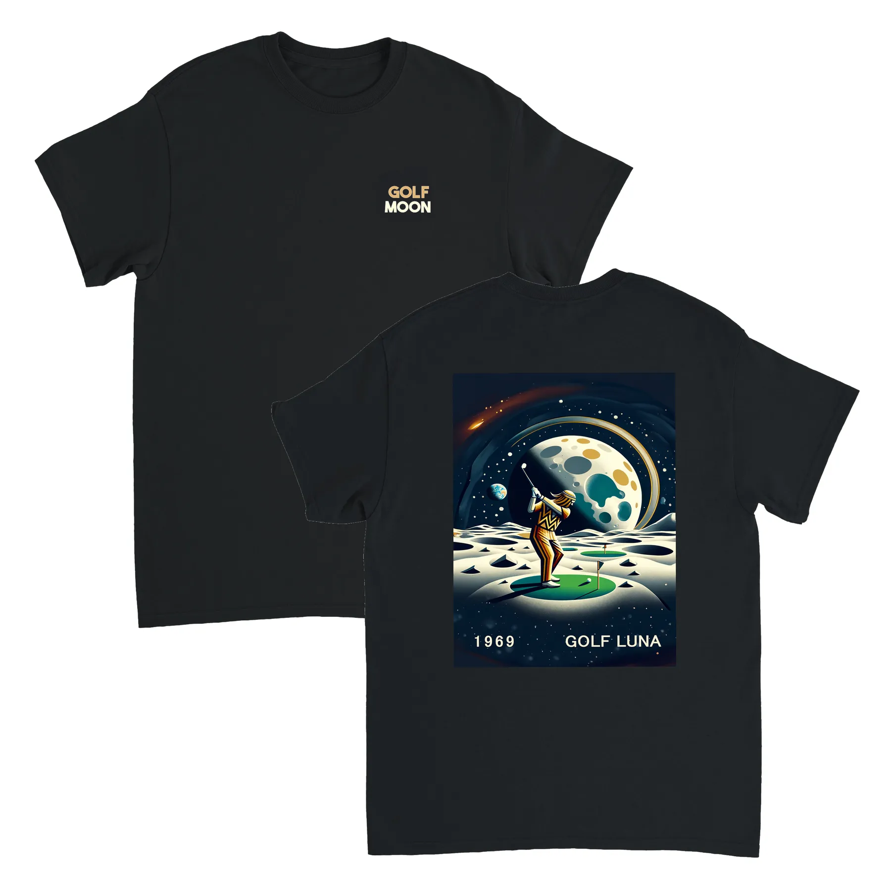 Koszulka Golf Moon z unikalnym wzorem, idealna na pole golfowe i codzienne wyjścia. Wygodna i trwała, dostępna w rozmiarach S