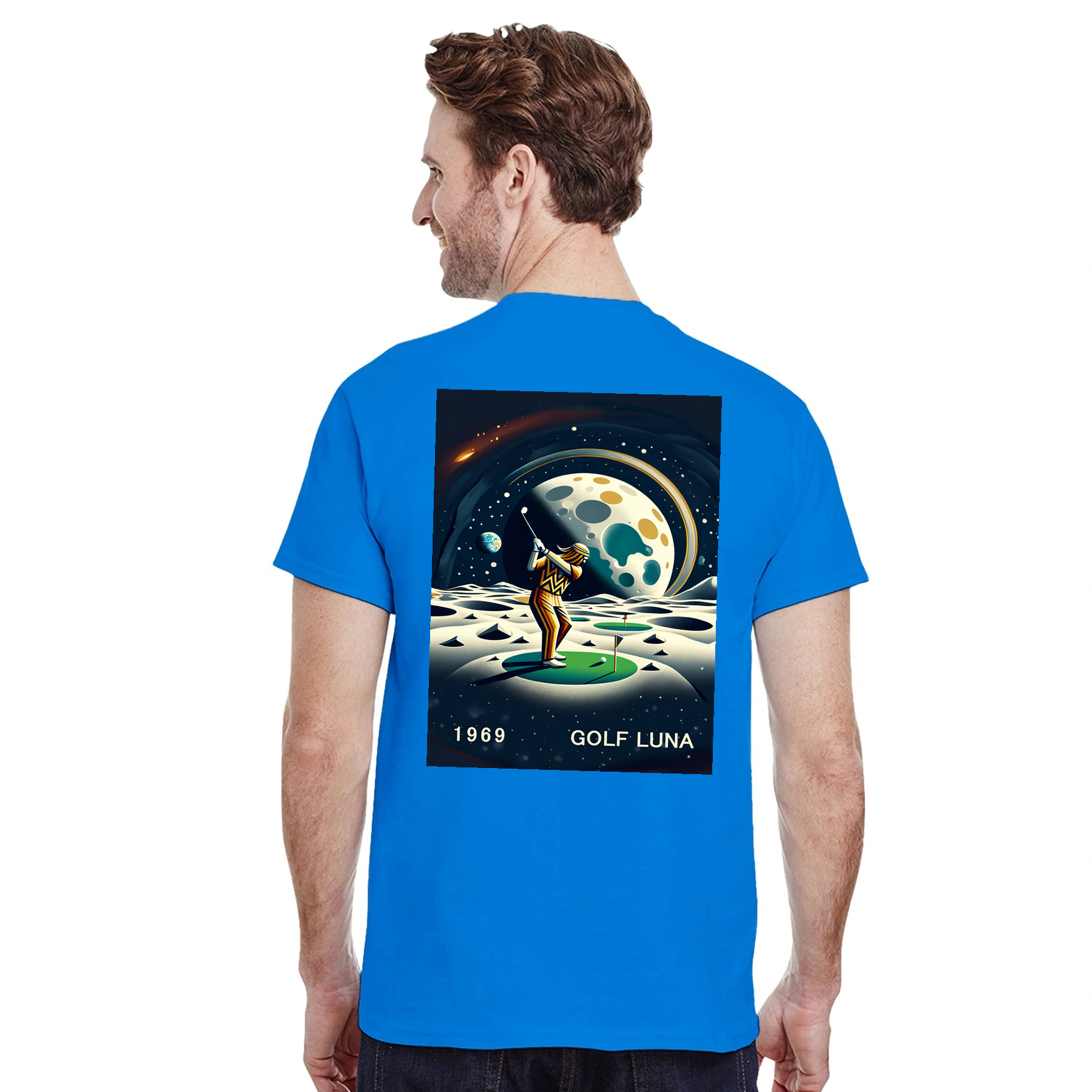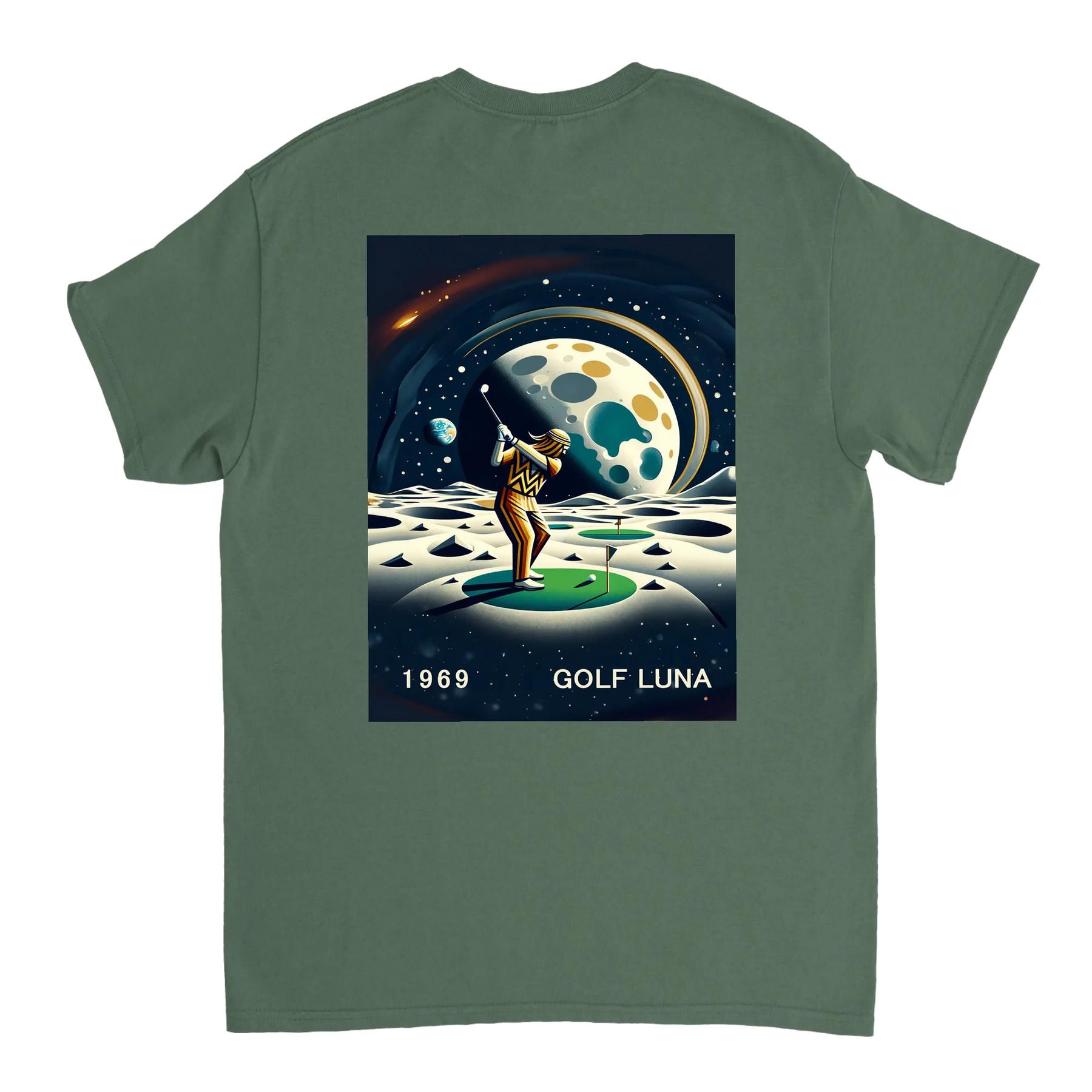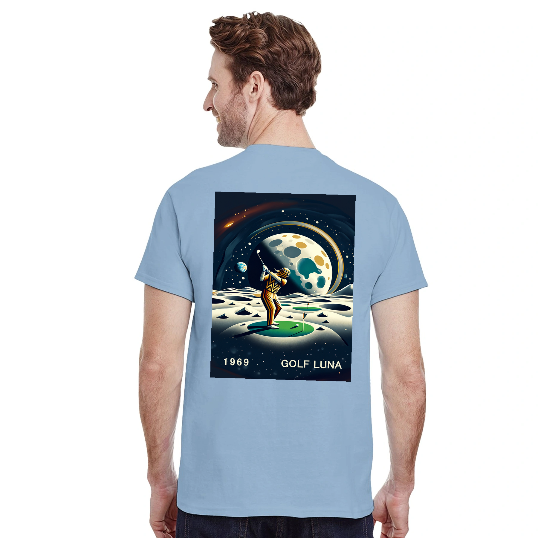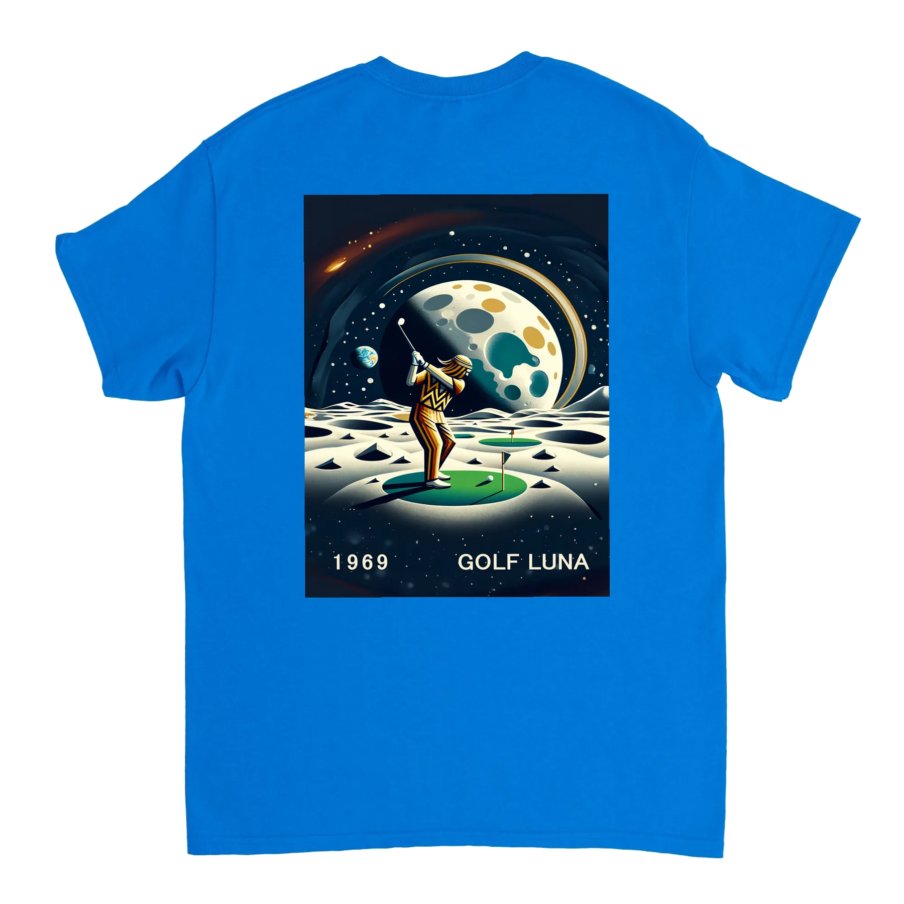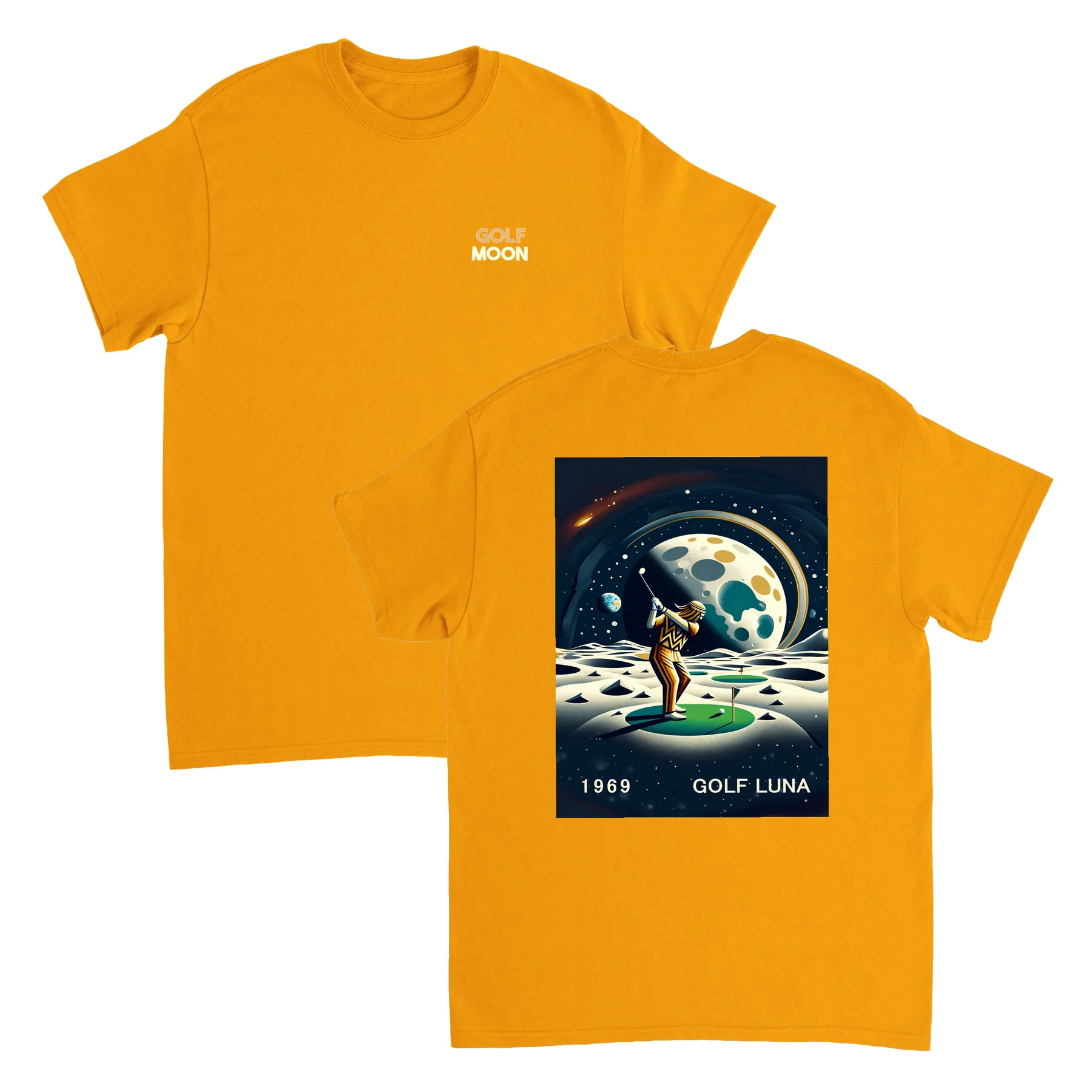 Koszulka Golf Moon z unikalnym wzorem, idealna na pole golfowe i codzienne wyjścia. Wygodna i trwała, dostępna w rozmiarach S