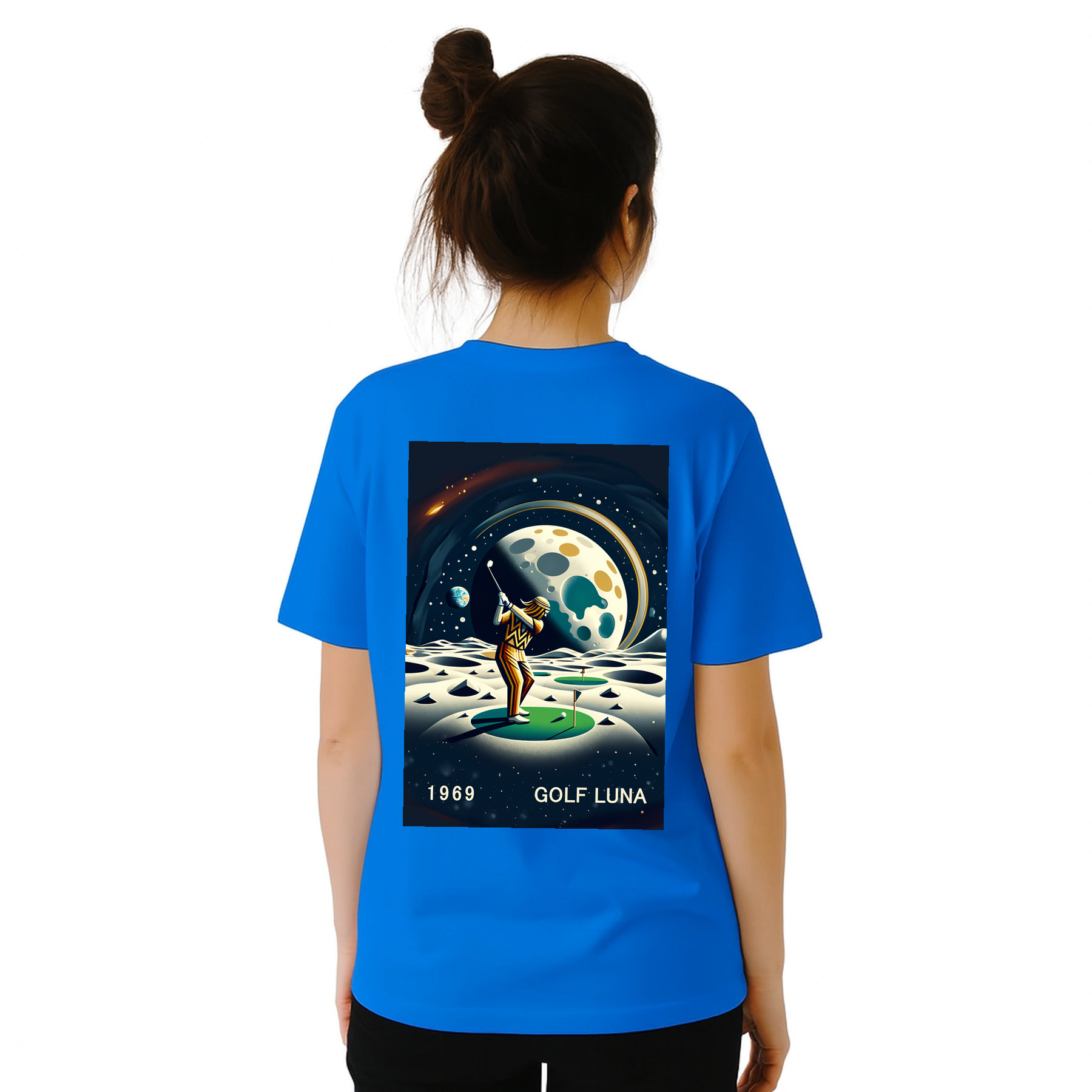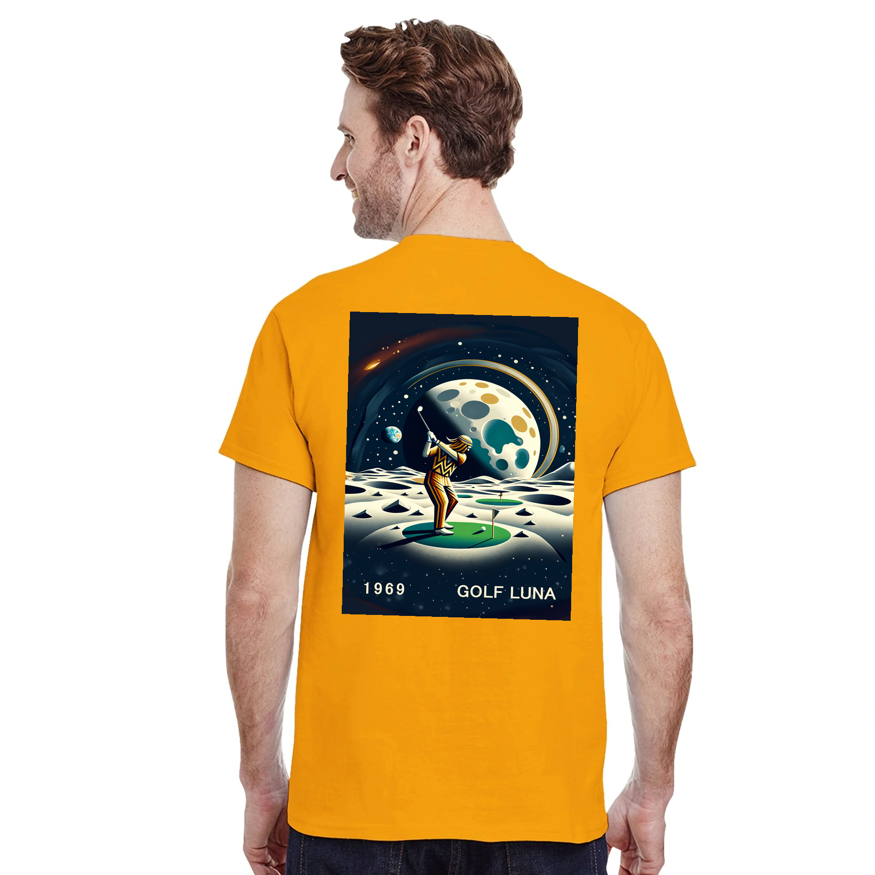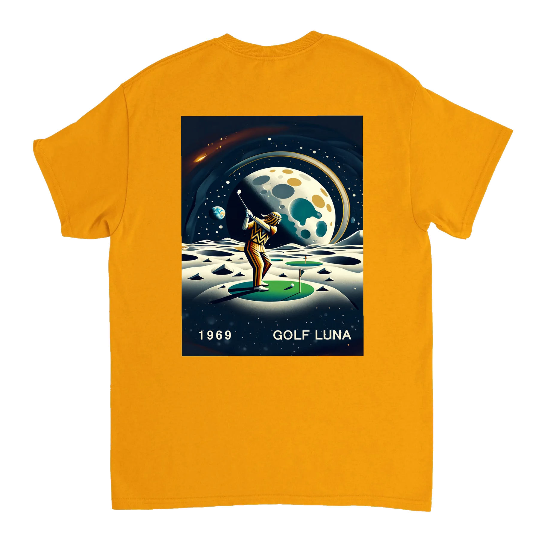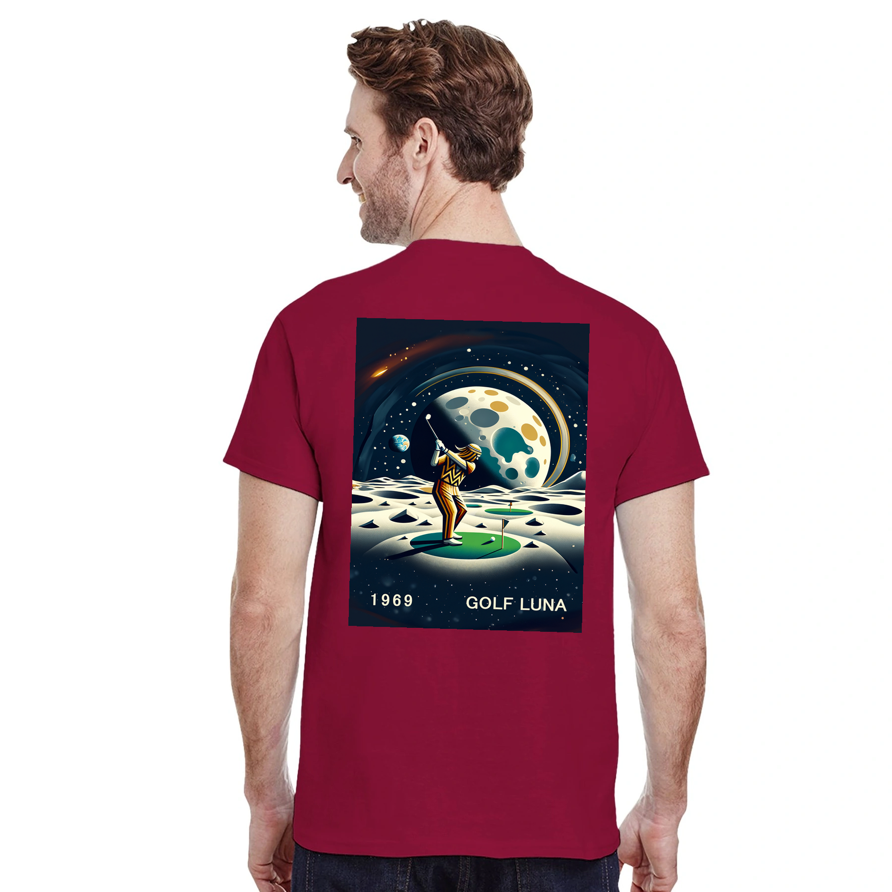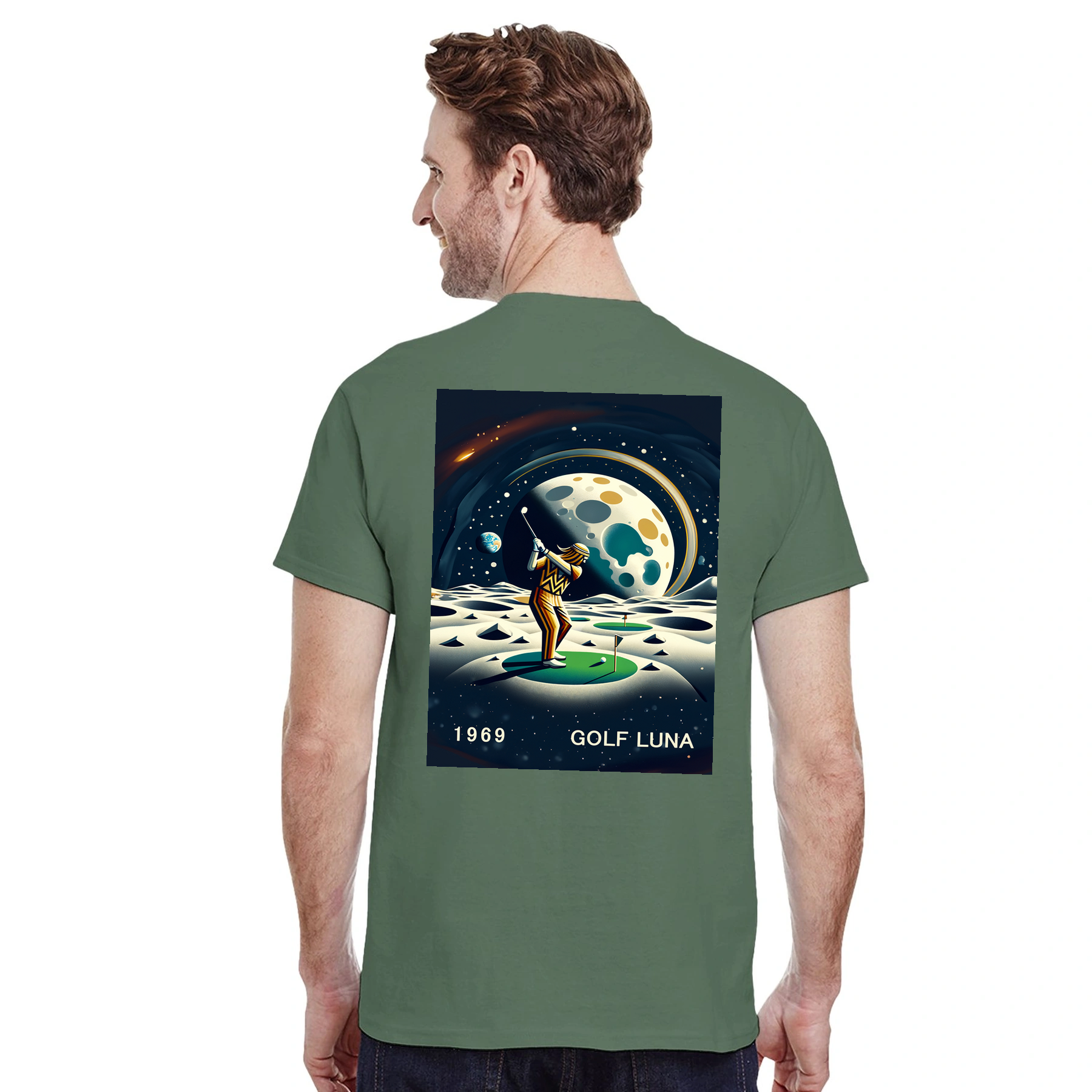 Koszulka Golf Moon z unikalnym wzorem, idealna na pole golfowe i codzienne wyjścia. Wygodna i trwała, dostępna w rozmiarach S