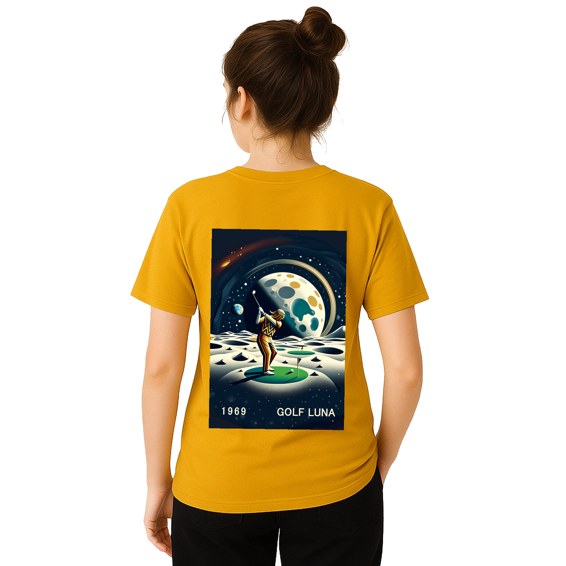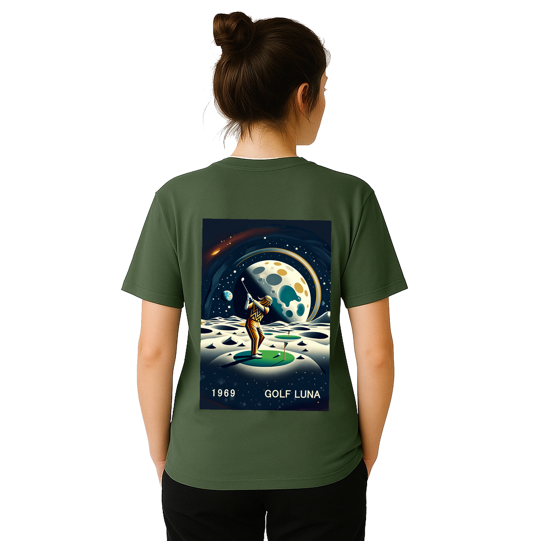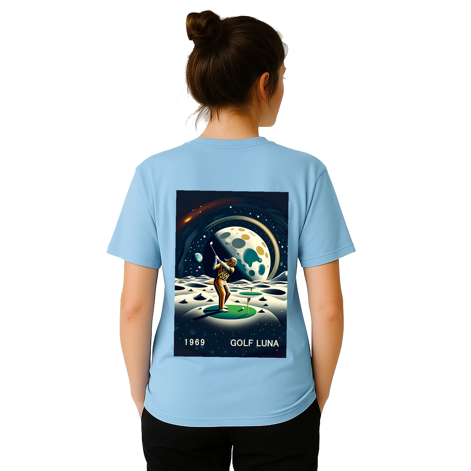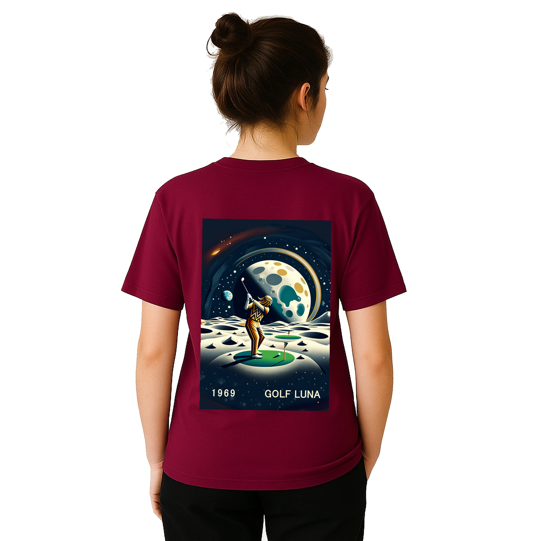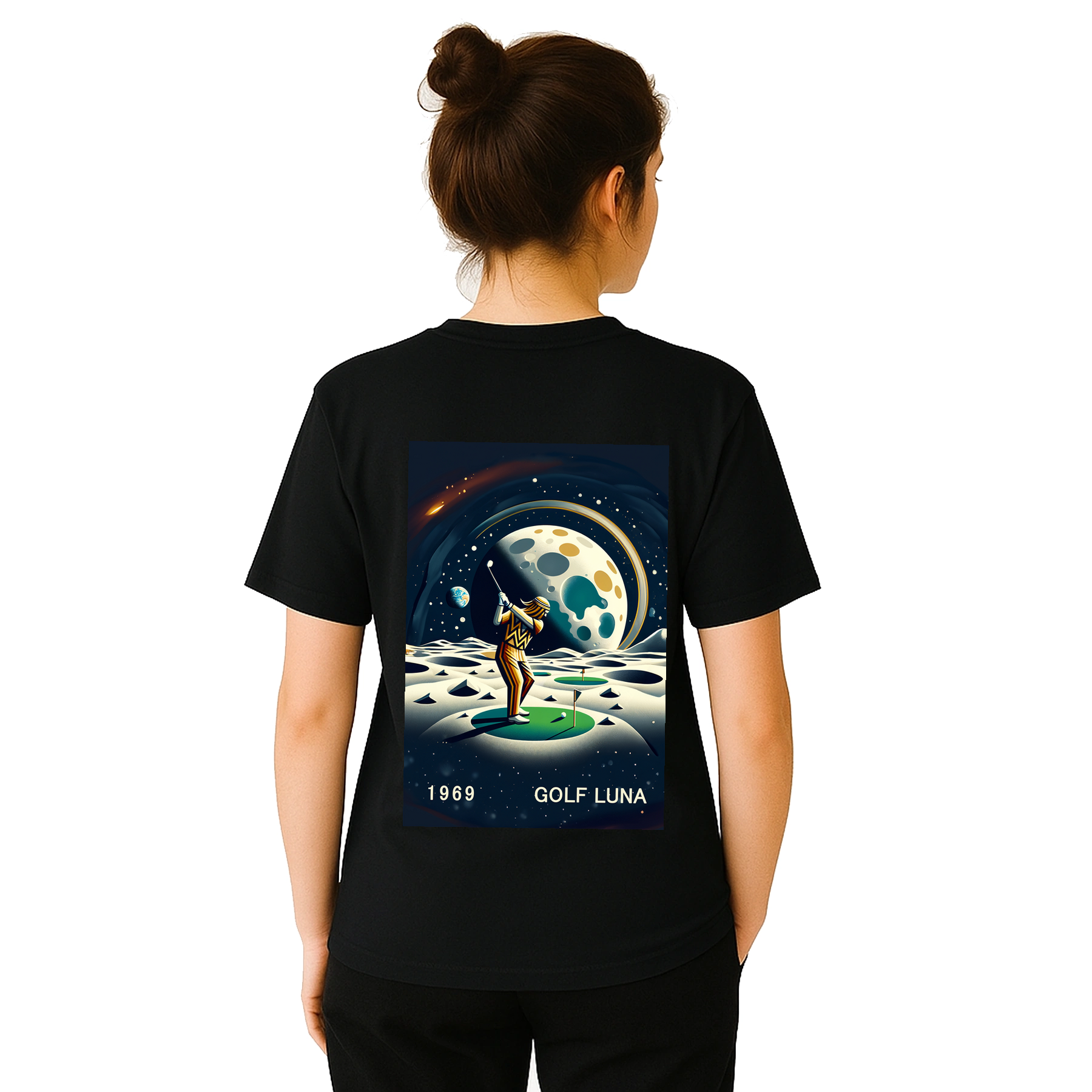Koszulka Golf Moon z unikalnym wzorem, idealna na pole golfowe i codzienne wyjścia. Wygodna i trwała, dostępna w rozmiarach S