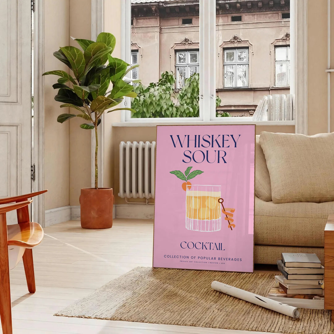 Podnieś poziom swojej przestrzeni dzięki naszemu plakatowi Whiskey Sour Cocktail Art. Dzięki żywym żółtym i niebieskim odcieniom ta oszałamiająca sztuka ścienna dodaje odrobinę wyrafinowania. Idealna jako wyjątkowy prezent lub do ulepszenia wystroju. Dostępna w formatach A4, 30×40 cm, 50×70 cm, 60×80 cm i A0.