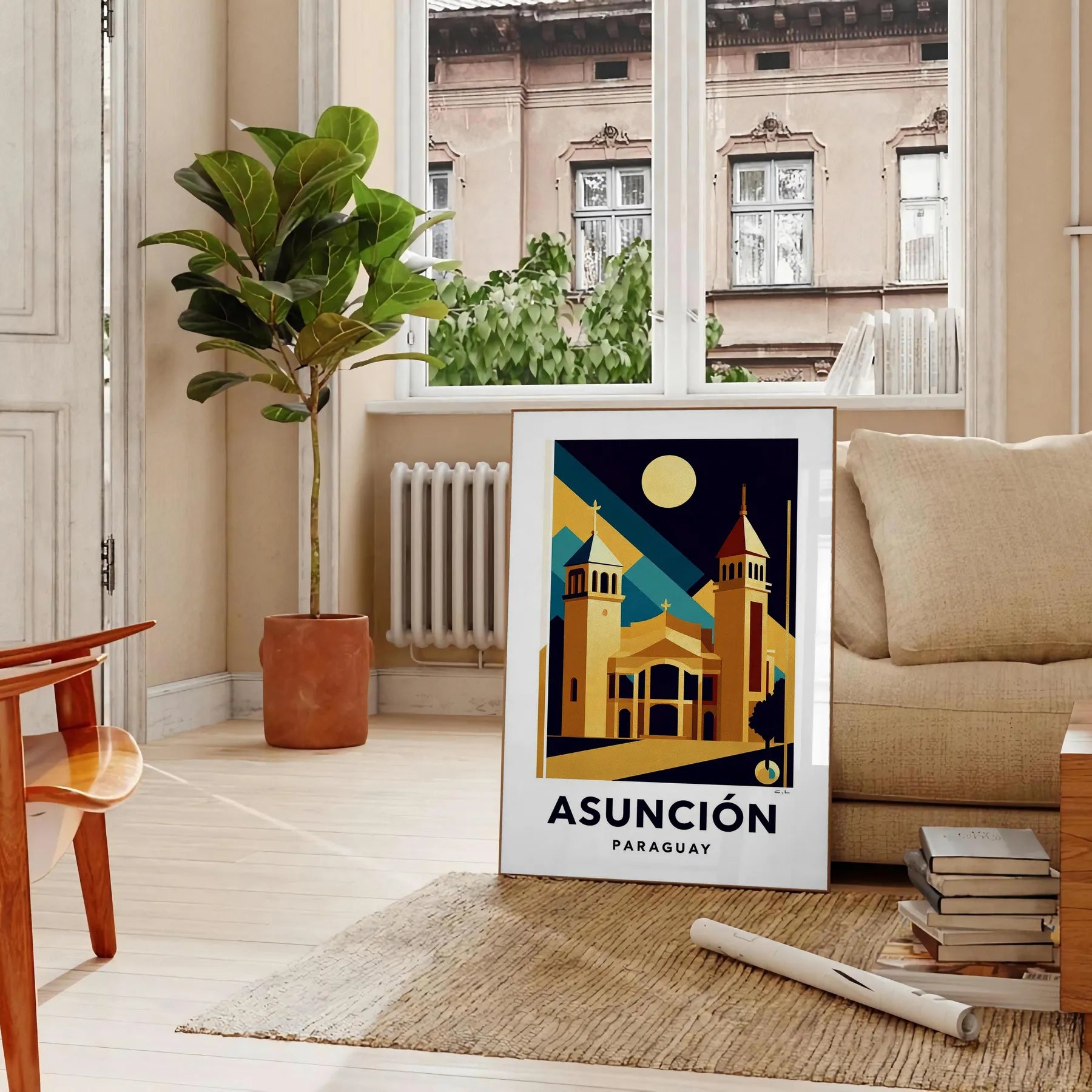 Discover the elegance of Asunción, Paraguay, with our stunning Art Déco vintage poster. Adorned in striking shades of blue and black, this 50x70 or 30x40 masterpiece will elevate any space. Buy now to embrace timeless beauty! Available dimensions: A4, 30×40 cm, 50×70 cm, 60×80 cm, and A0.