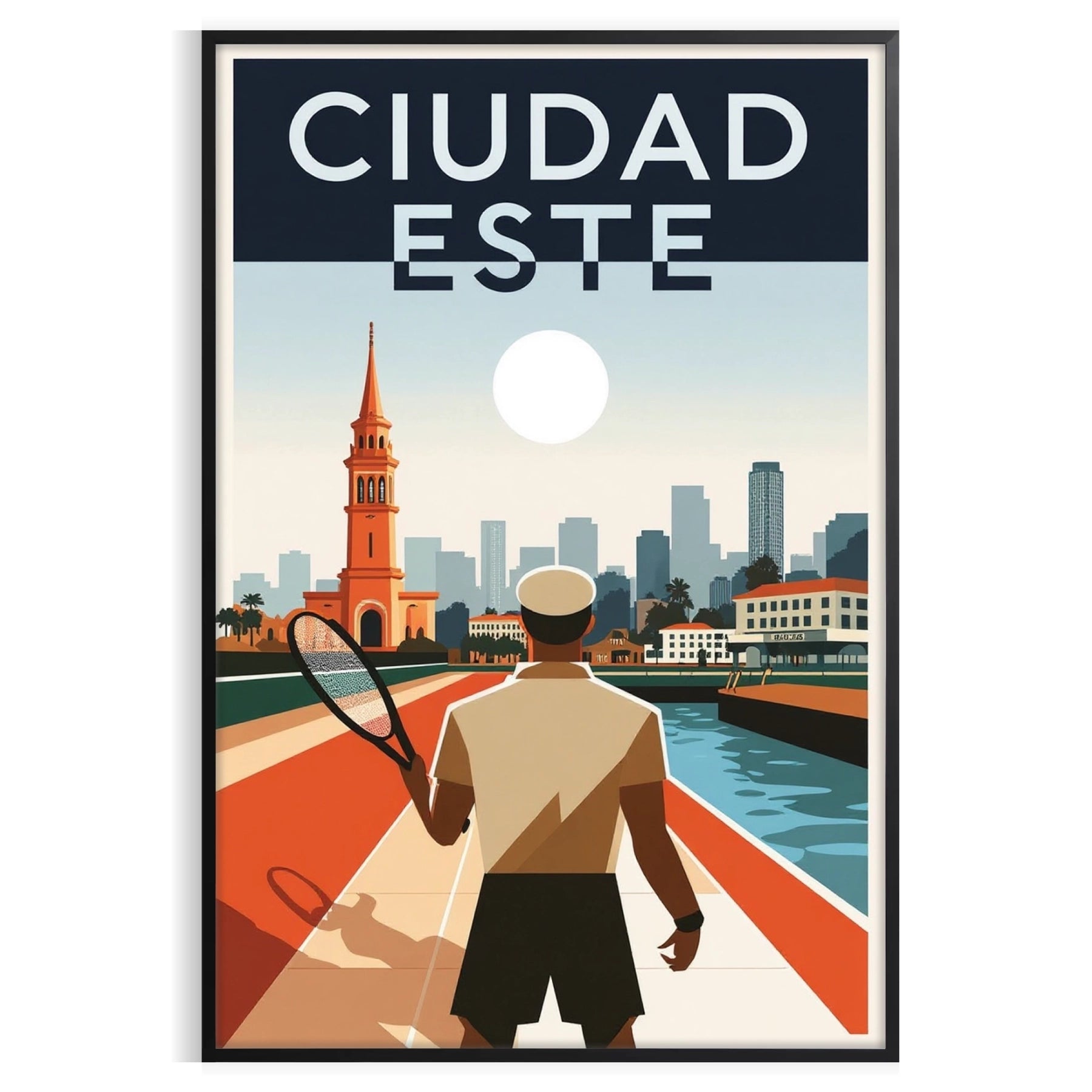 Elevate your space with our Ciudad del Este, Paraguay Art Déco vintage poster! Featuring vibrant orange and green hues, this eye-catching design captures the essence of a bygone era. Available in 50x70 or 30x40 dimensions, it's perfect for any room. Buy now and select a framed or unframed version of this stunning poster!