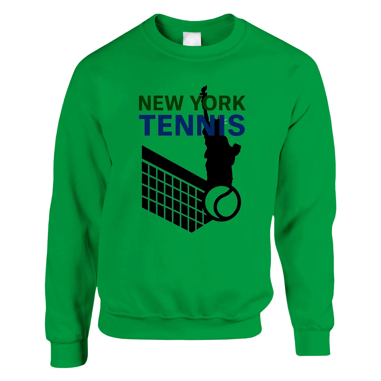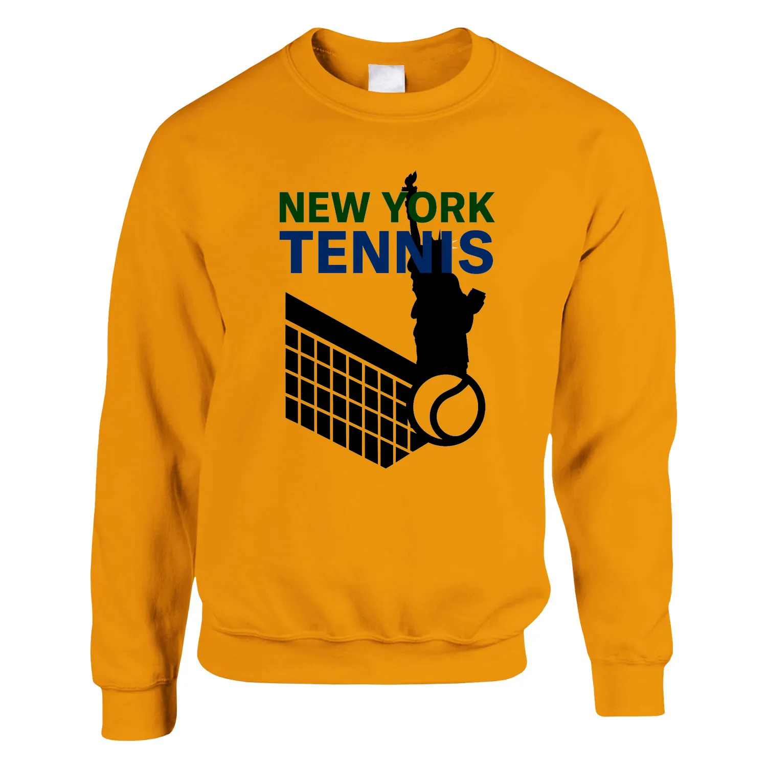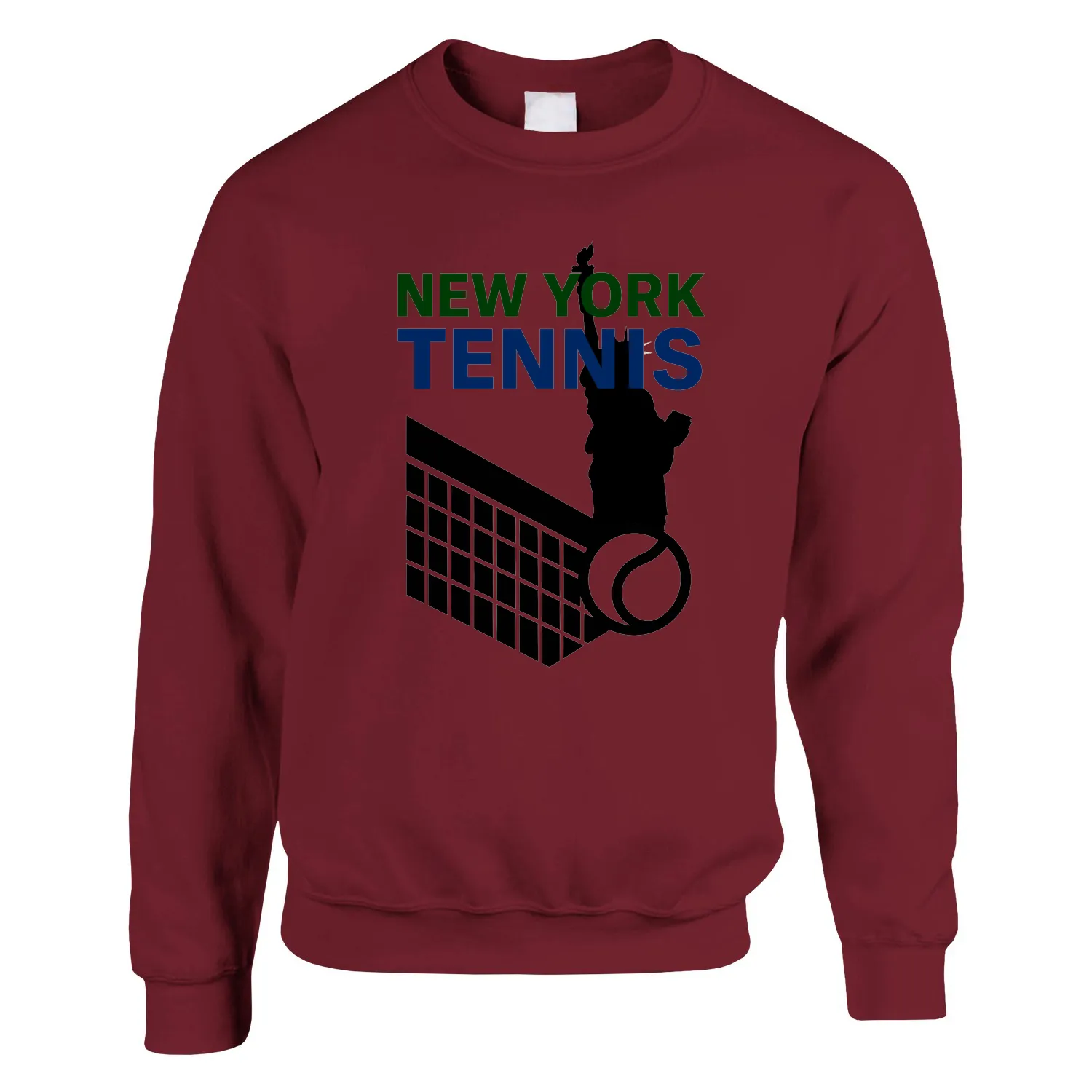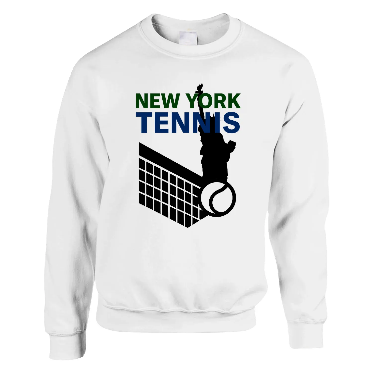 Buy the New York Tennis Sweater for ultimate comfort and style. Made from a soft 50/50 cotton-polyester blend, this thick sweatshirt features air-jet spinning to reduce pilling. With double-needle stitching, a 1x1 rib knit for stretch, and a classic cut, this unisex sweater is perfect for everyone.